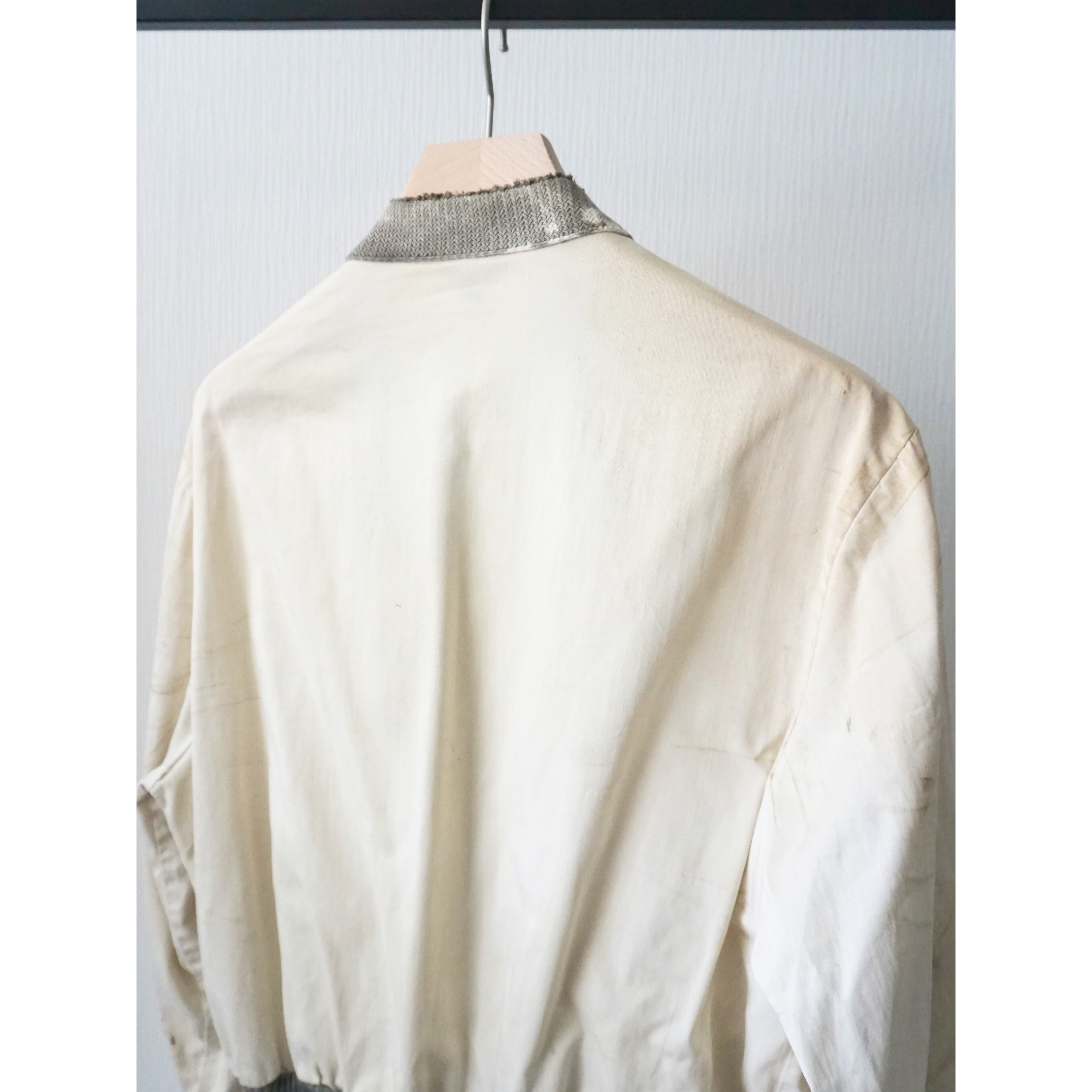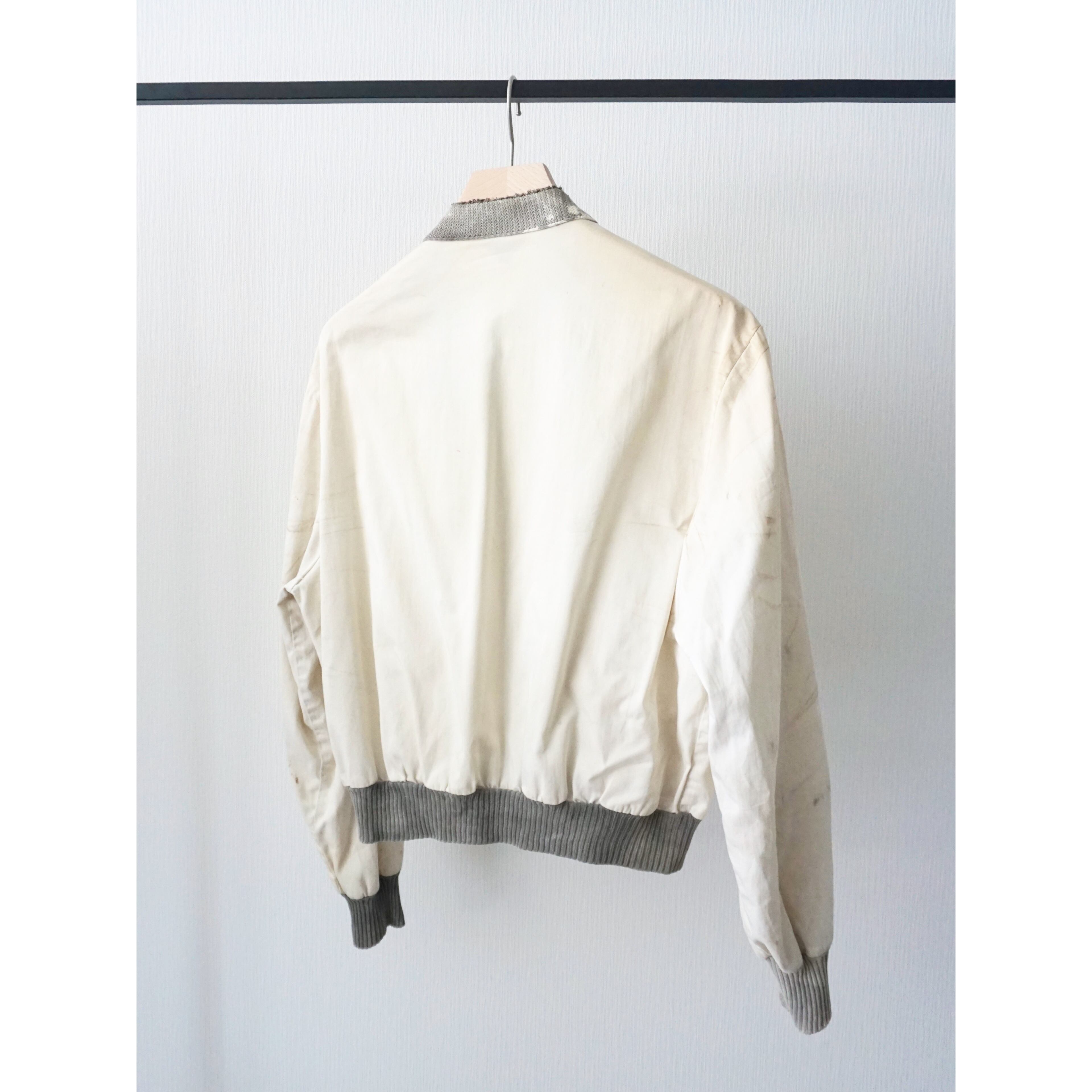色気のある古いコットンの生地、更にはヴィンテージならではな、所々まだらにフェードしたリブの色味、全体的に入るリアルな汚れやダメージ等が相まって、めちゃくちゃオーラのある一着です。