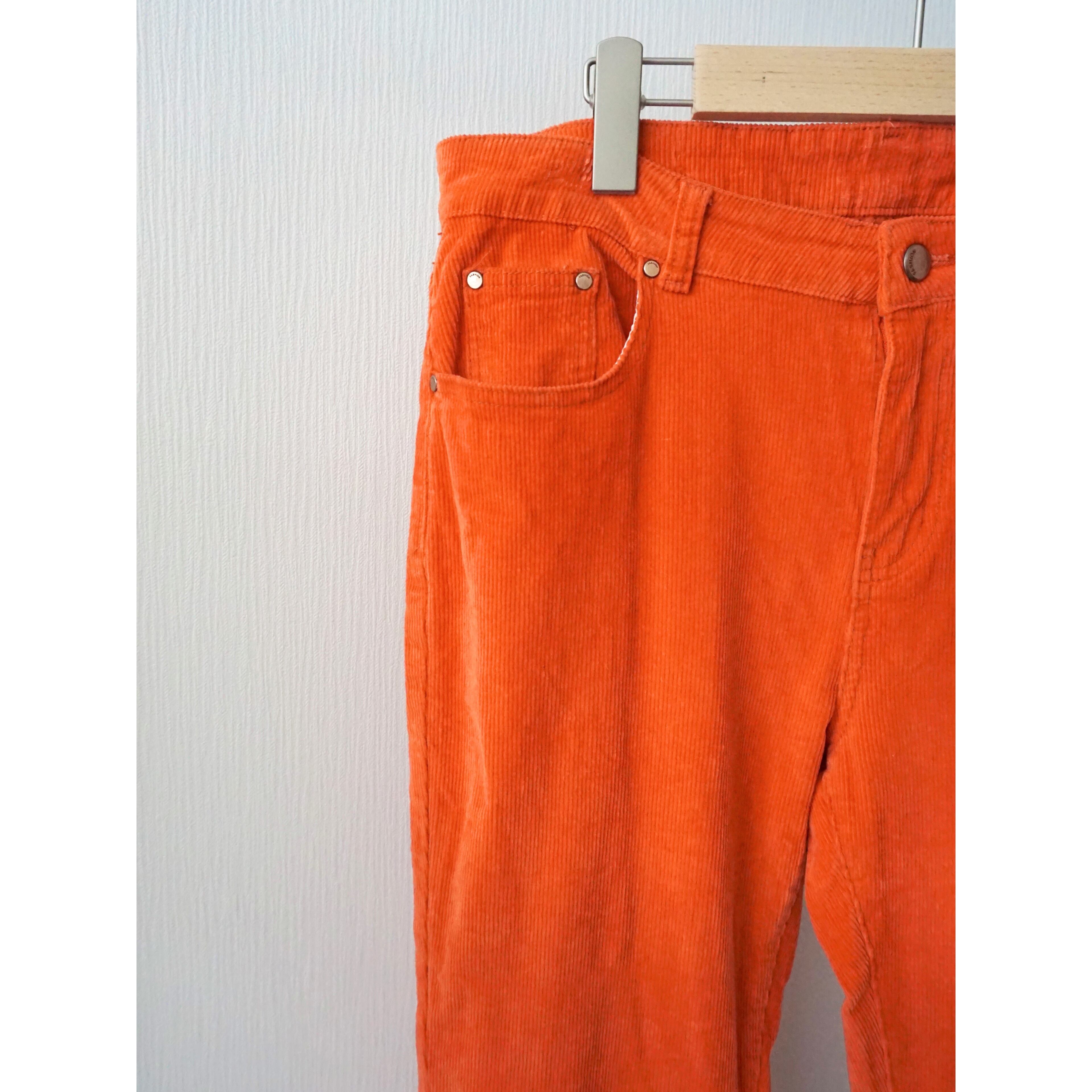 珍しいオレンジカラーのコーデュロイフレアパンツ。