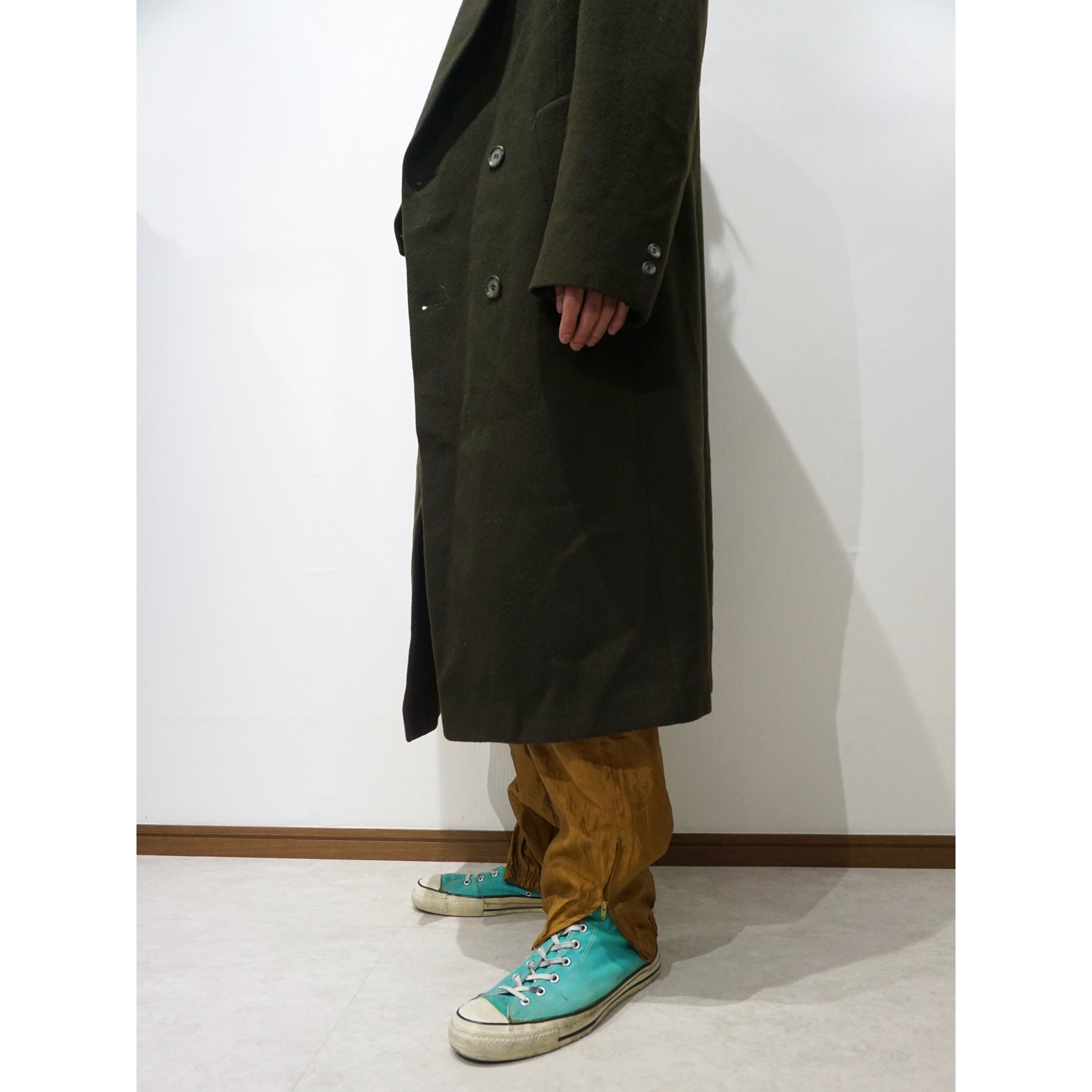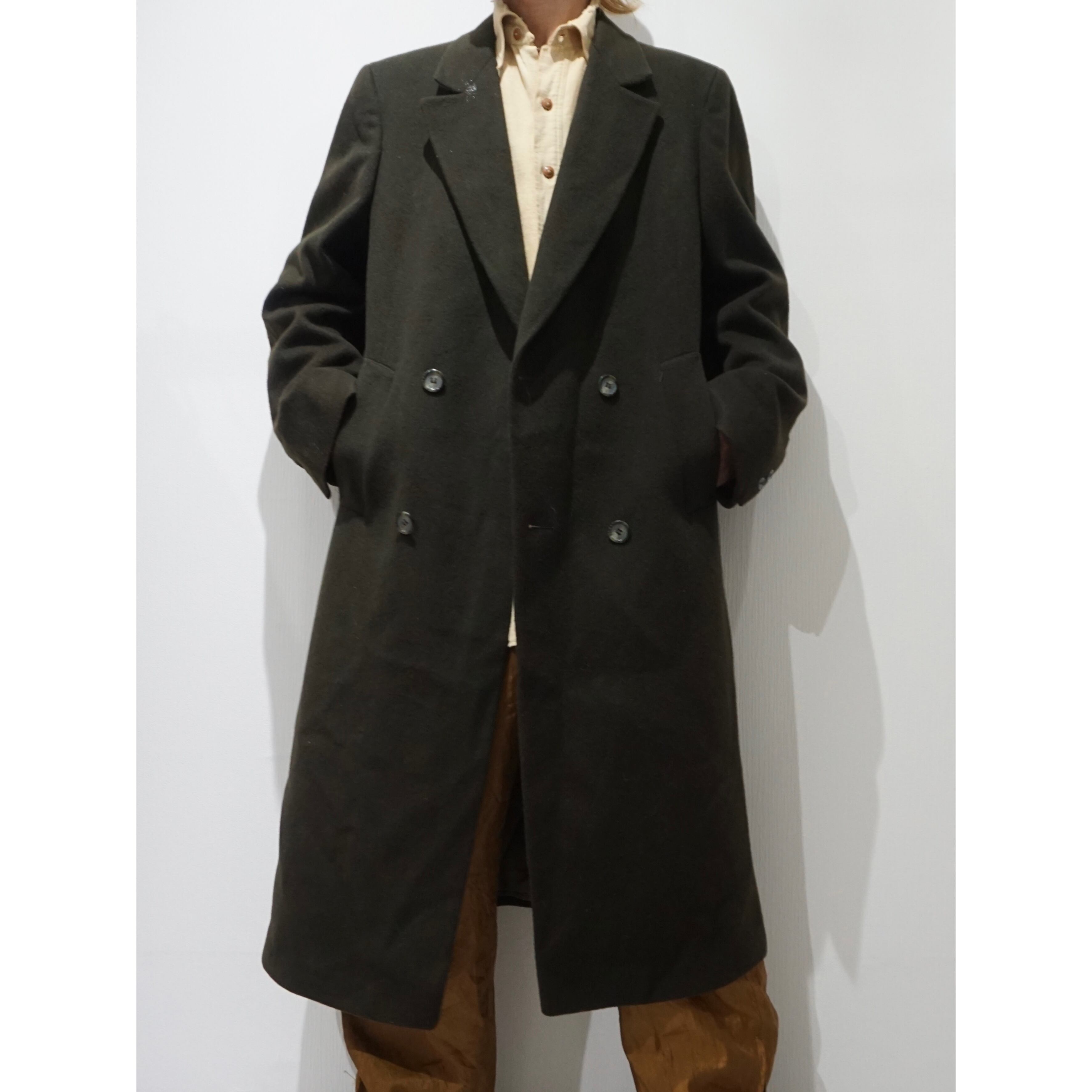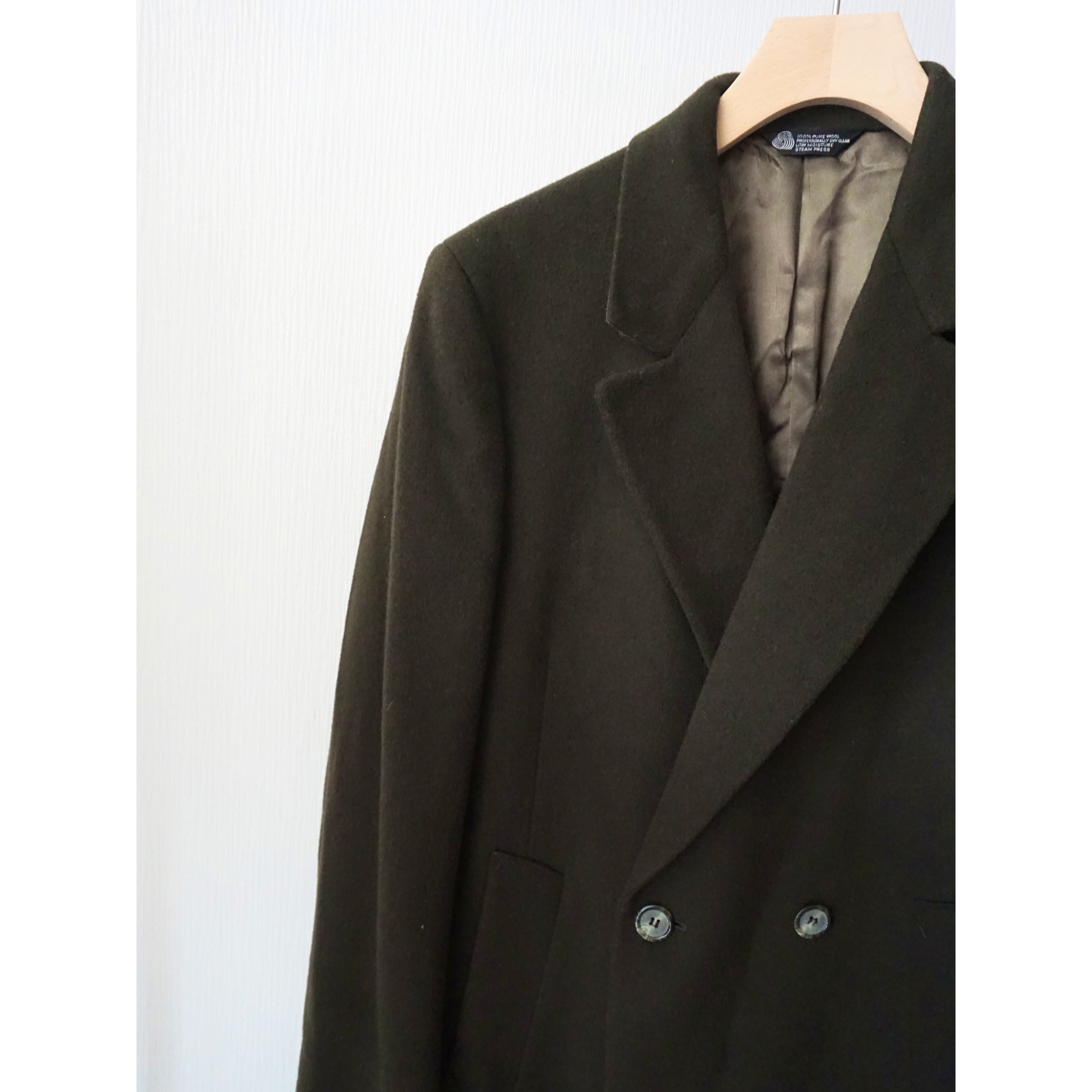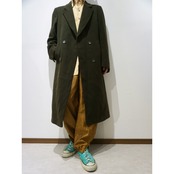 深みのある上品なオリーブグリーンの色味にダブルブレスト仕様のウールコートです。