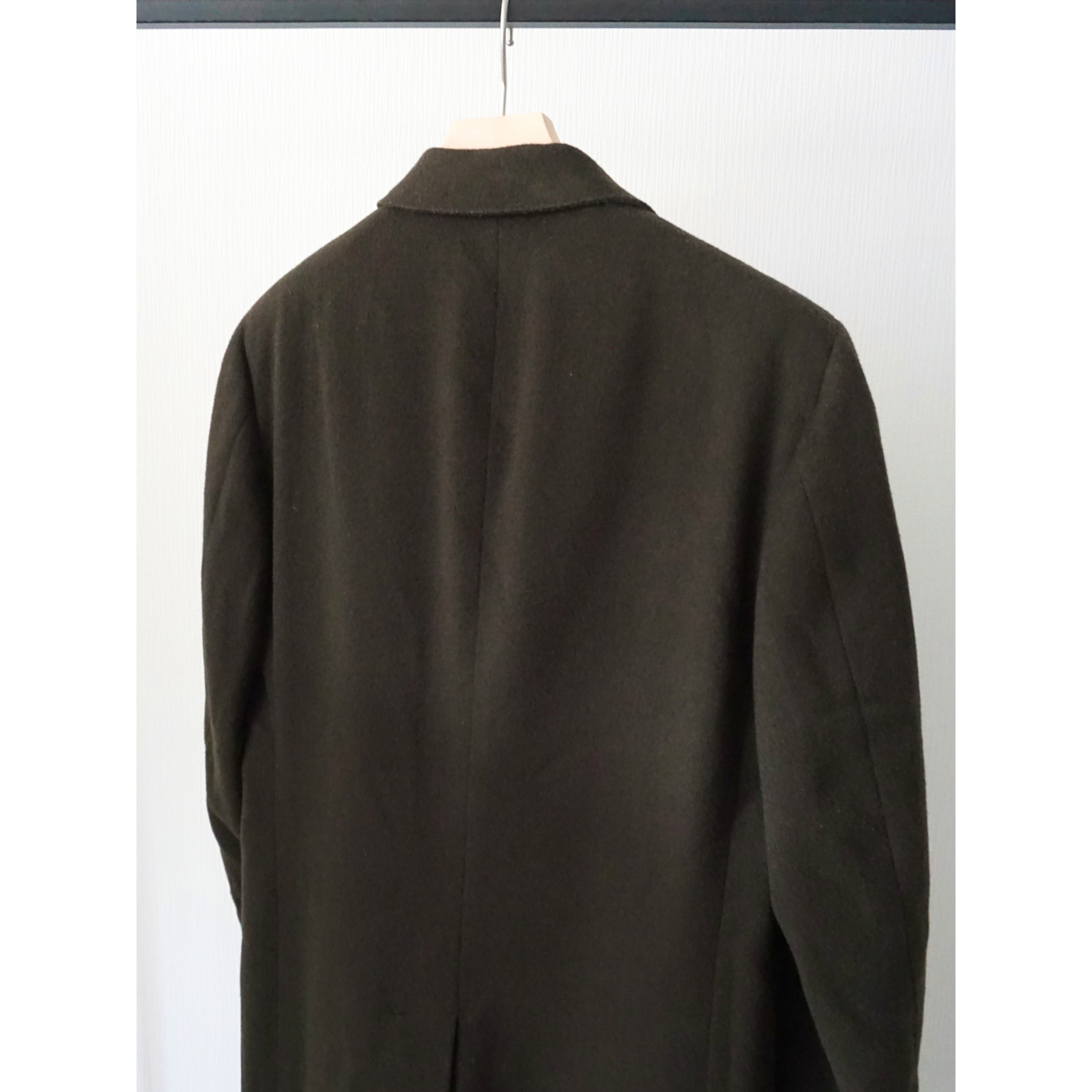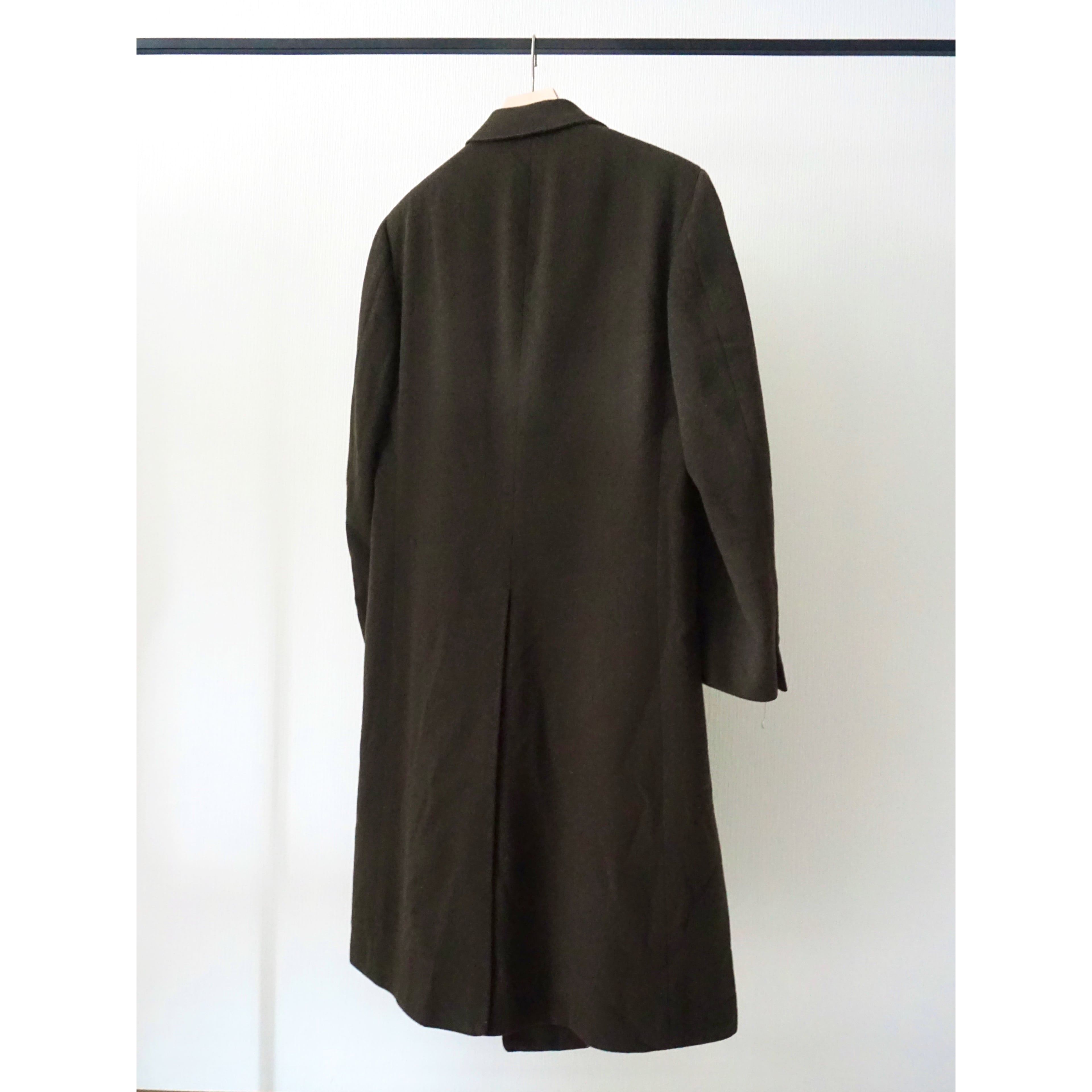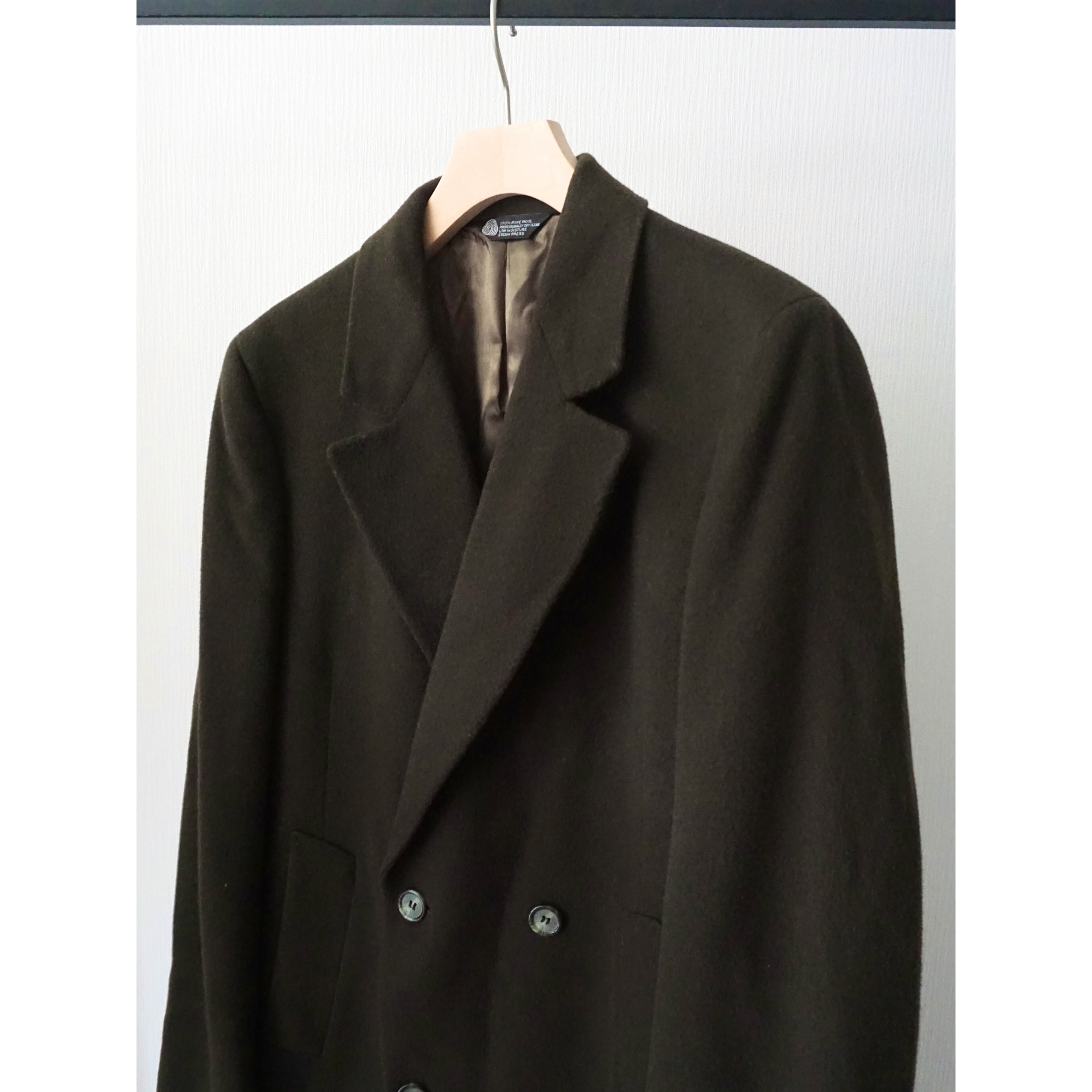 深みのある上品なオリーブグリーンの色味にダブルブレスト仕様のウールコートです。