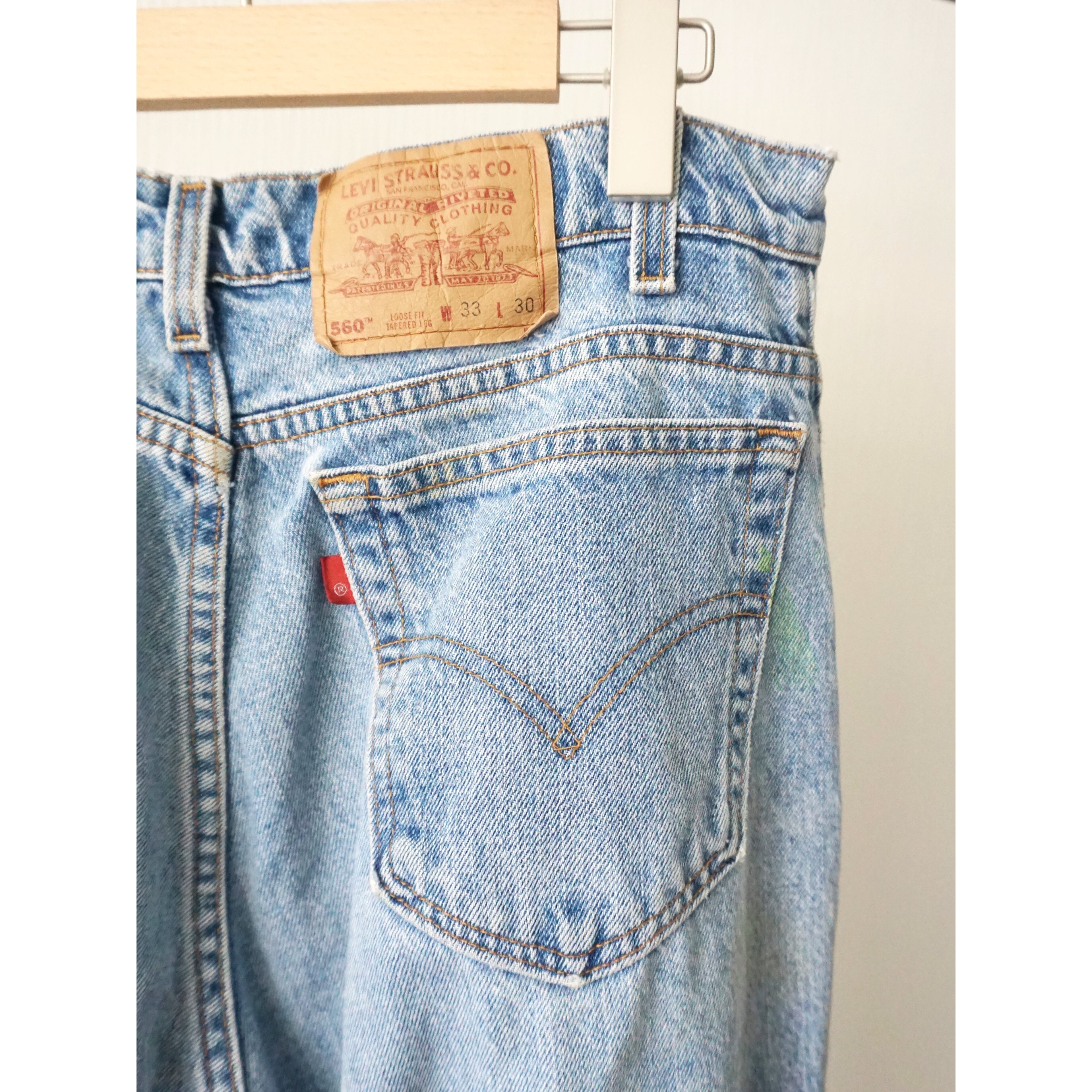 1990s vintage "Levi's" 560 hard crashed denim pants made in USA