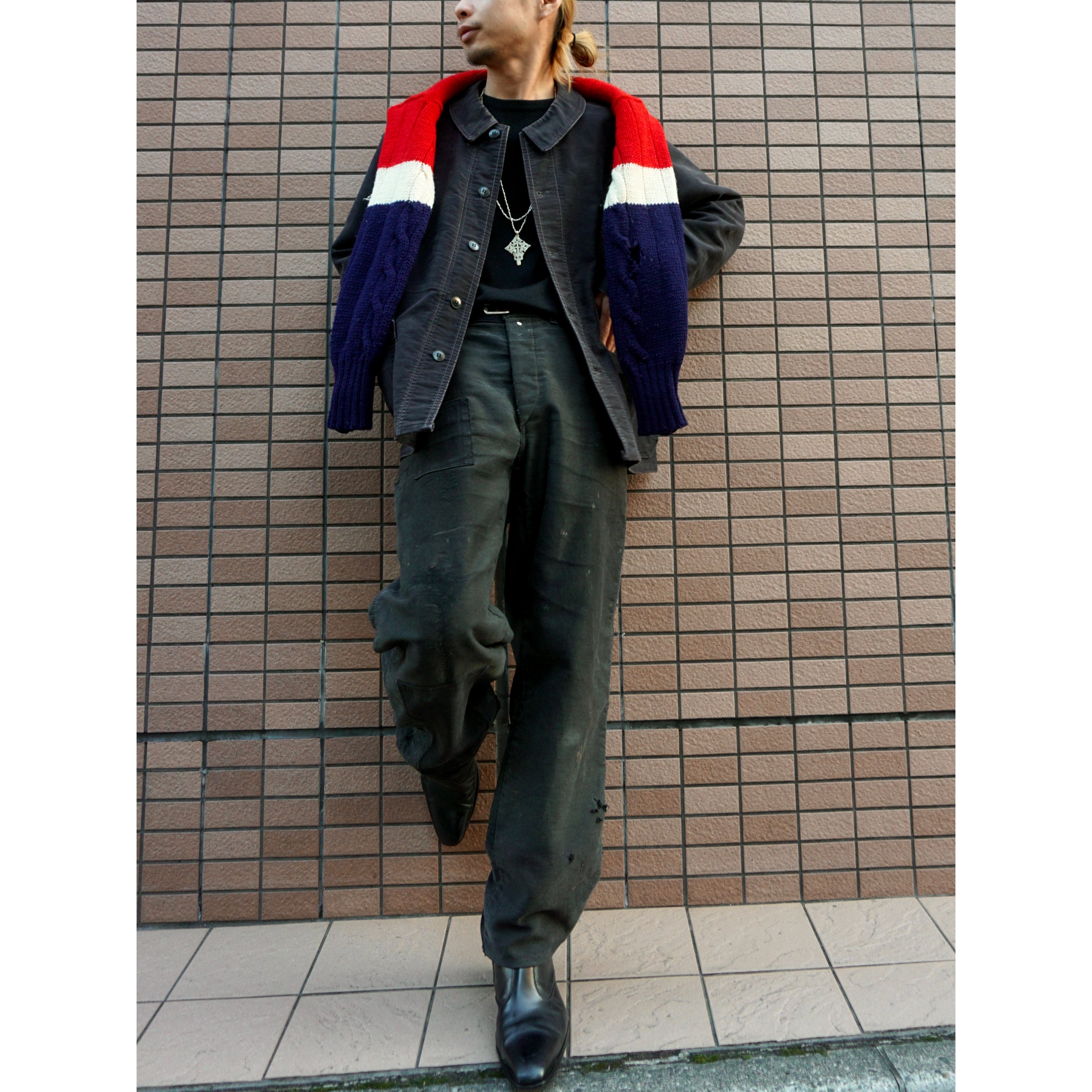 老舗フレンチワークブランドより、1980年代頃のヴィンテージブラックモールスキンパンツ。
