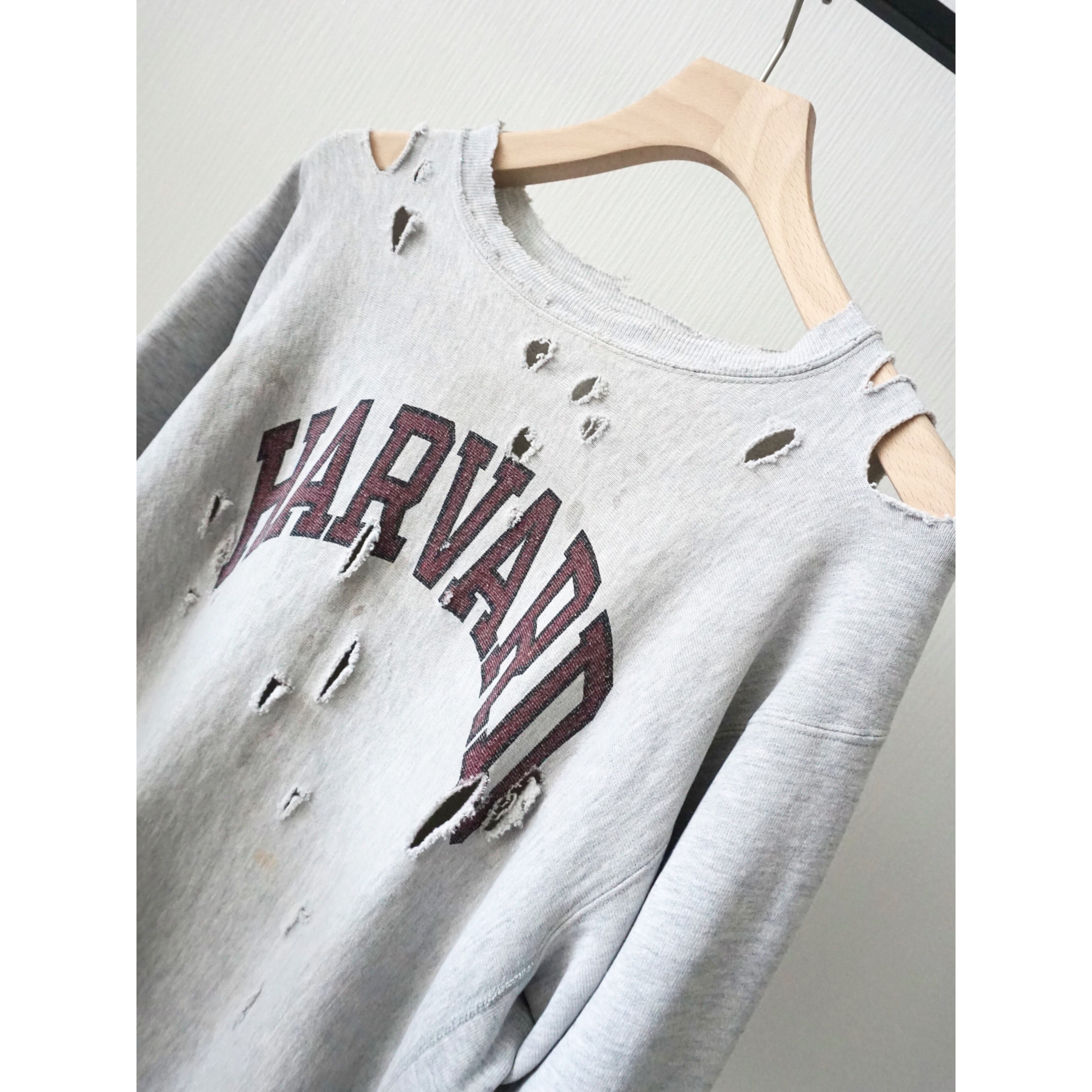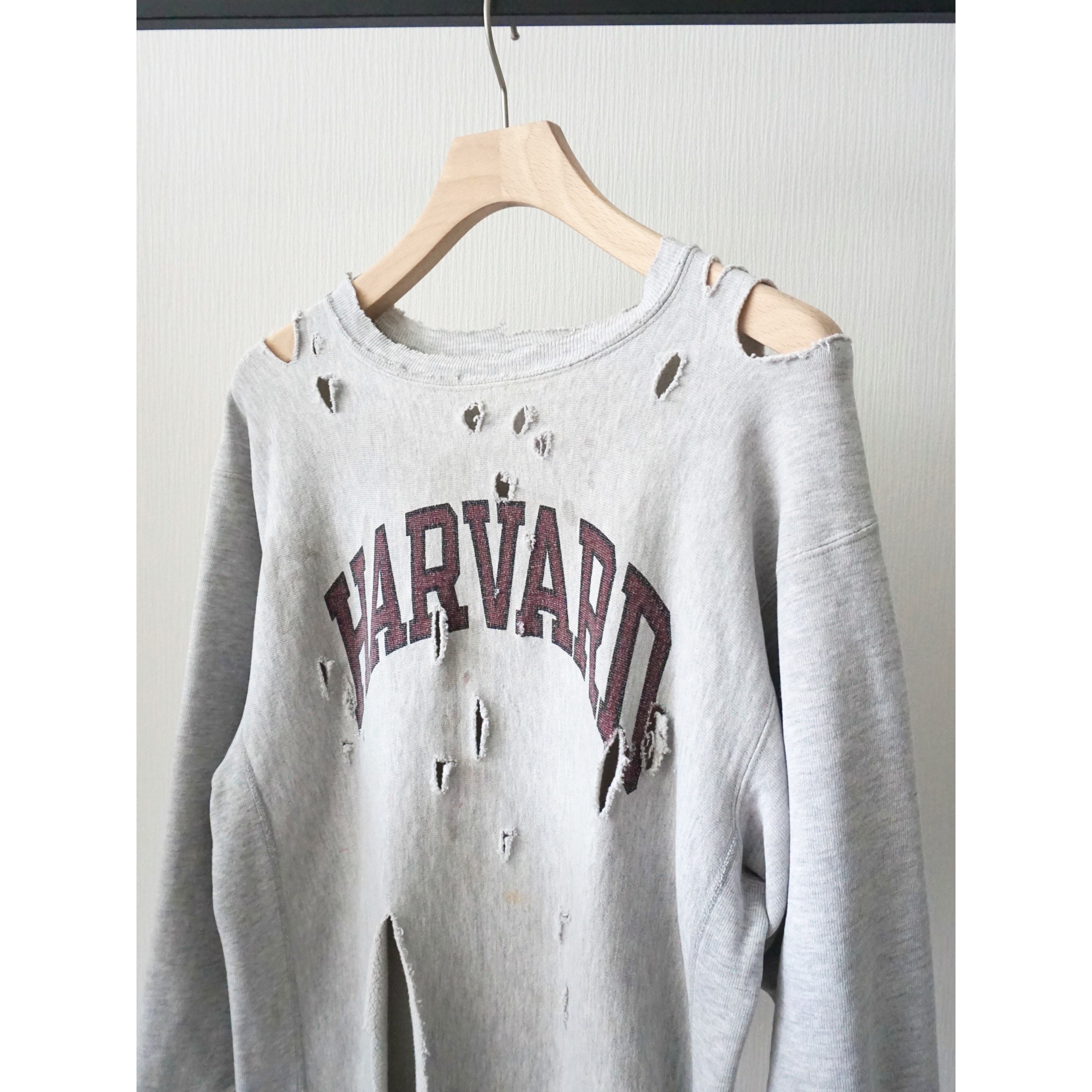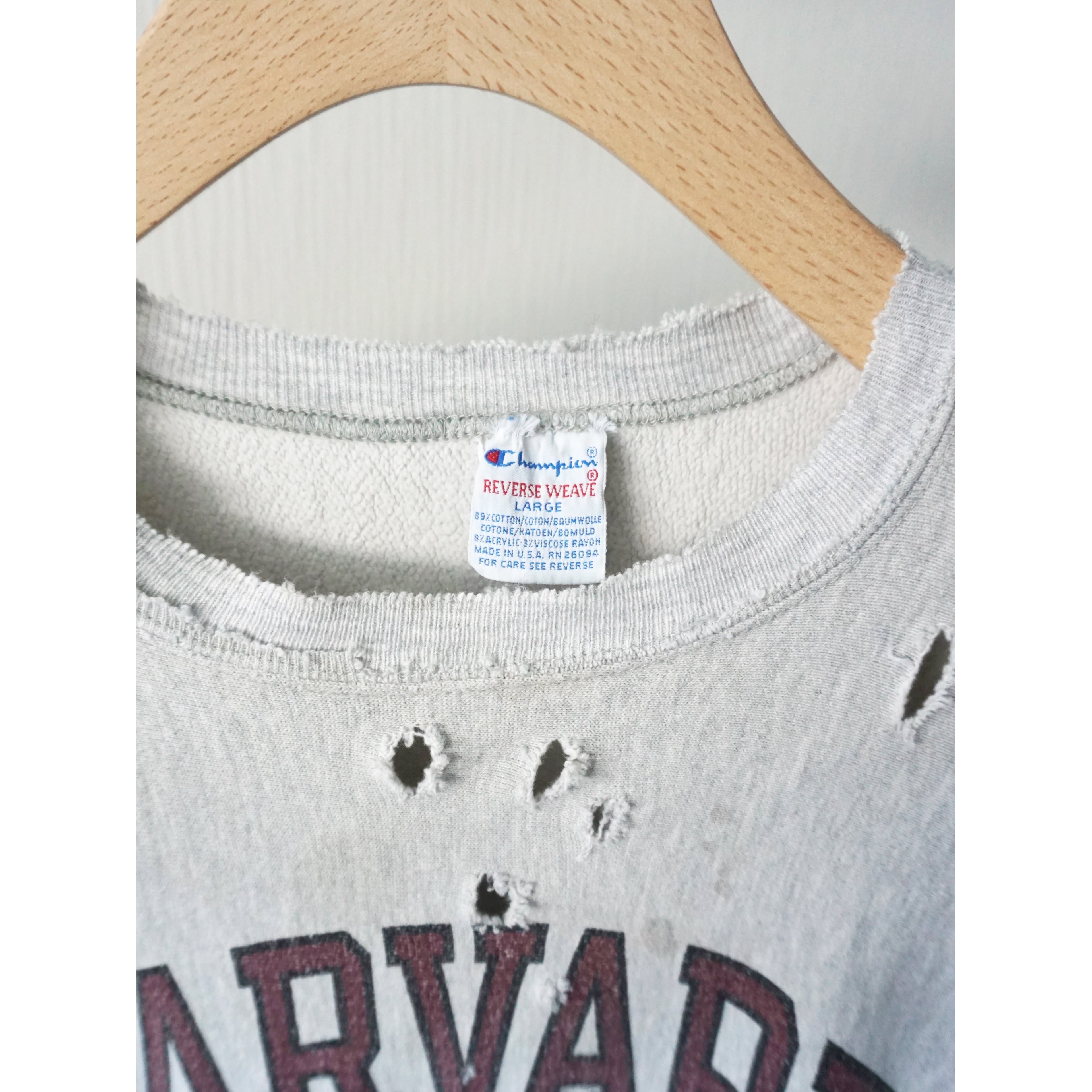 1990s vintage "Champion" boro HARVARD染み込み print reverse weave sweat shirt made in USA