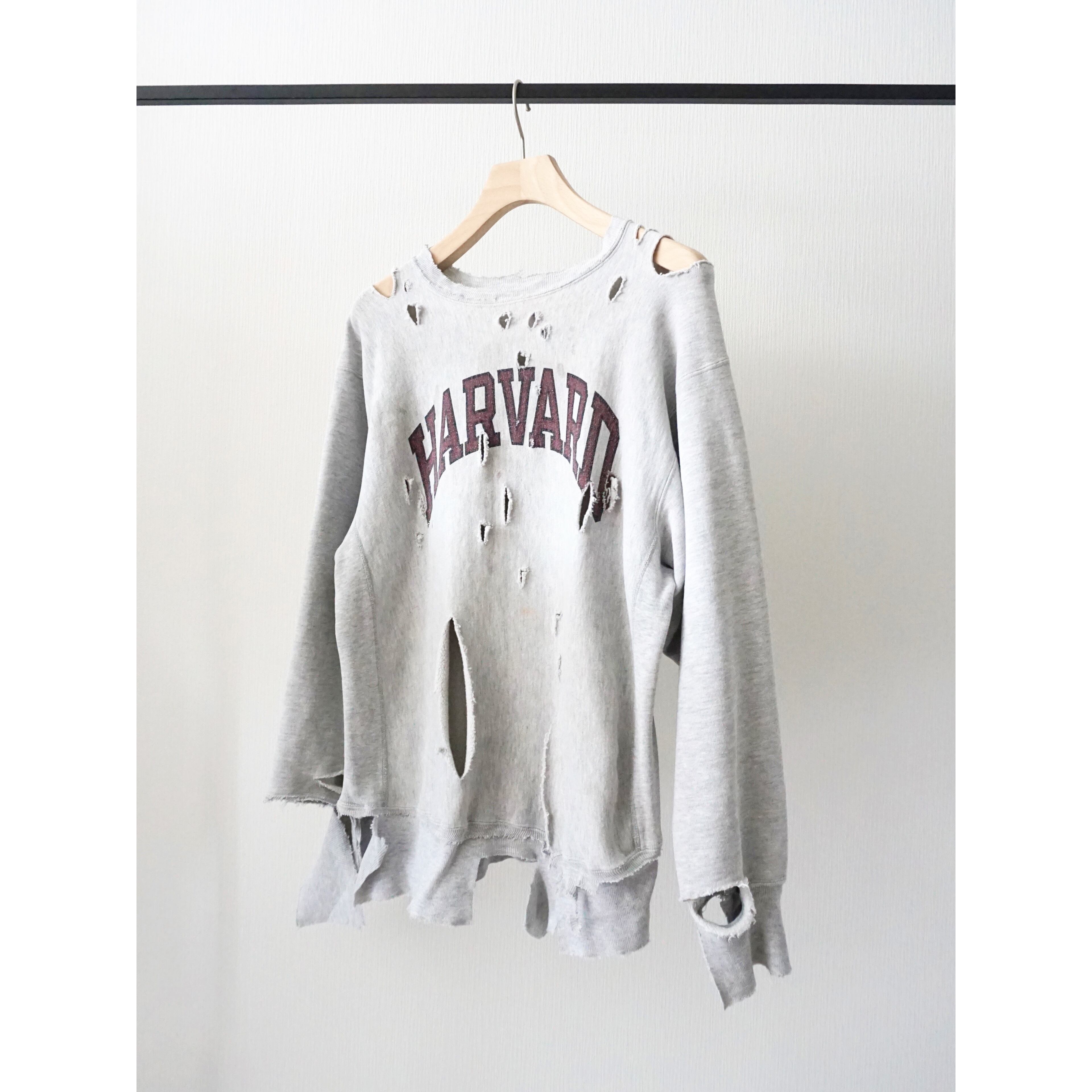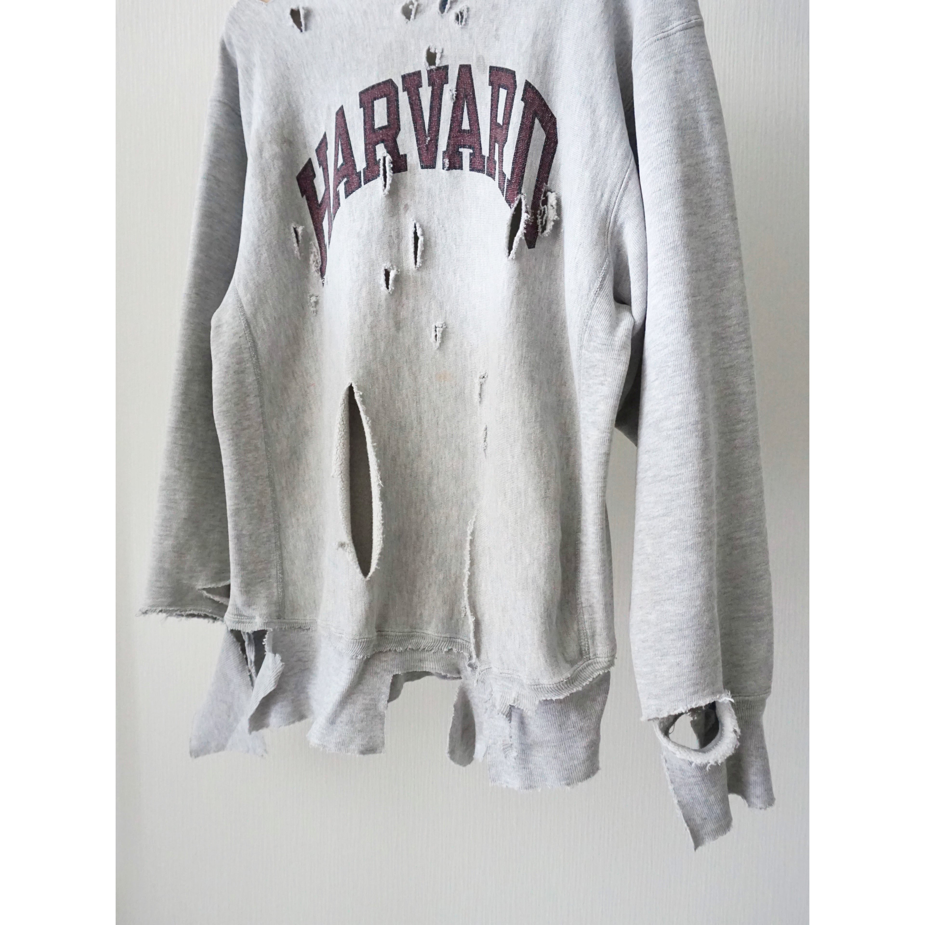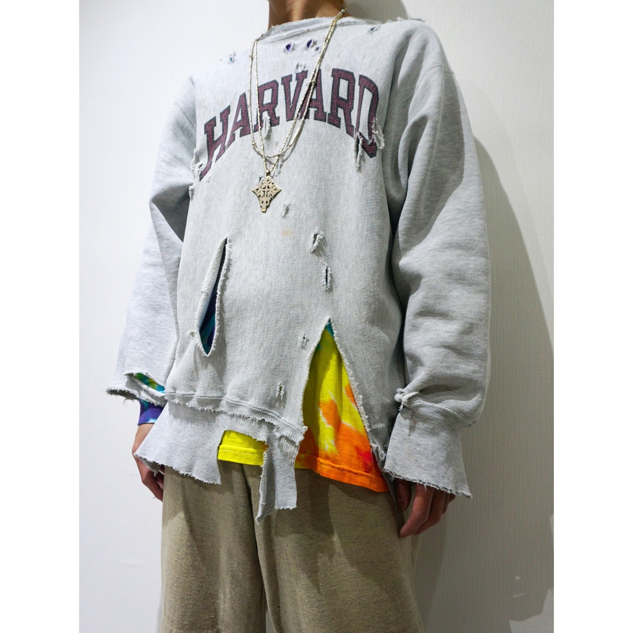 1990s vintage "Champion" boro HARVARD染み込み print reverse weave sweat shirt made in USA