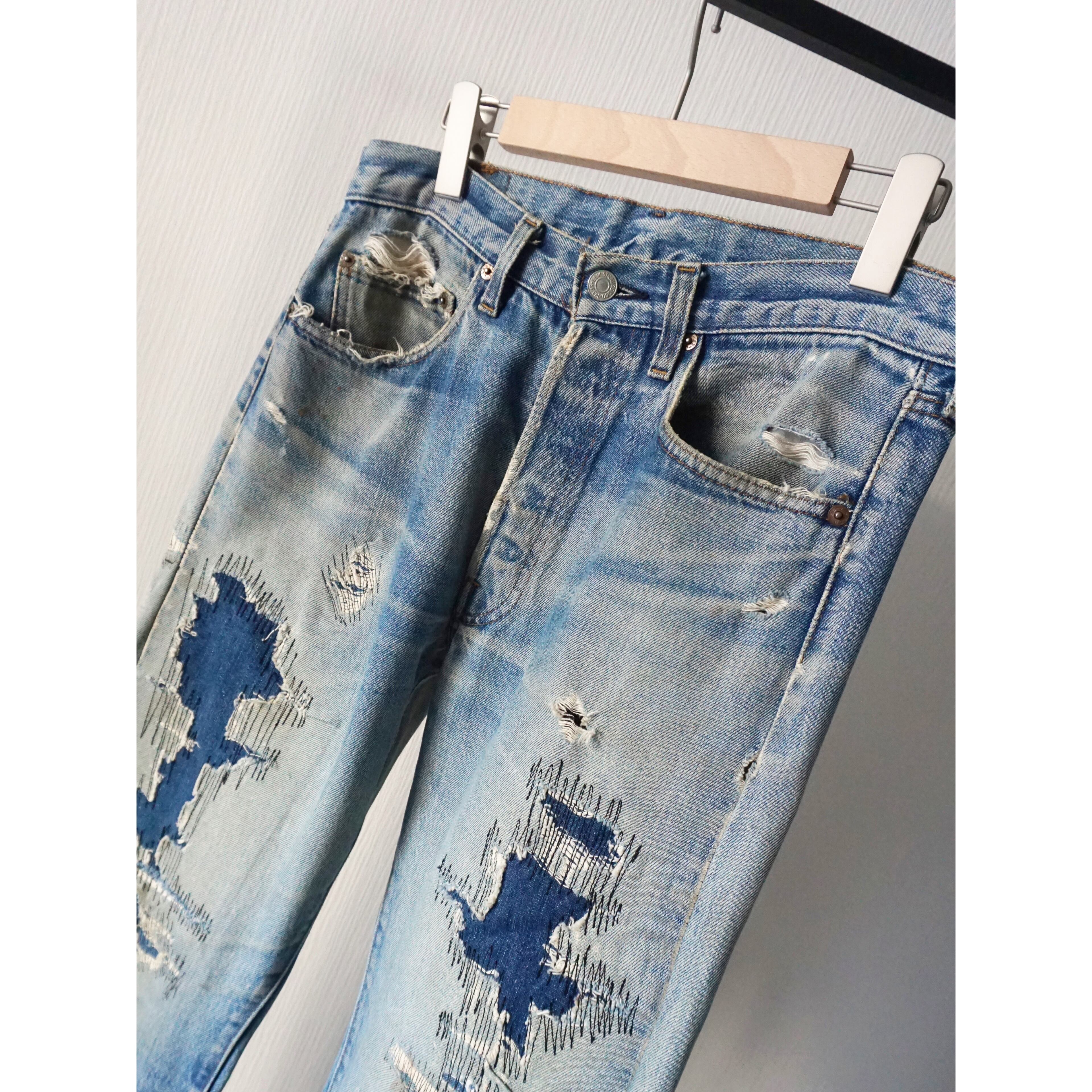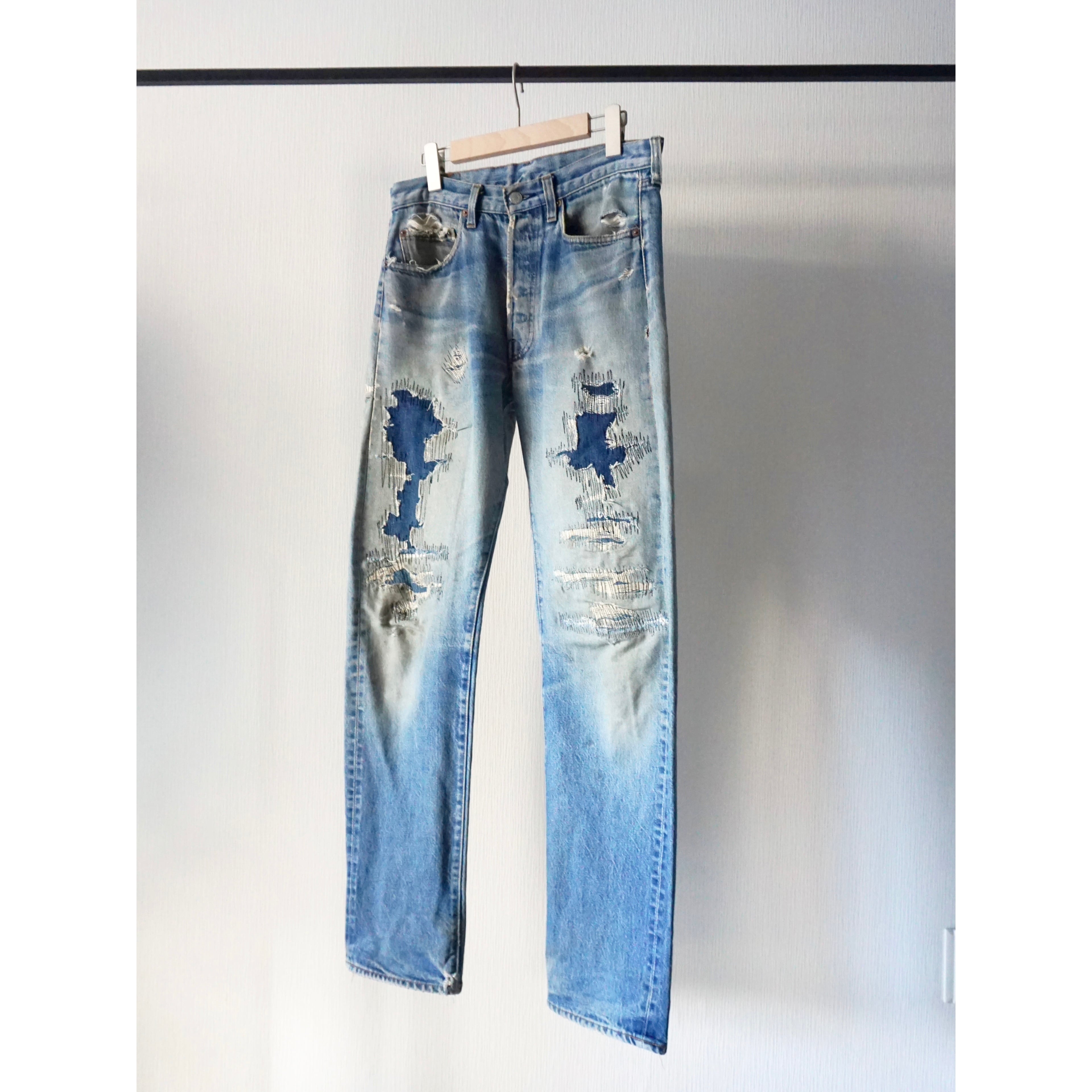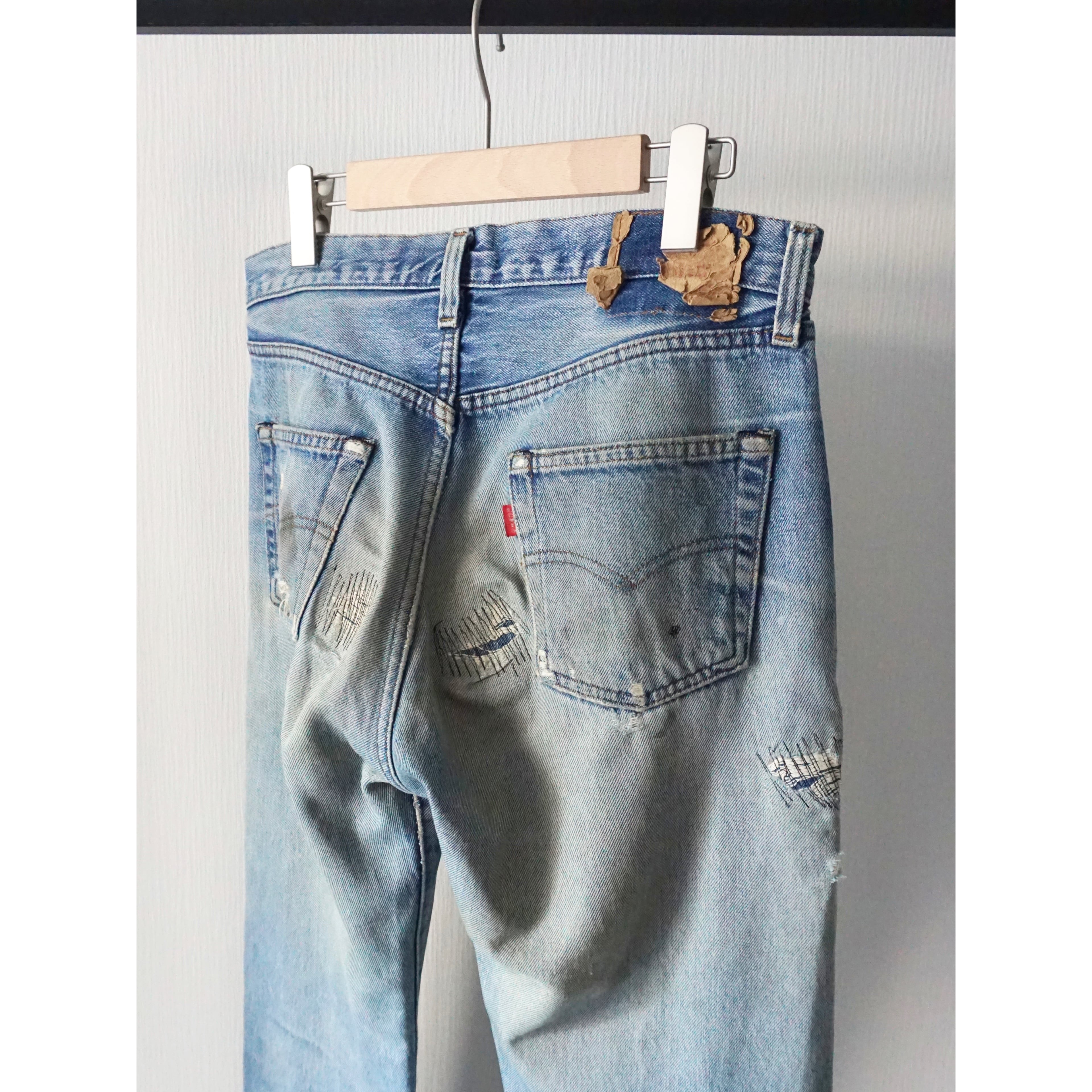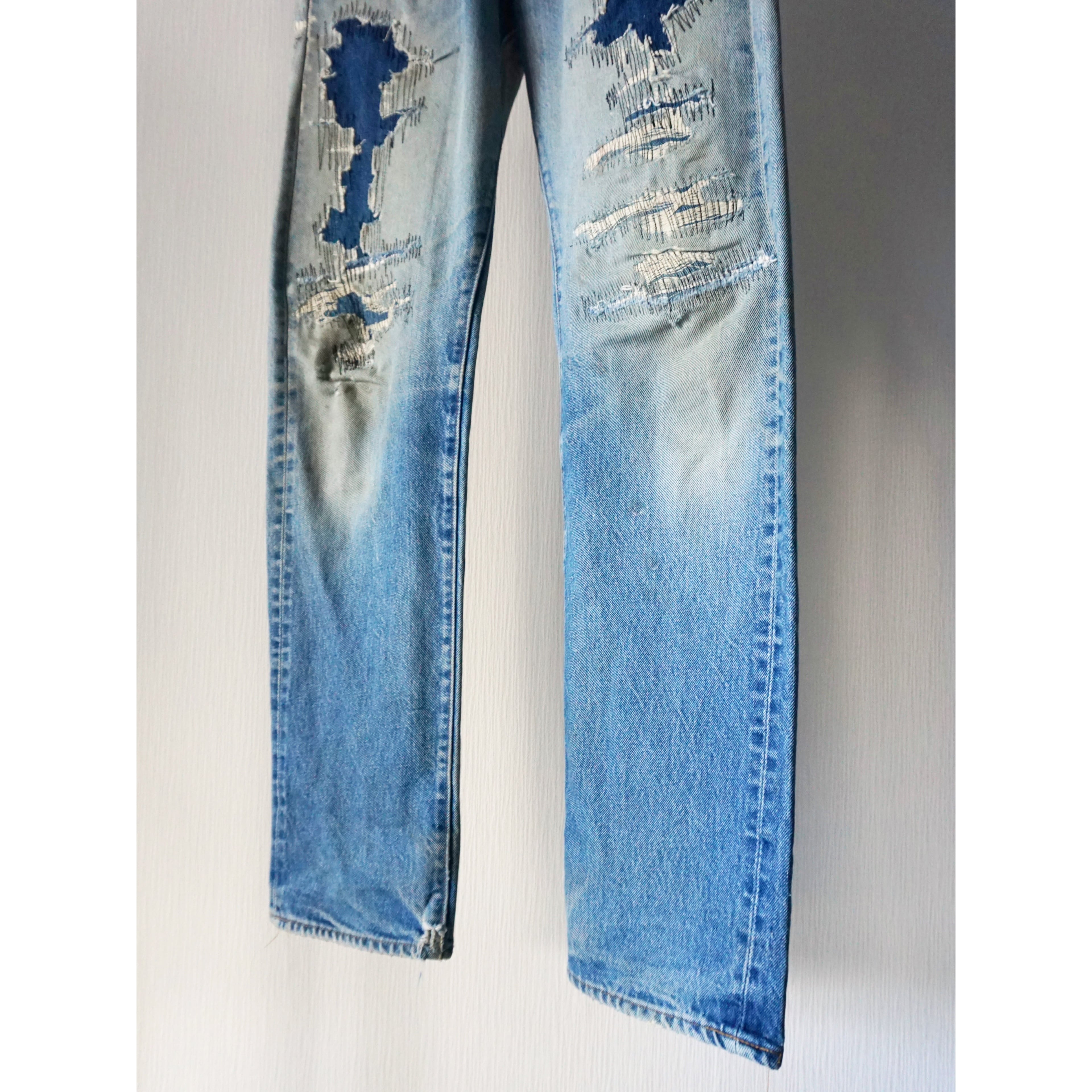 1980s vintage "Levi's" 501 Redline artistic repaired denim pants made in USA