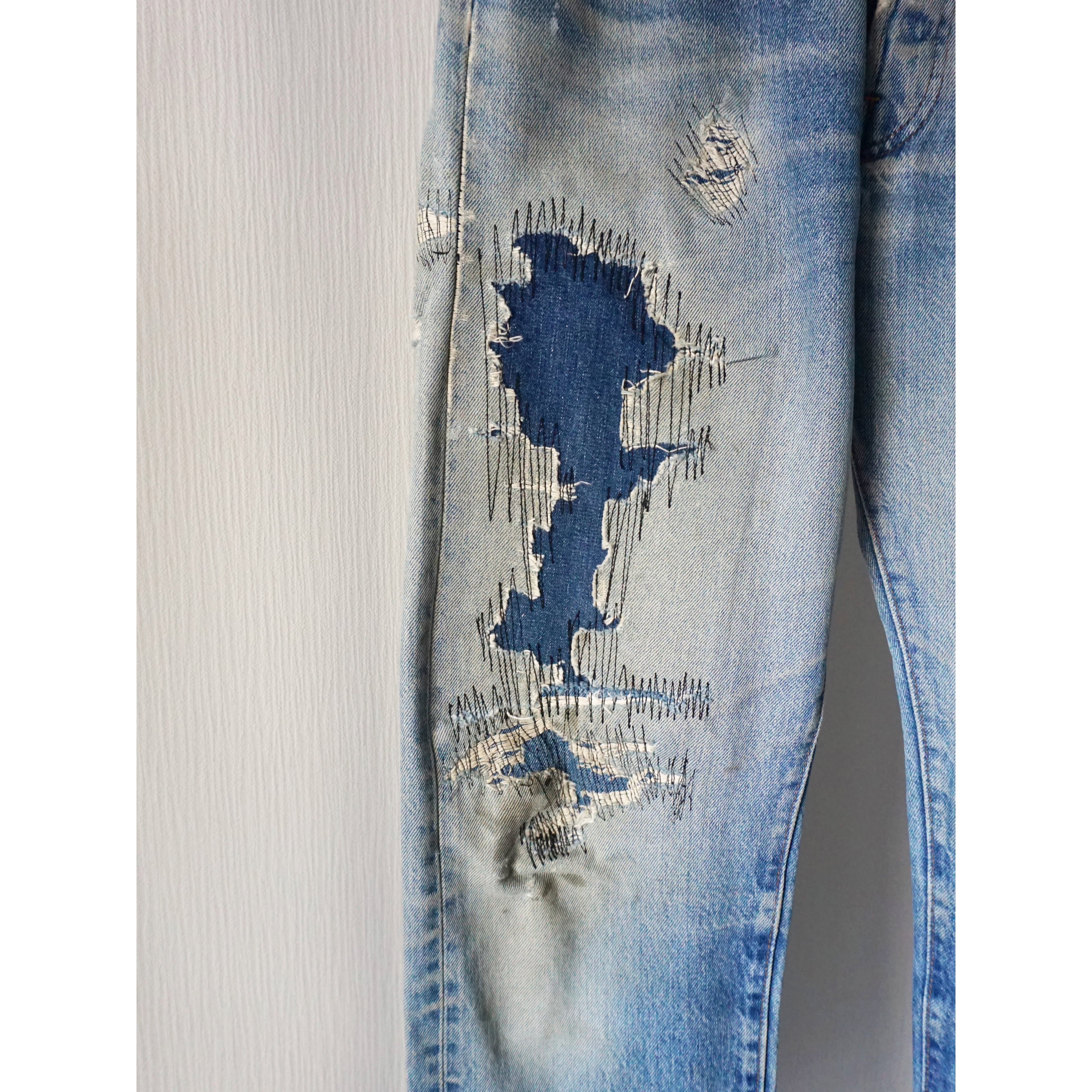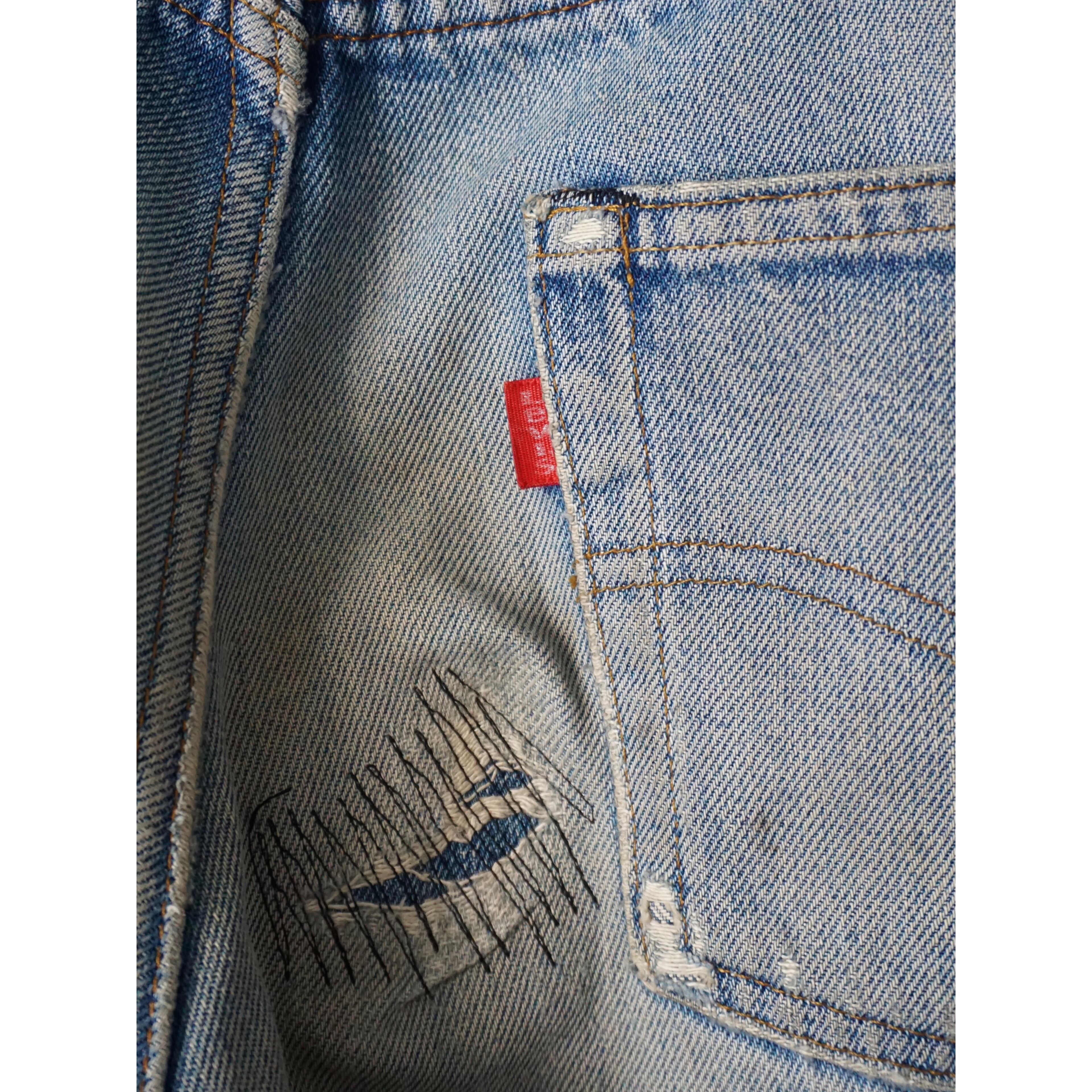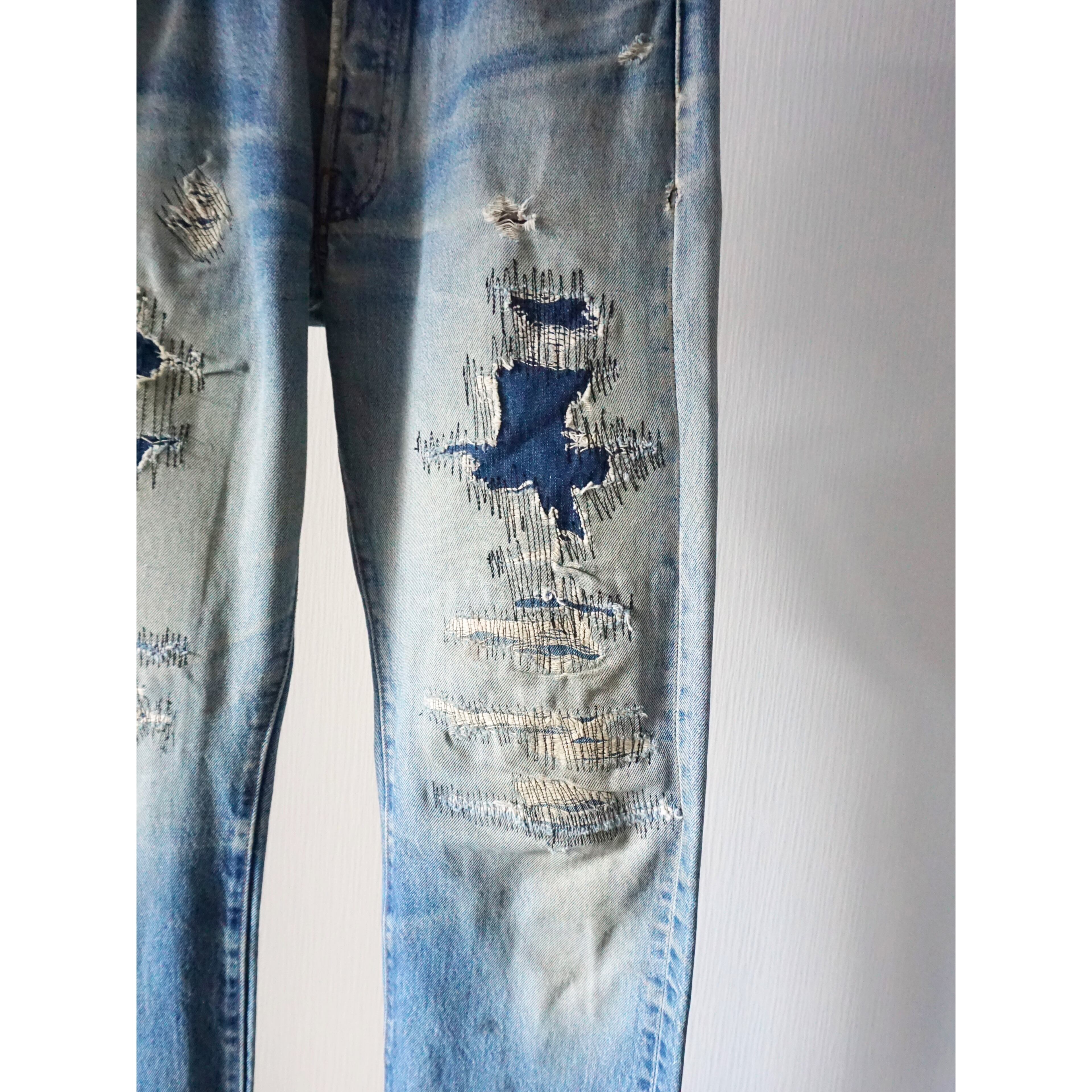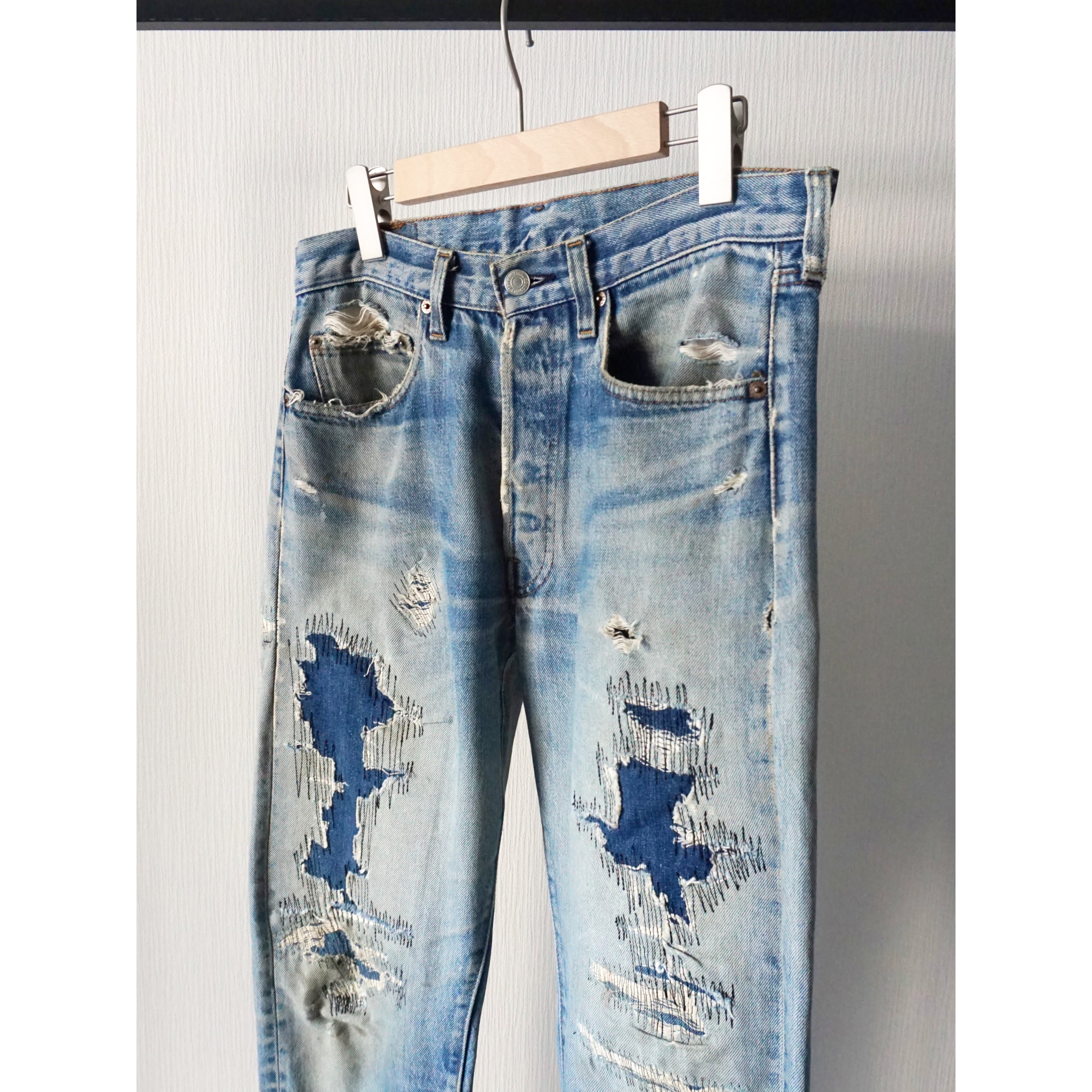 1980s vintage "Levi's" 501 Redline artistic repaired denim pants made in USA