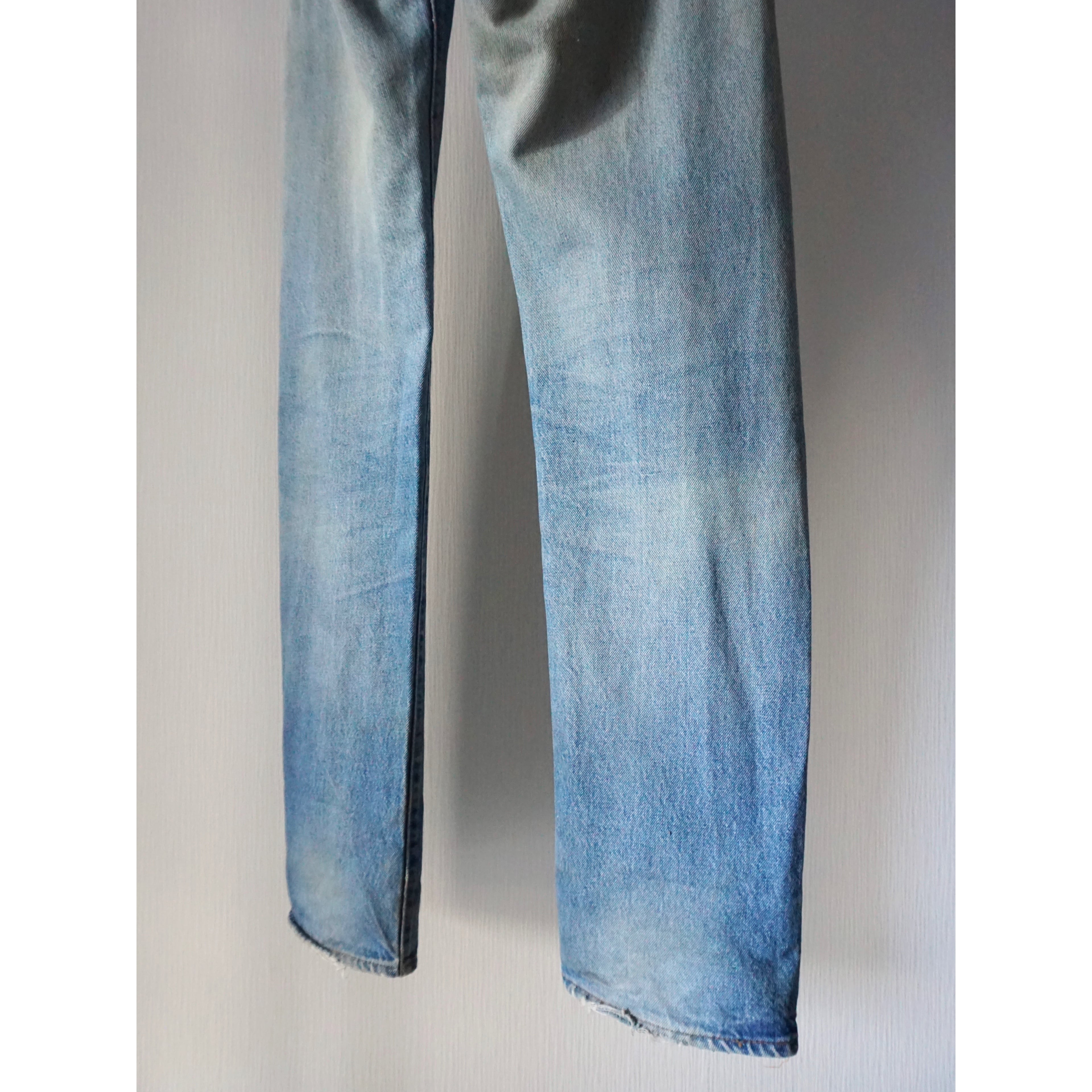タテオチ、うっすらヒゲも出た濃淡がしっかり分かる、良い感じに褪色したブルーデニム。デニム自体の雰囲気も抜群ですが、此方は前所有者によるフロント、バックのクラッシュ部分に別デニムでタタキによるリペアが施された一本。雑にたたかれてる感じなんかもリアルなアメリカ感じる、相当クールな501かと☺︎