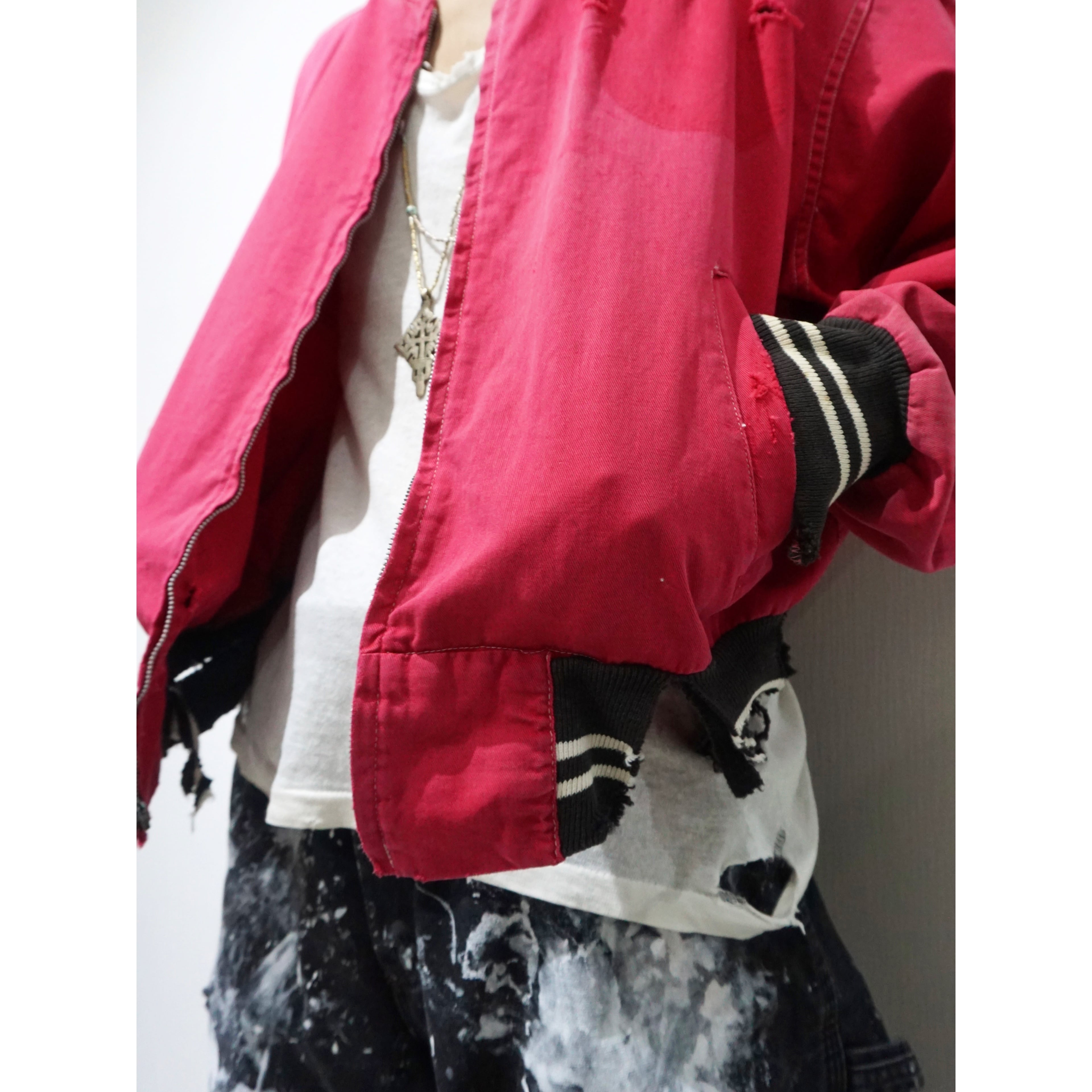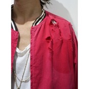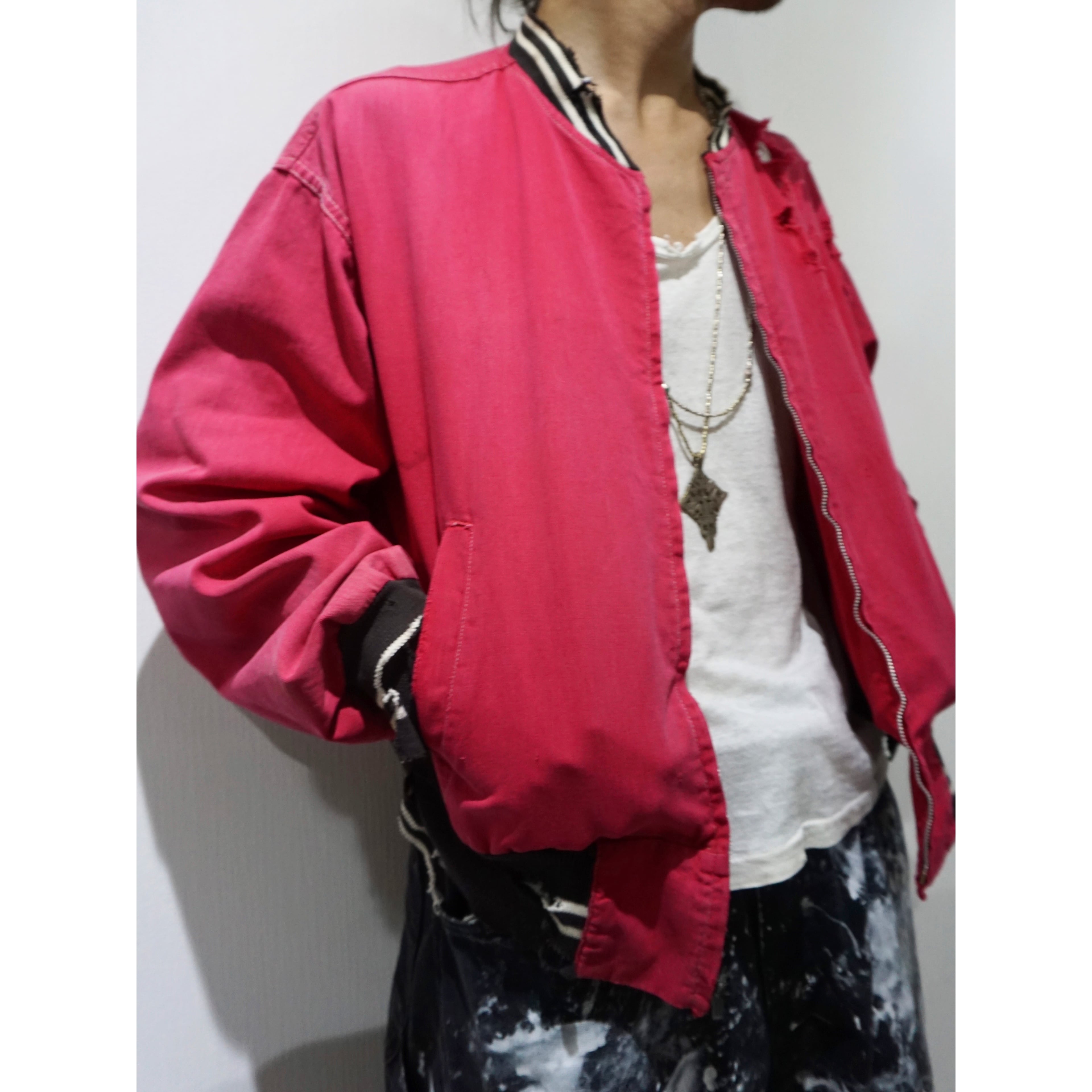 サンフェードにより赤がピンクっぽくフェードしたボディ。更にはリブや各所に雰囲気良く入るリアルなダメージ。。めちゃくちゃクールなルックスの一着です。