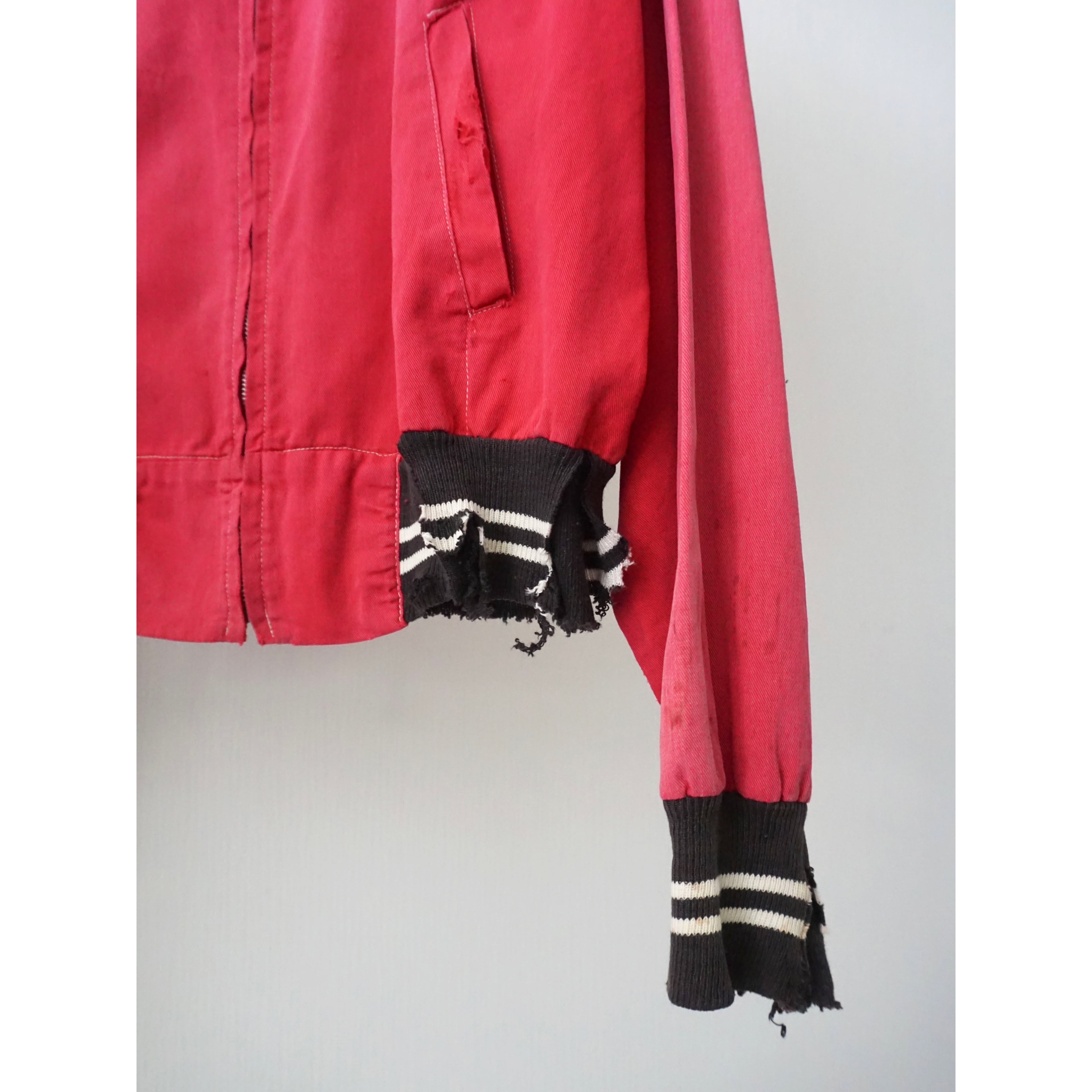 フロントはTALONジッパーで、赤ボディに黒×白でのリブラインの入るスポジャケタイプの一着です。