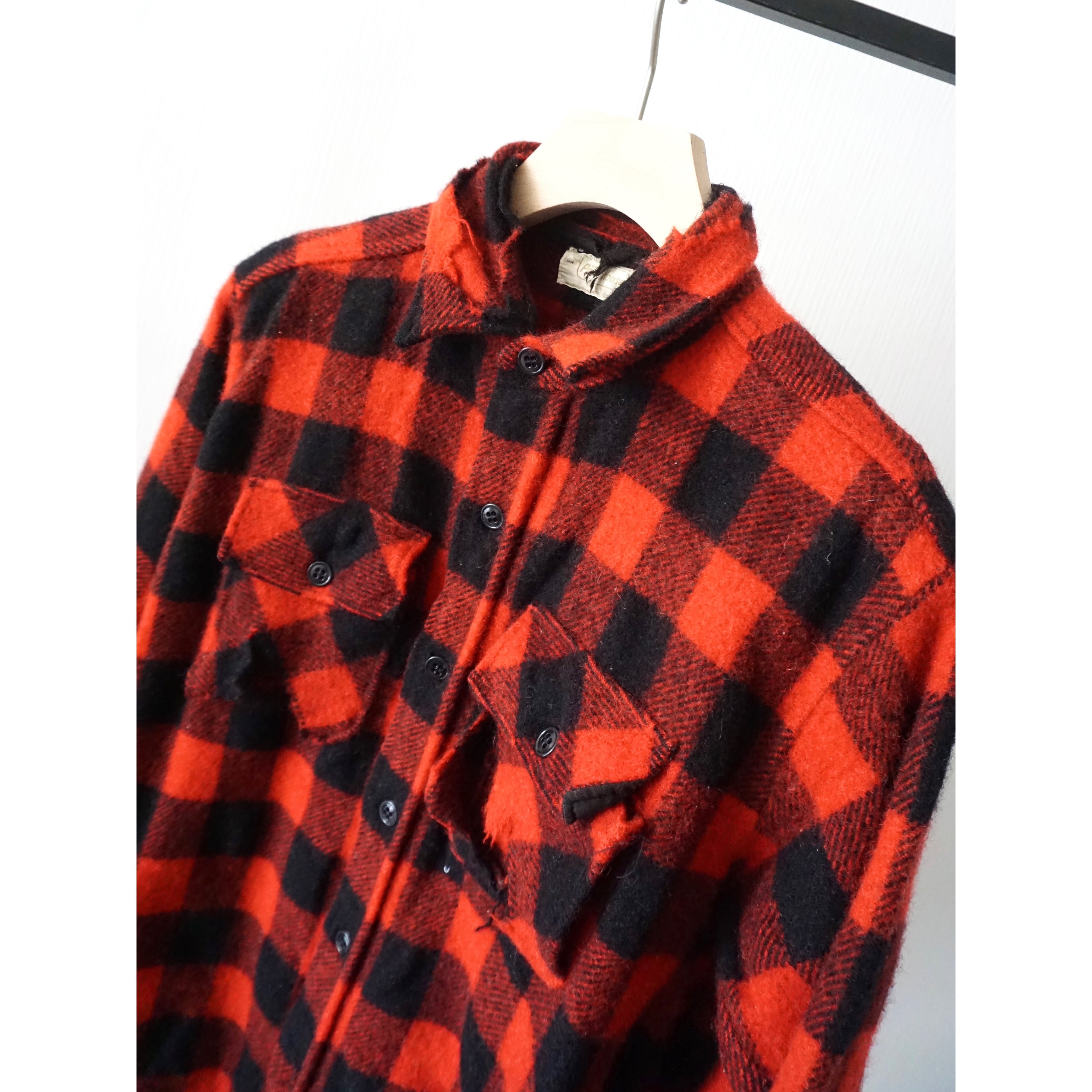 1960s vintage "PowrHouse" Boro Buffalo check wool flannel shirt