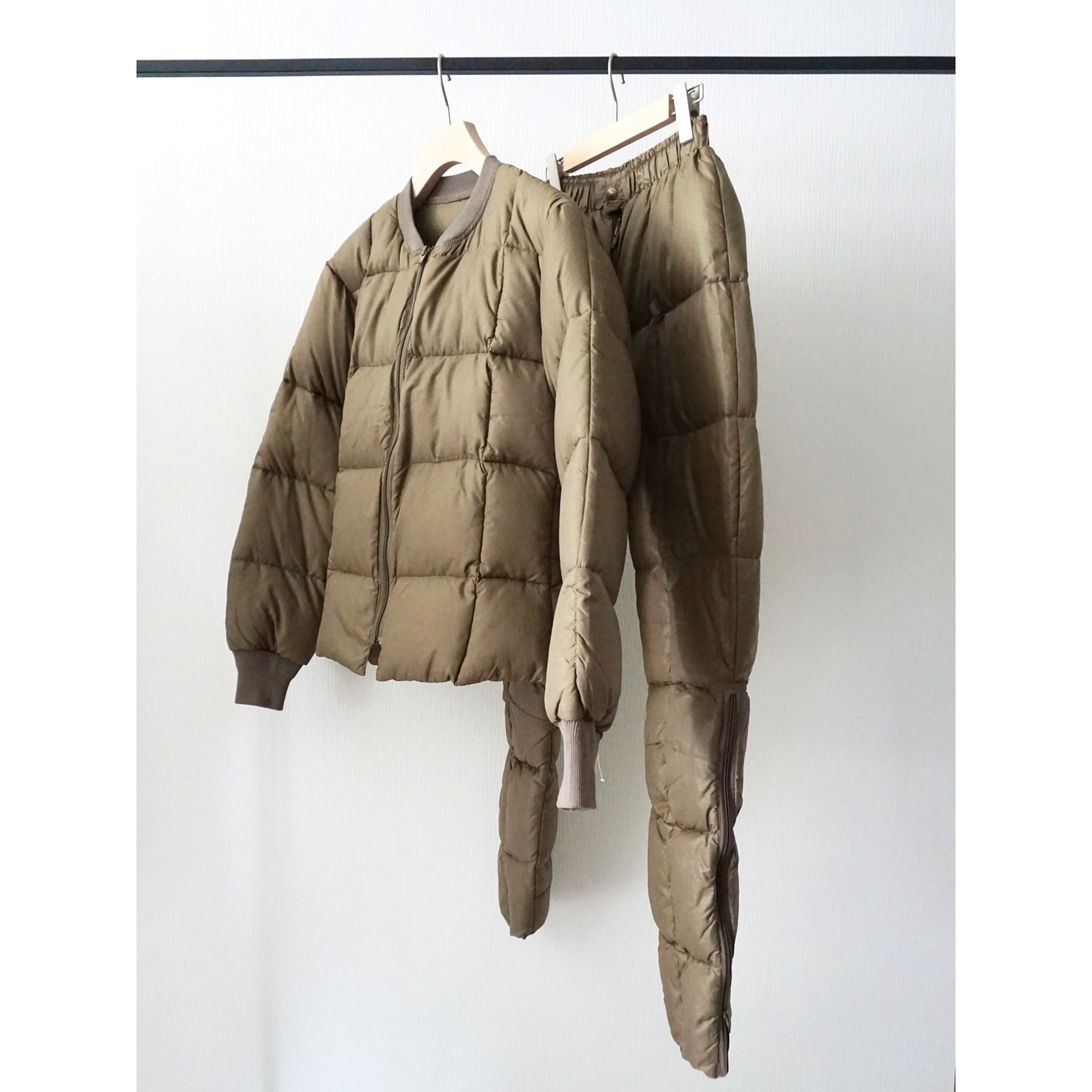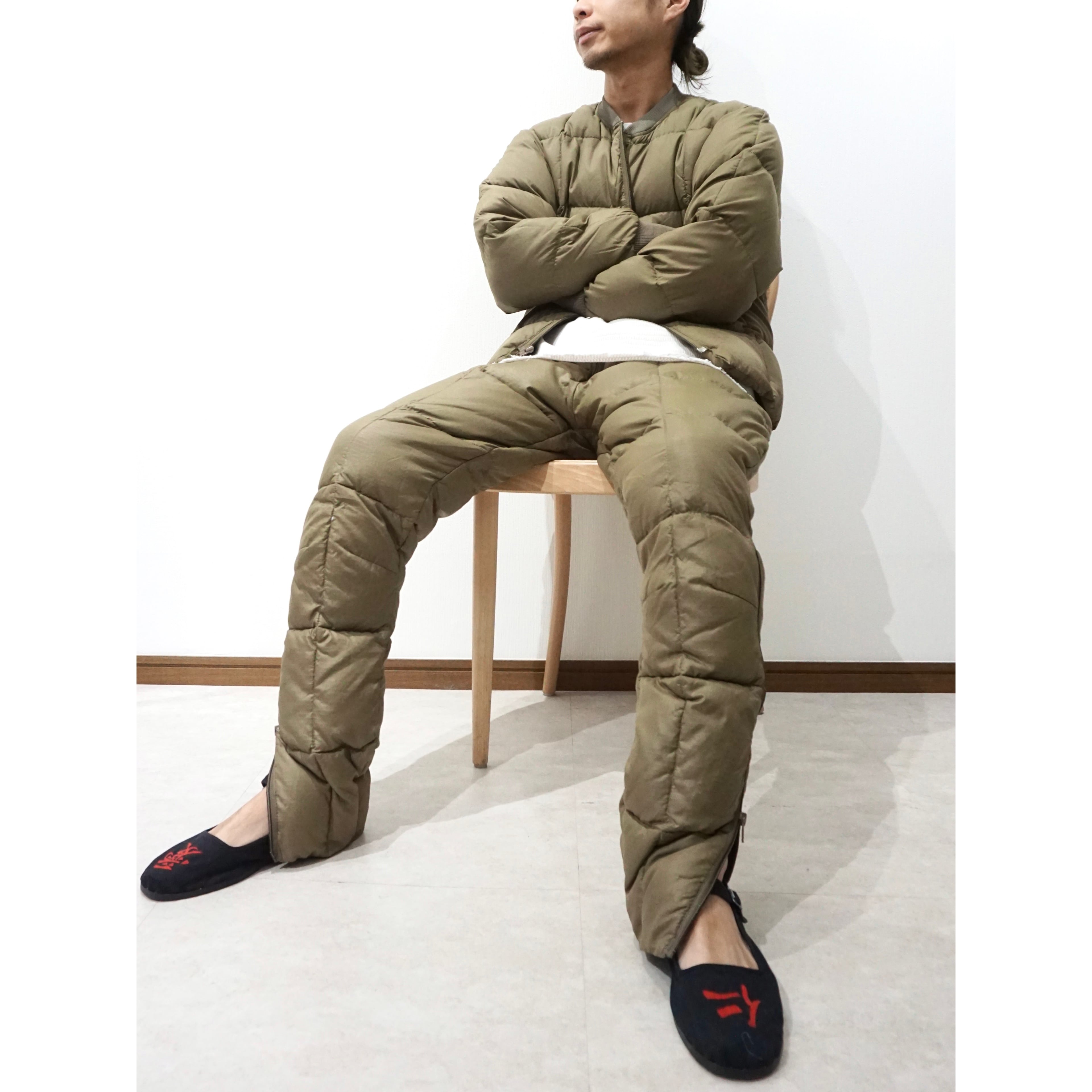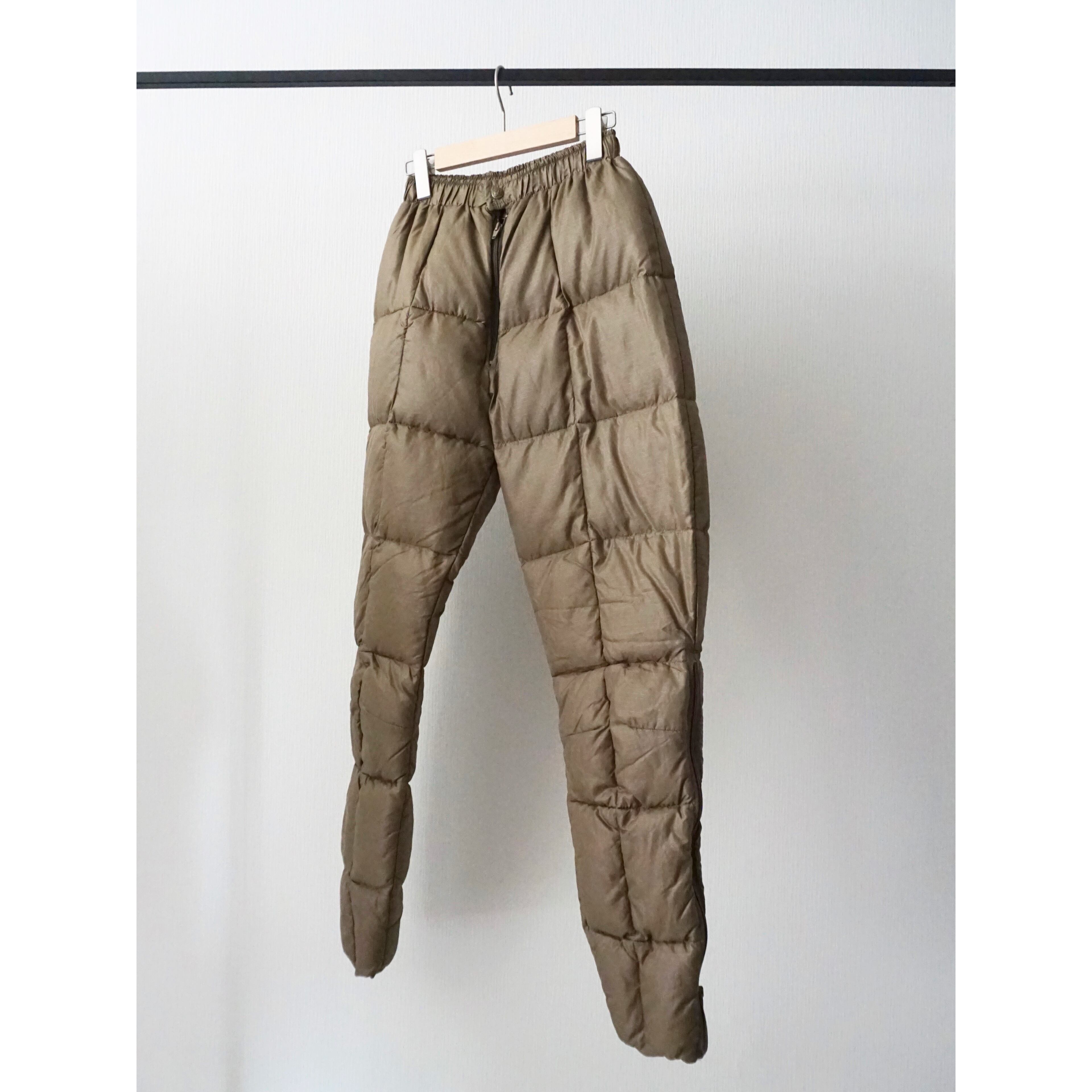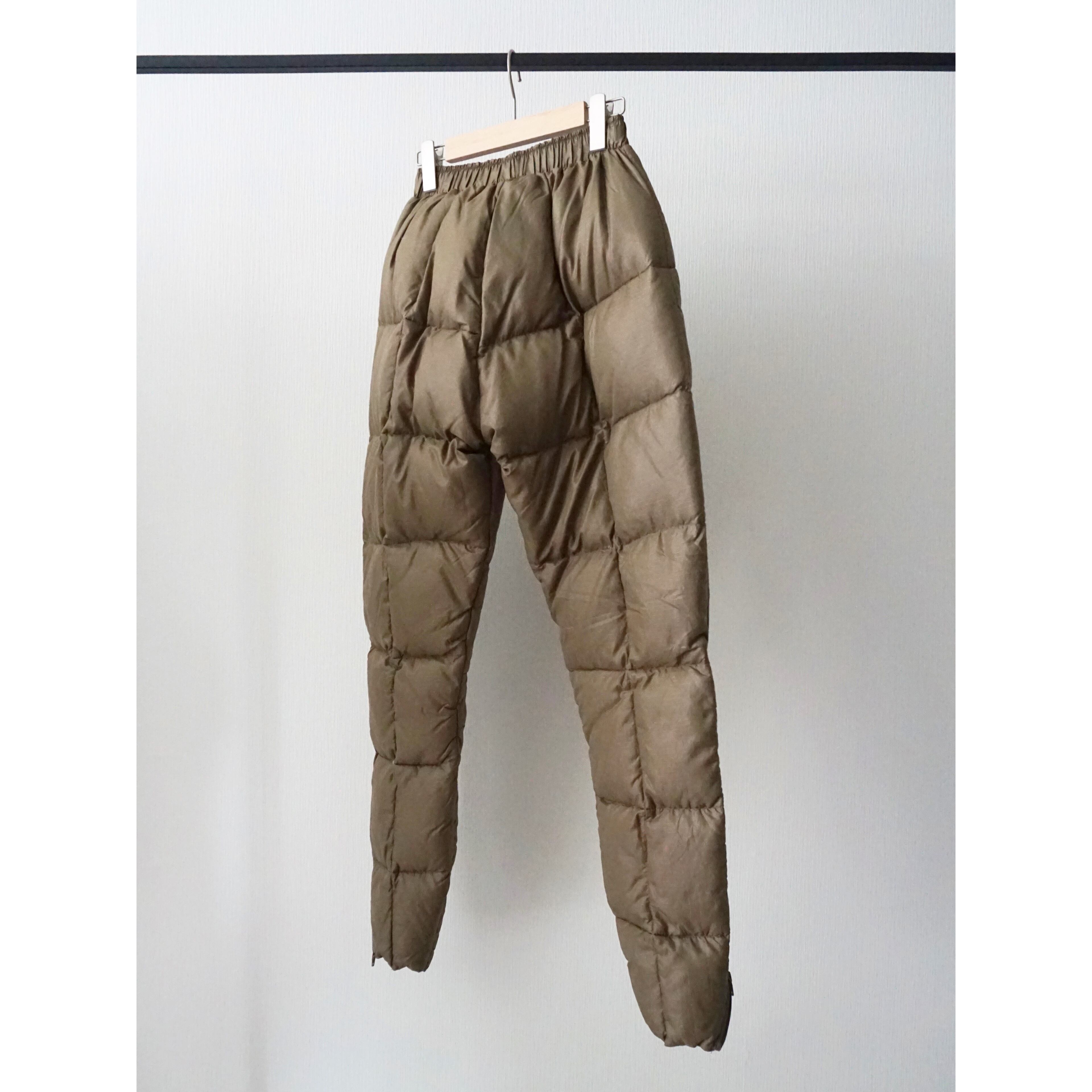 ダウンパンツはゴムがしっかり効いたイージーパンツ仕様。フロントトップにスナップボタン、ジッパーが付きます。