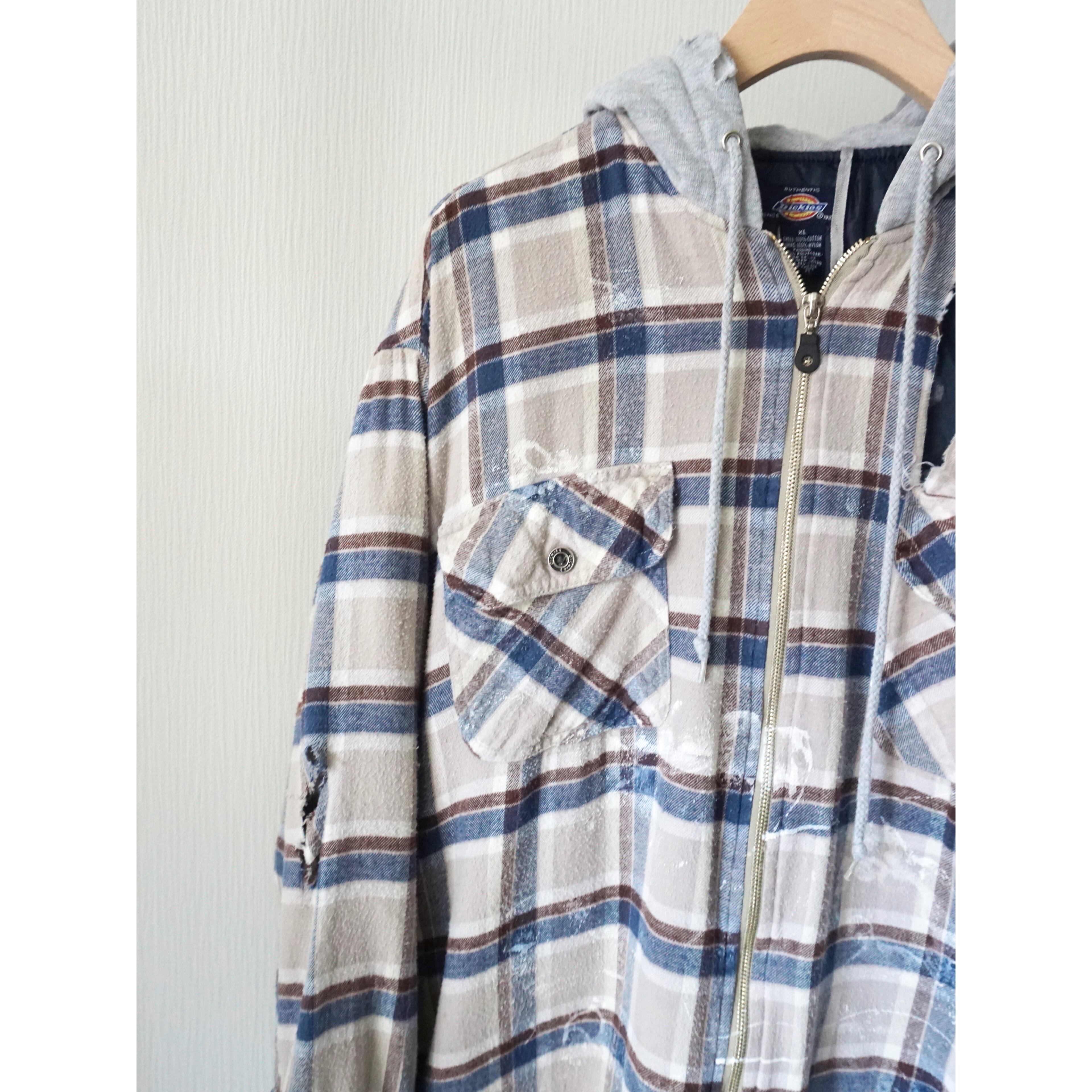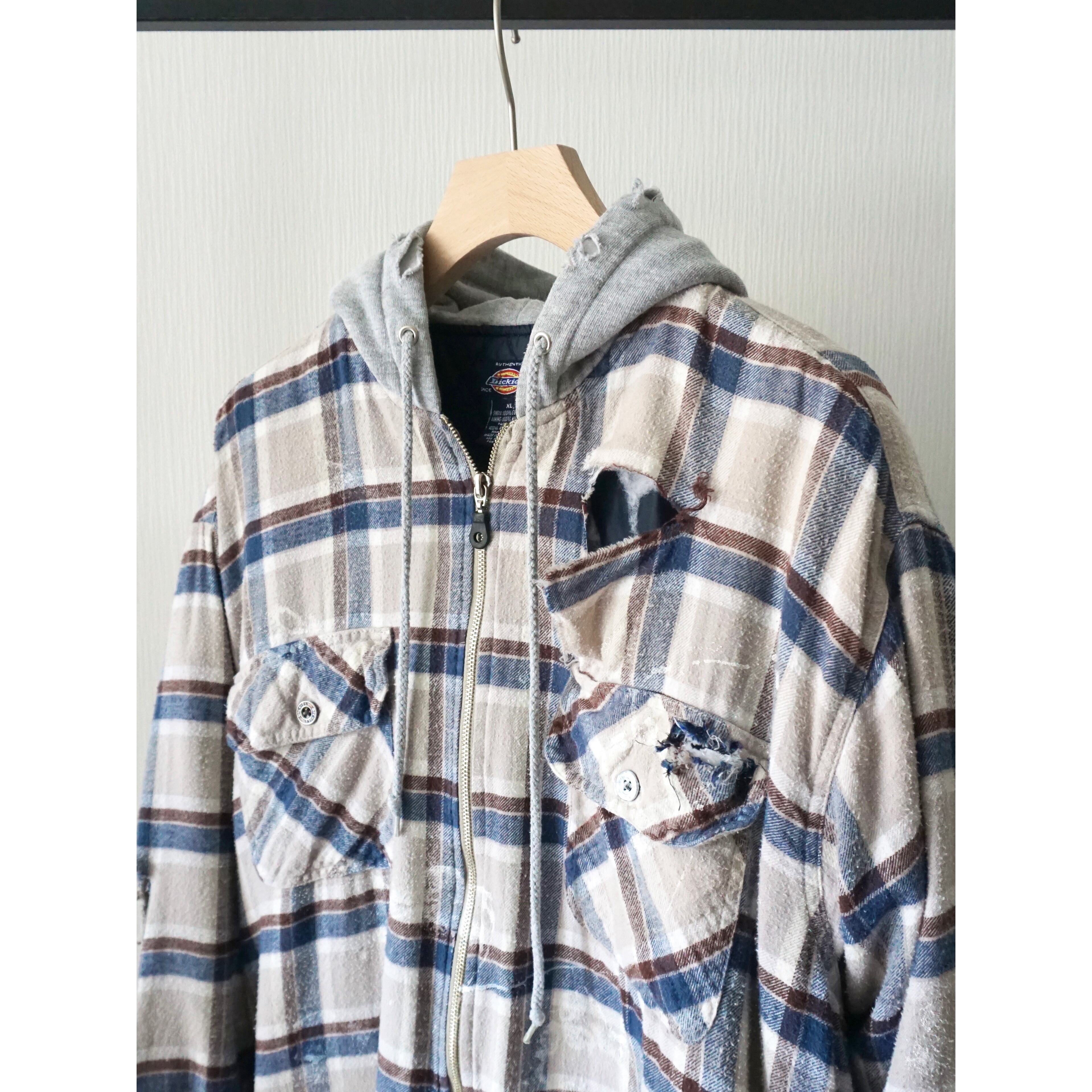 Dickiesの裏キルティング仕様のチェック柄フランネルジップアップパーカー。