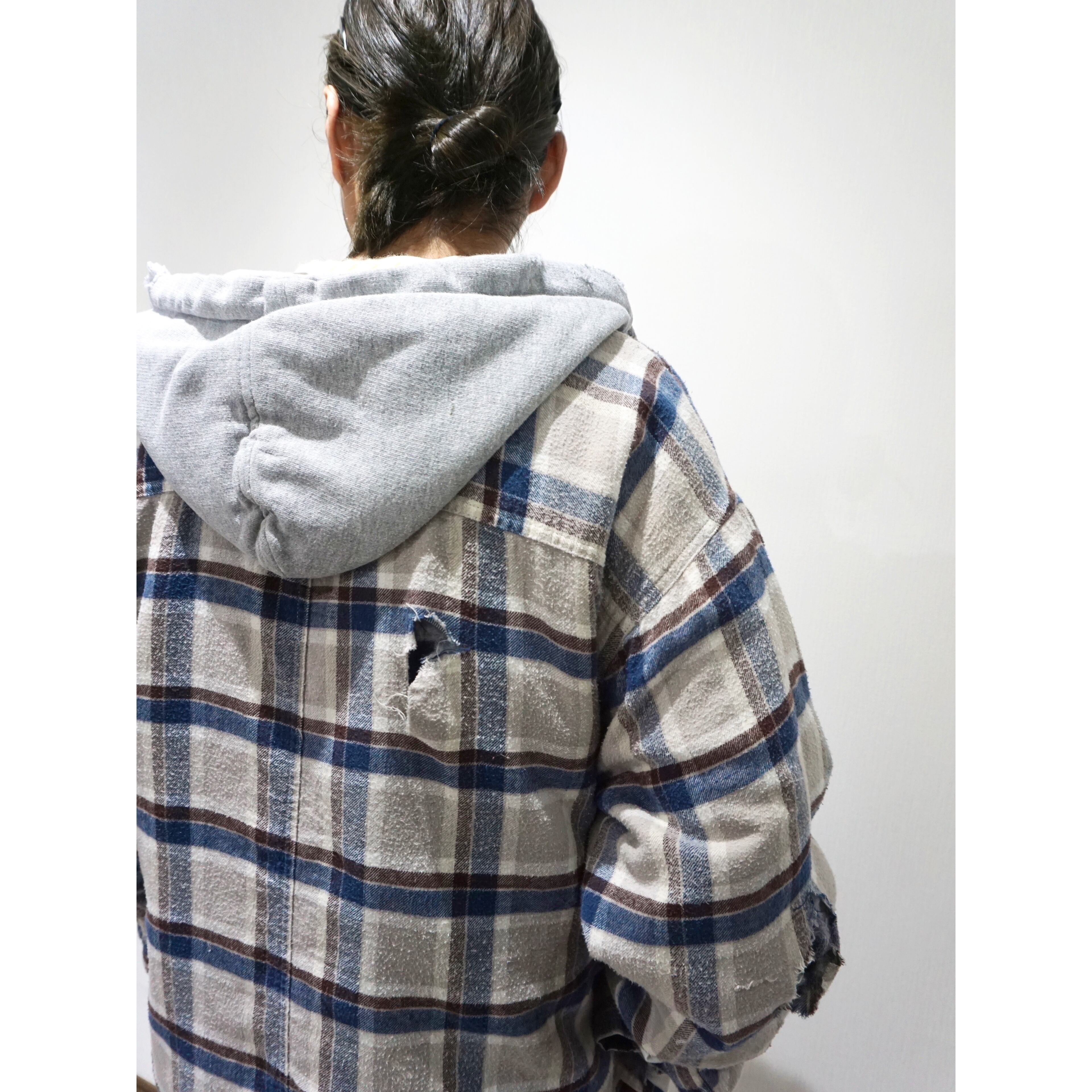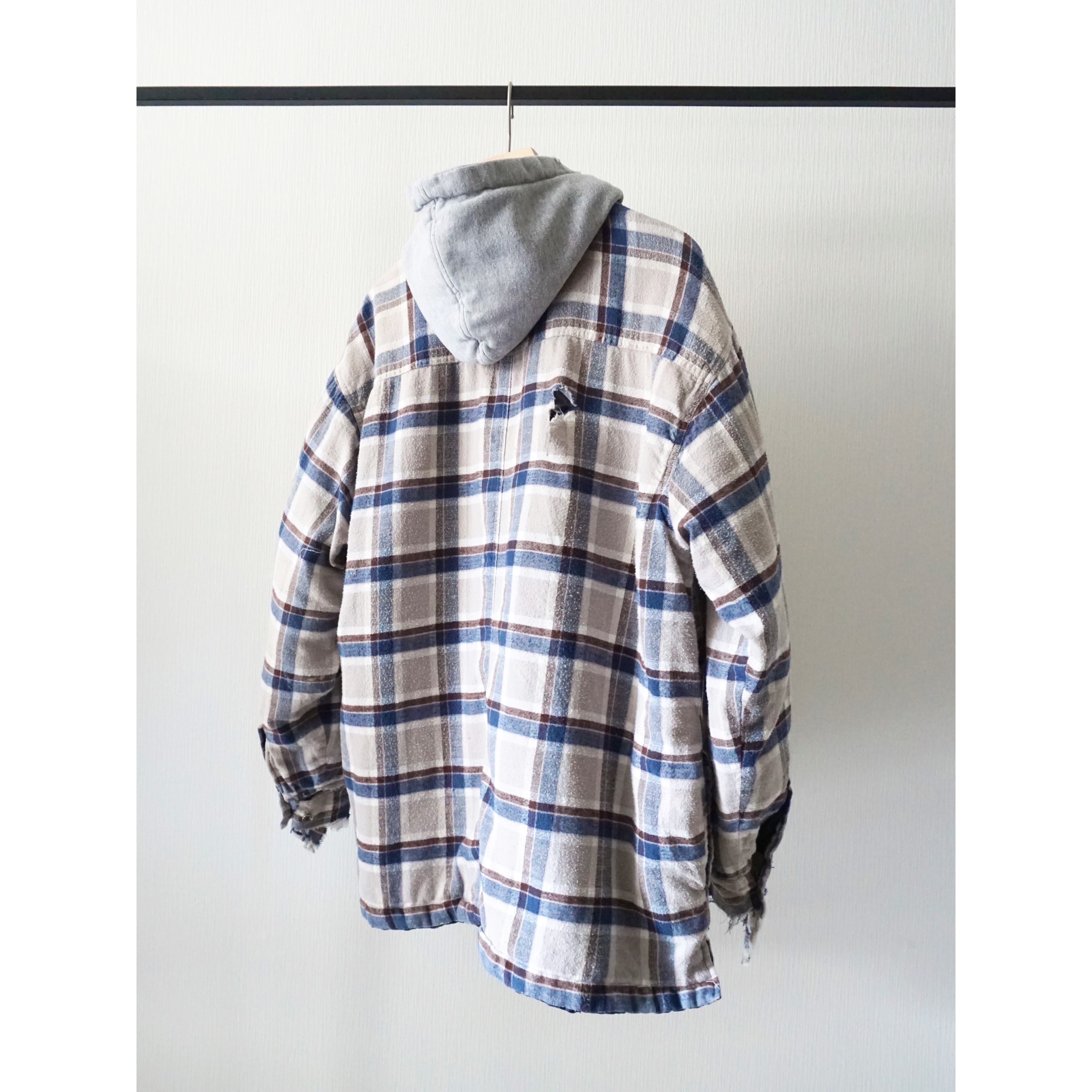 配色も良い気分なチェックネルに加えて使い勝手の良いジップアップパーカースタイル。更には裏キルティング仕様の保温性もあり今時期に丁度良い一着かと。