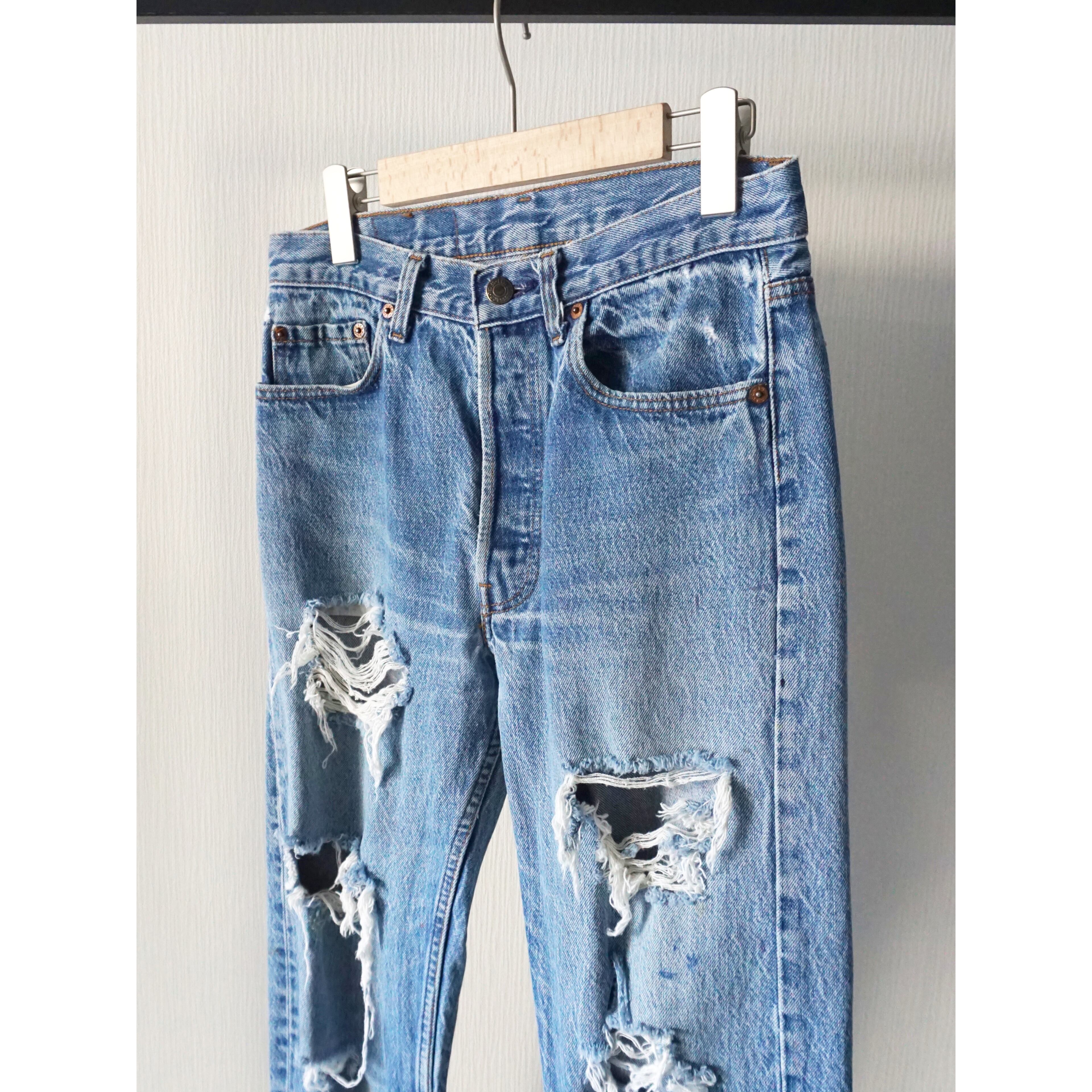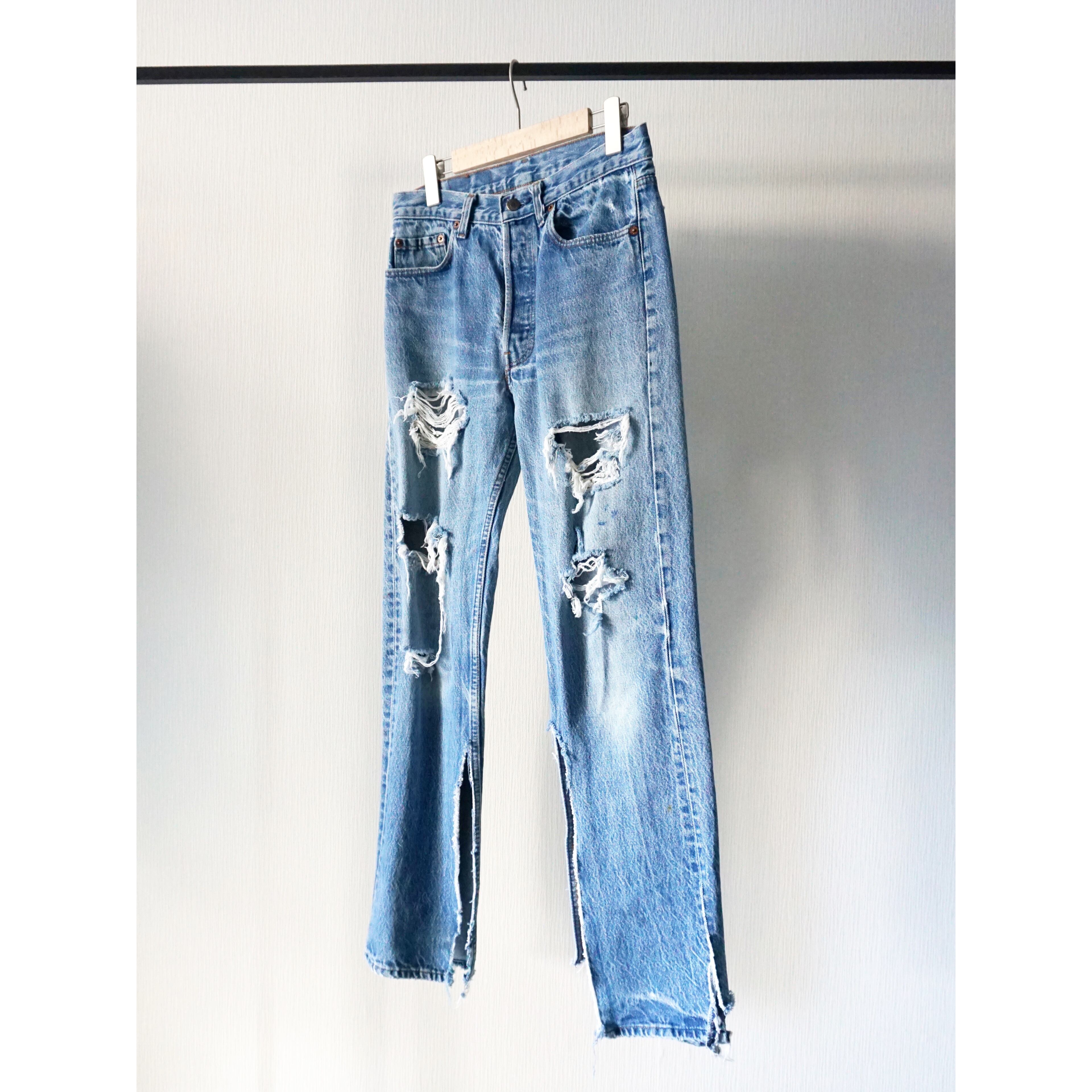 1990s vintage "Levi's" 501 hard crashed denim pants made in USA