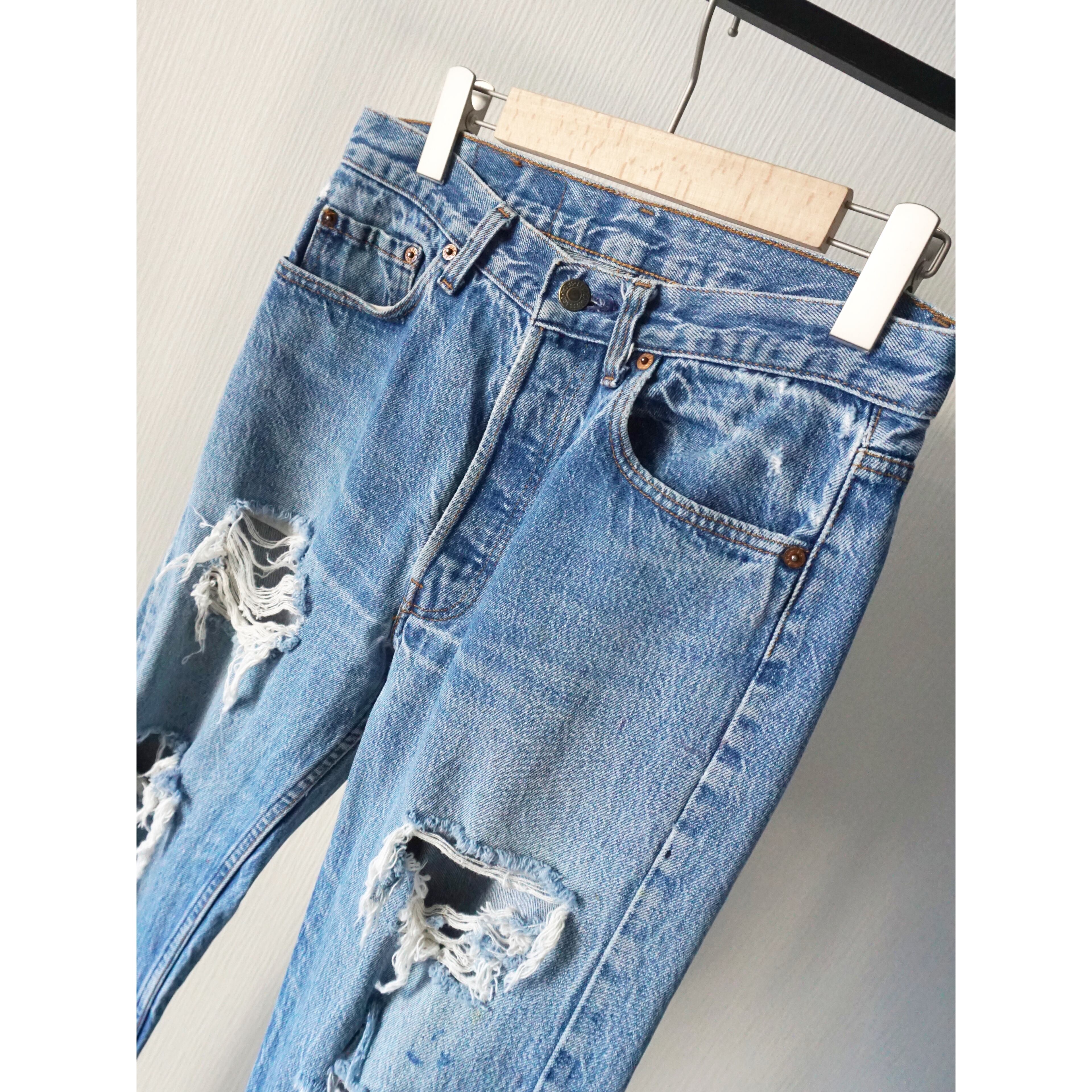 1990年代ボタン裏524、USA製リーバイス501ハードクラッシュデニムパンツ。