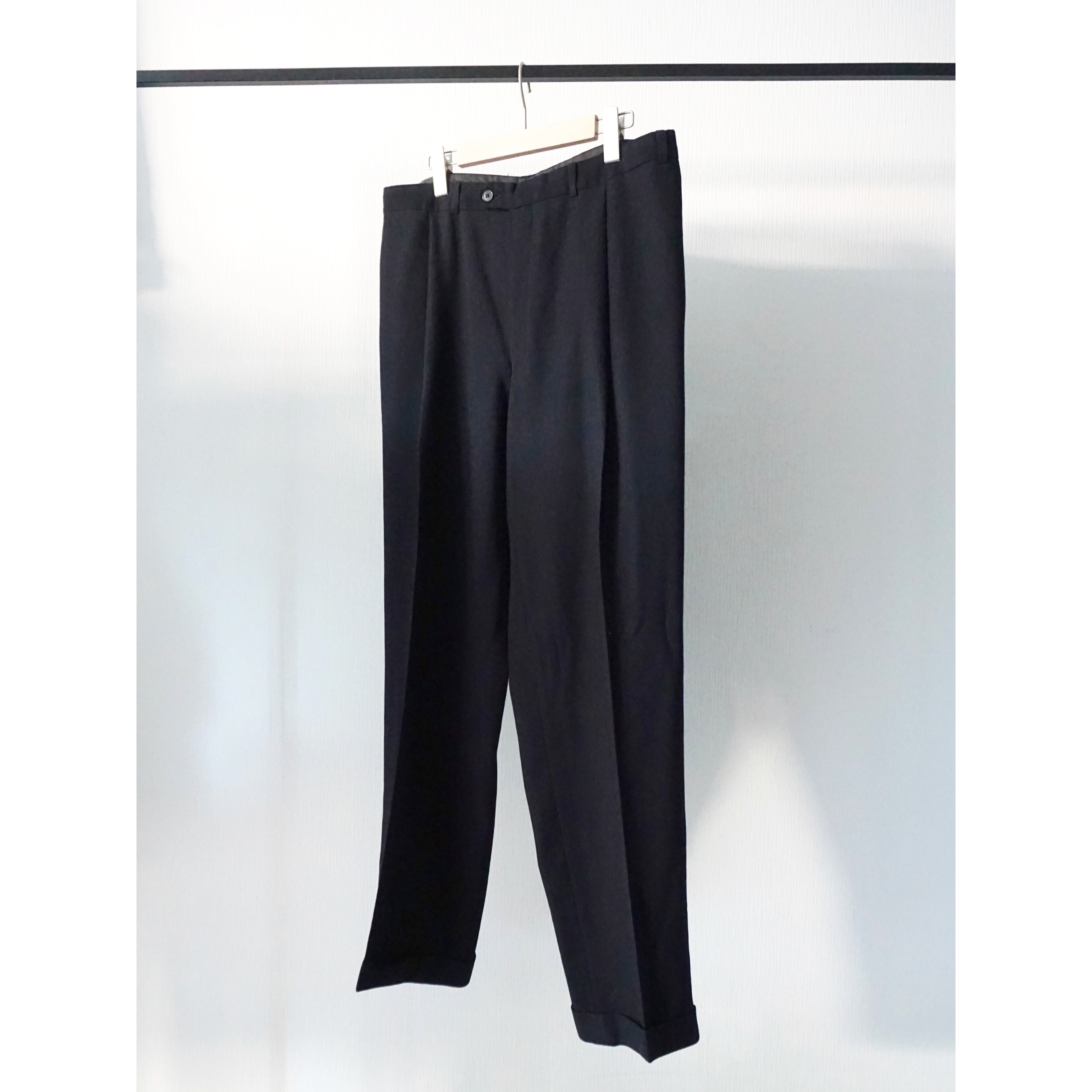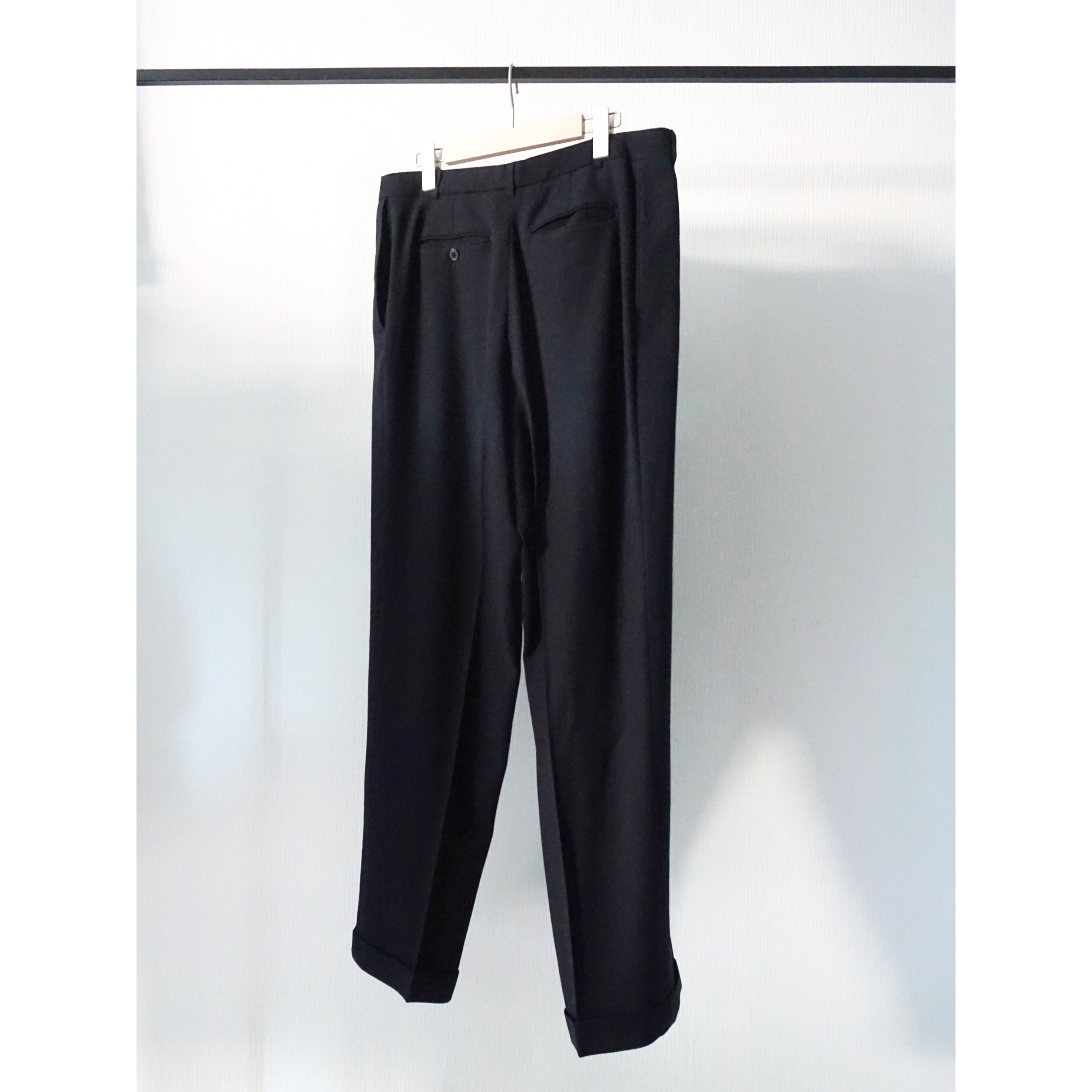 スラックスは、ウエスト1タックの入るワイドテーパードシルエットです。