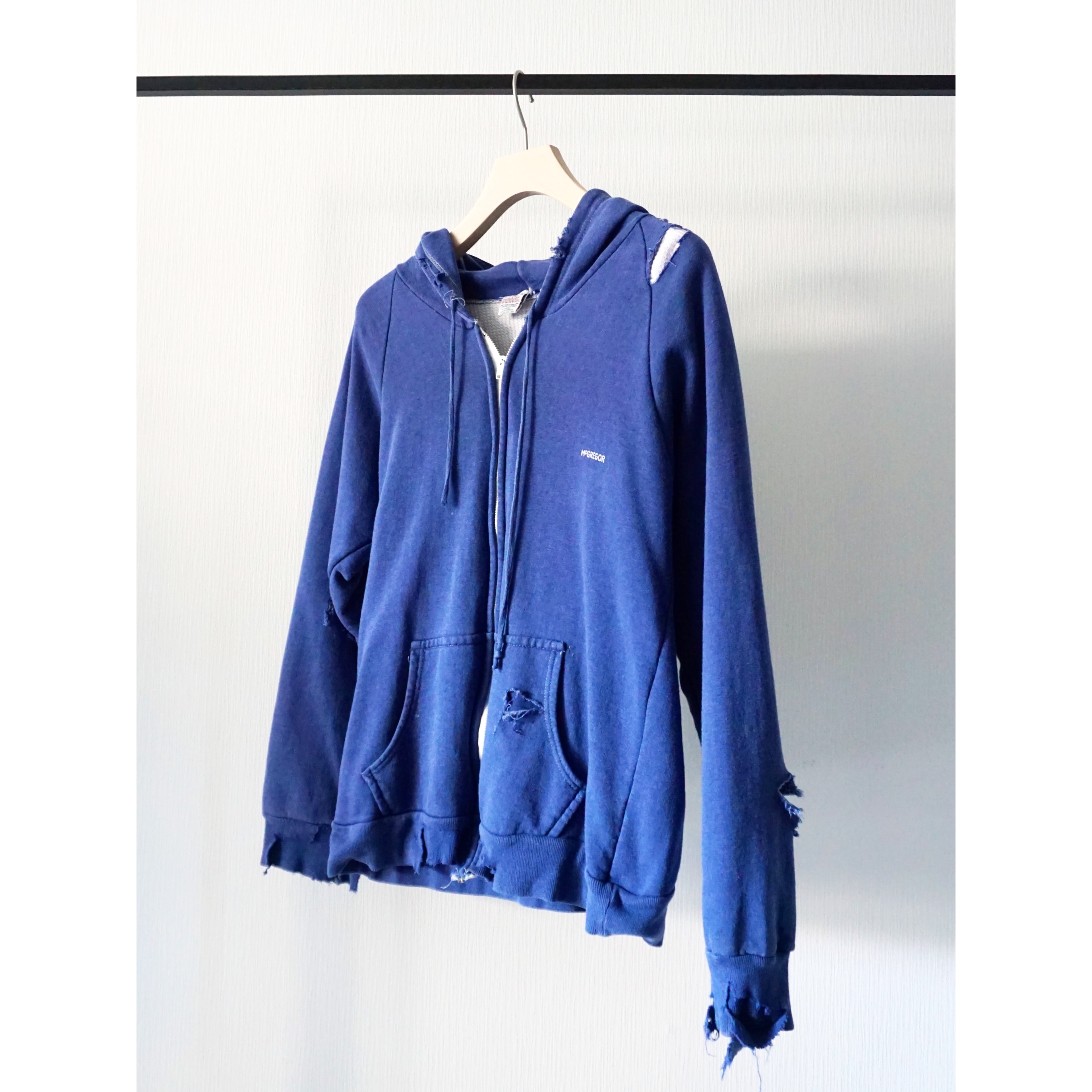 程良くフェード感のあるブルー、細かく入るダメージ、ダメージ部分から裏のサーマルが見える感じ、フロントジッパーの歪みなんかもヴィンテージならではなリアルなBoro感が愛くるしい一着です☺︎