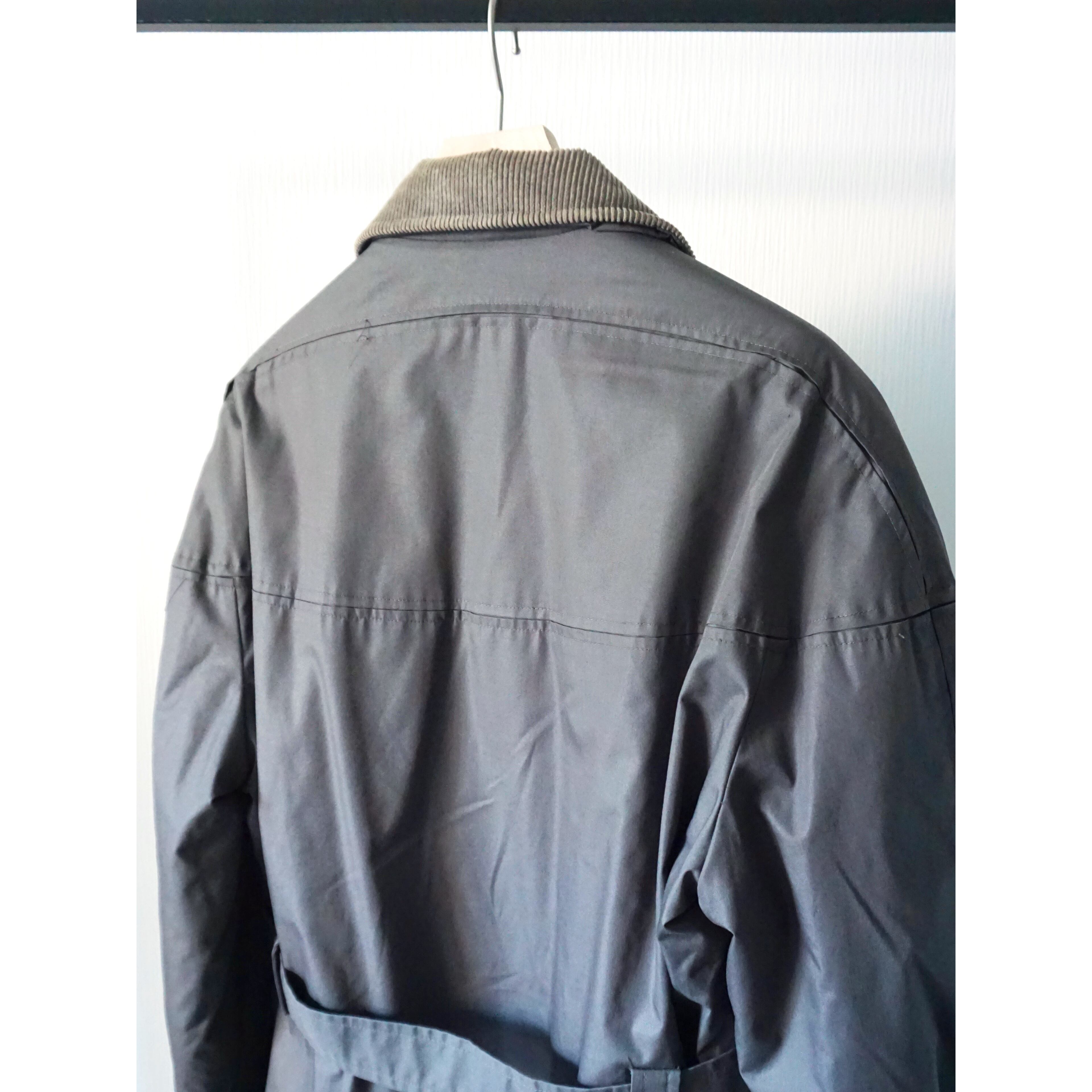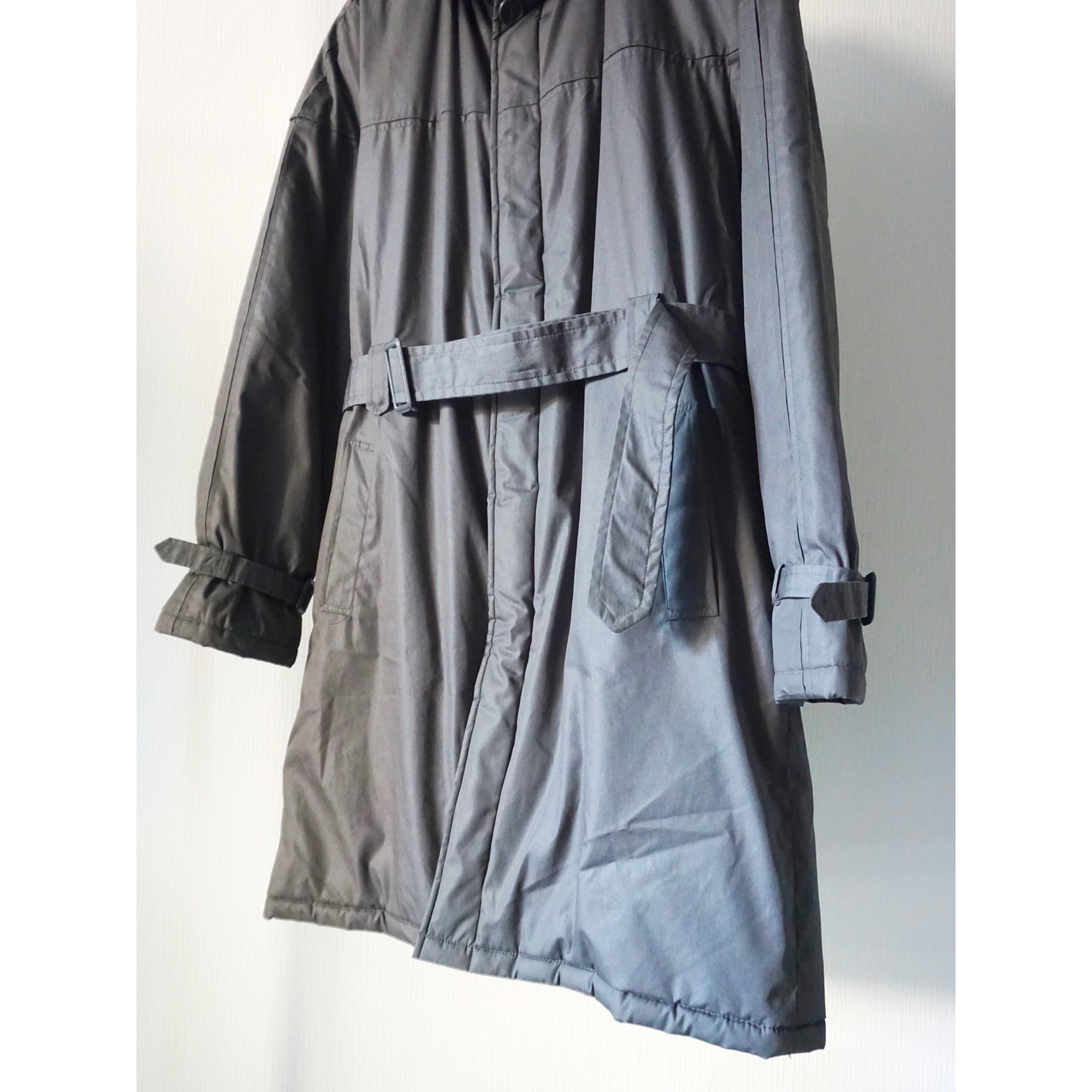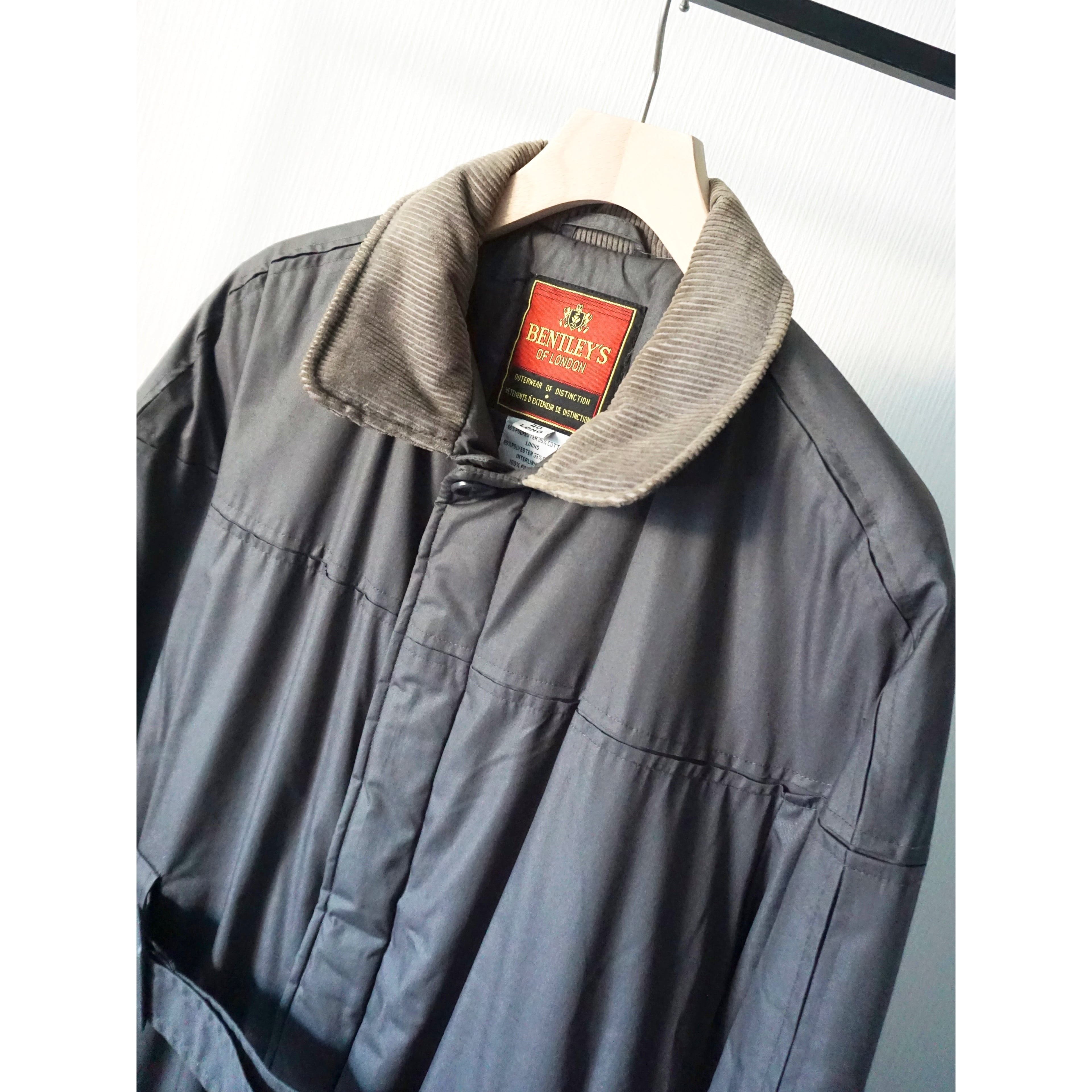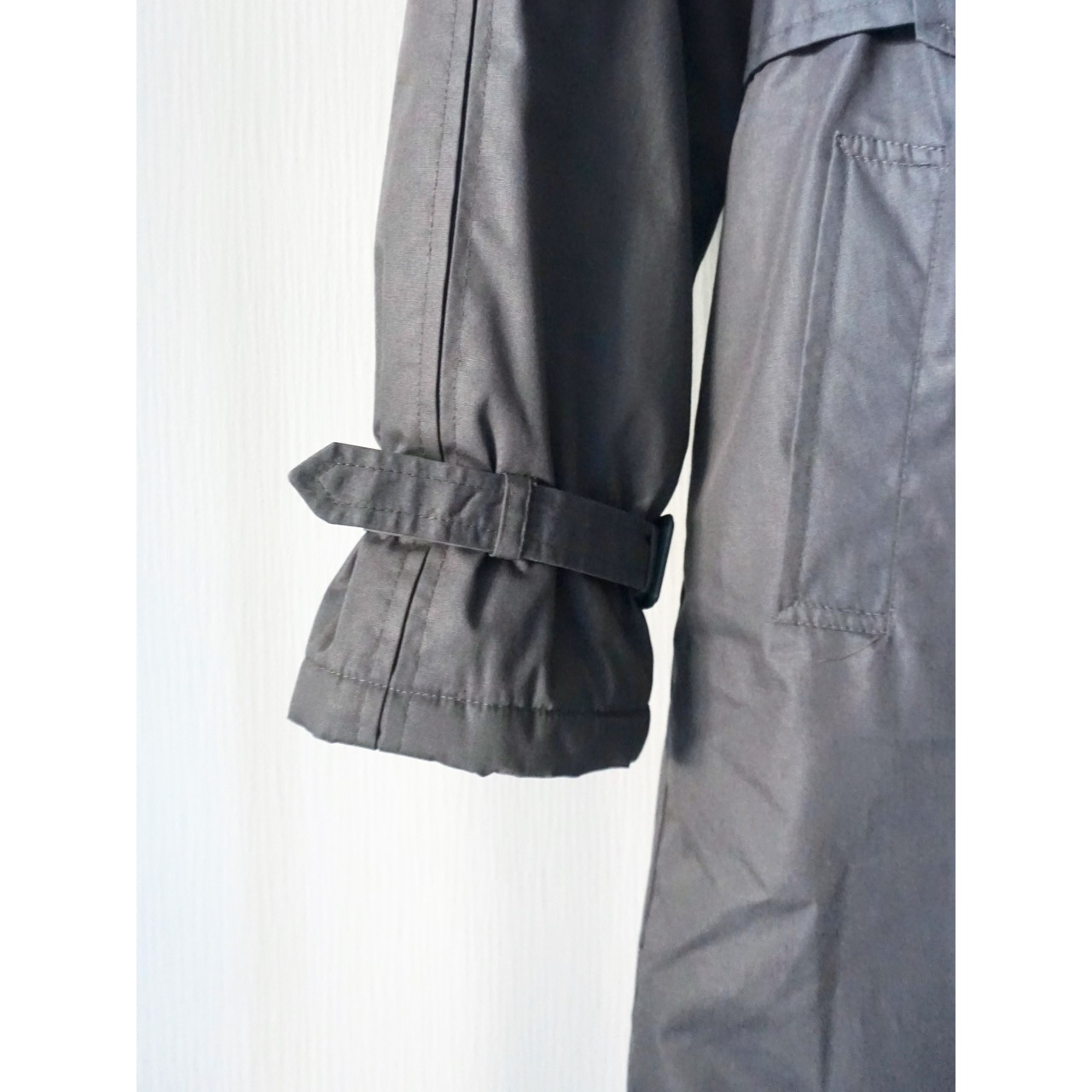 ハリのあるポリ×コットンシェルに男らしい無機質なグレーカラー。襟はコーデュロイ切替。フロントはボタンで開閉できる比翼仕立てのベルテッドコートとなります。