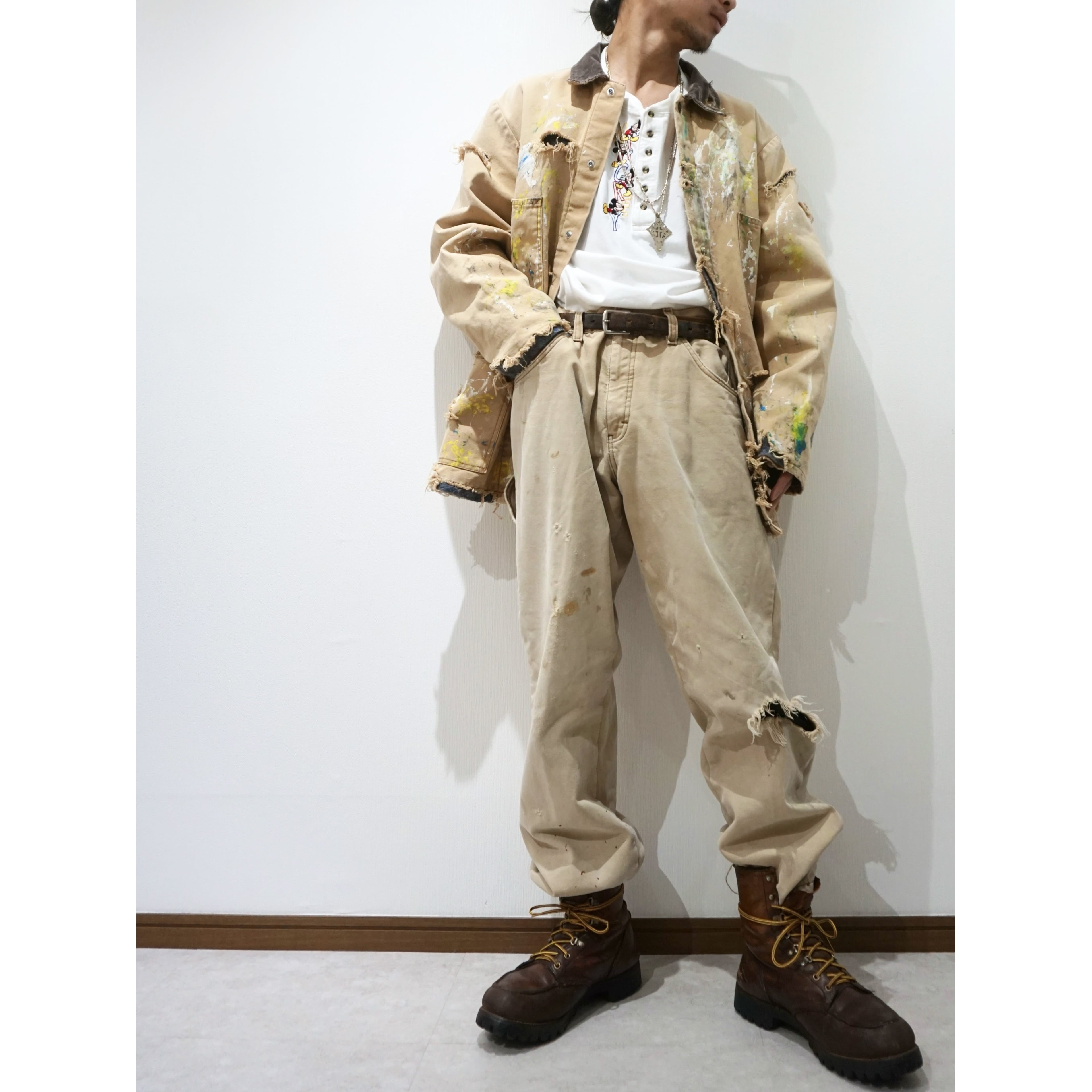 おそらくペンキ屋さんがリアルに作業着として着てたであろう激しいペンキ飛び、クラッシュ、フェードしたダックの色味。。個人的にもずっと大好きなところ、めちゃくちゃクールです☺︎