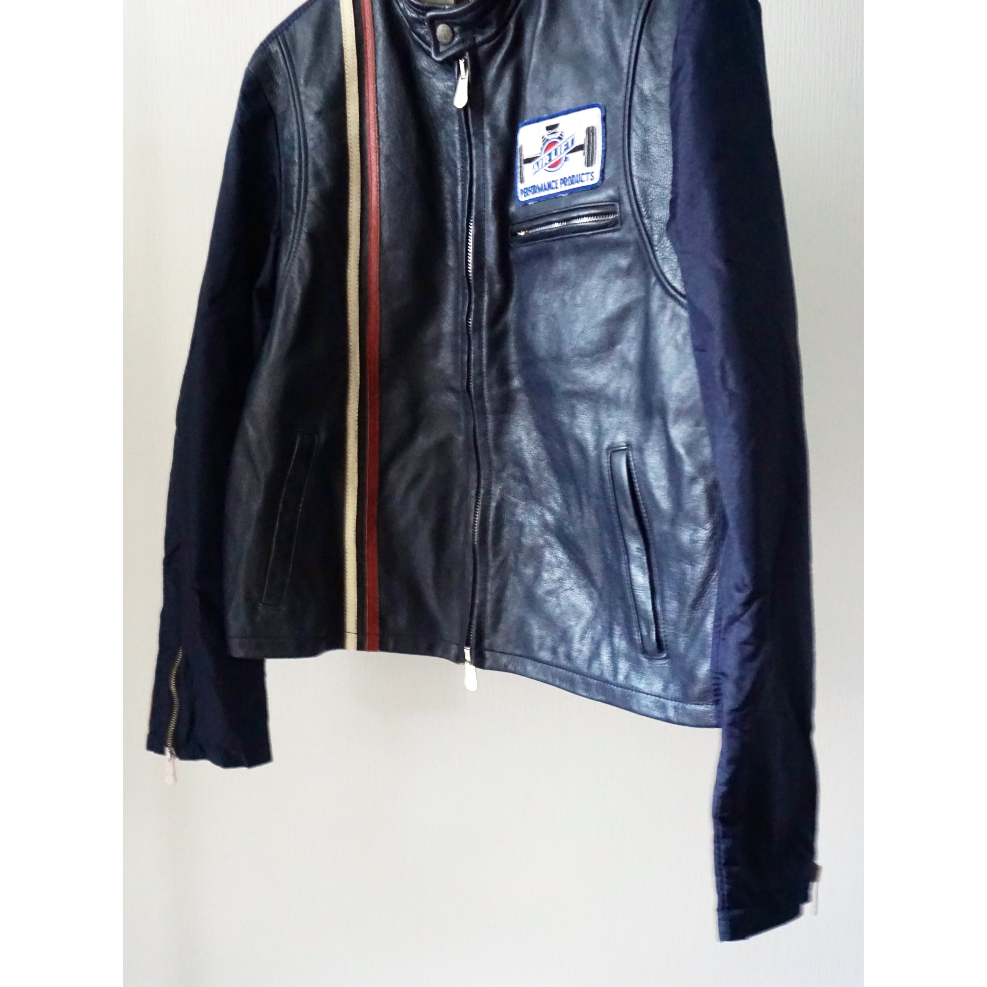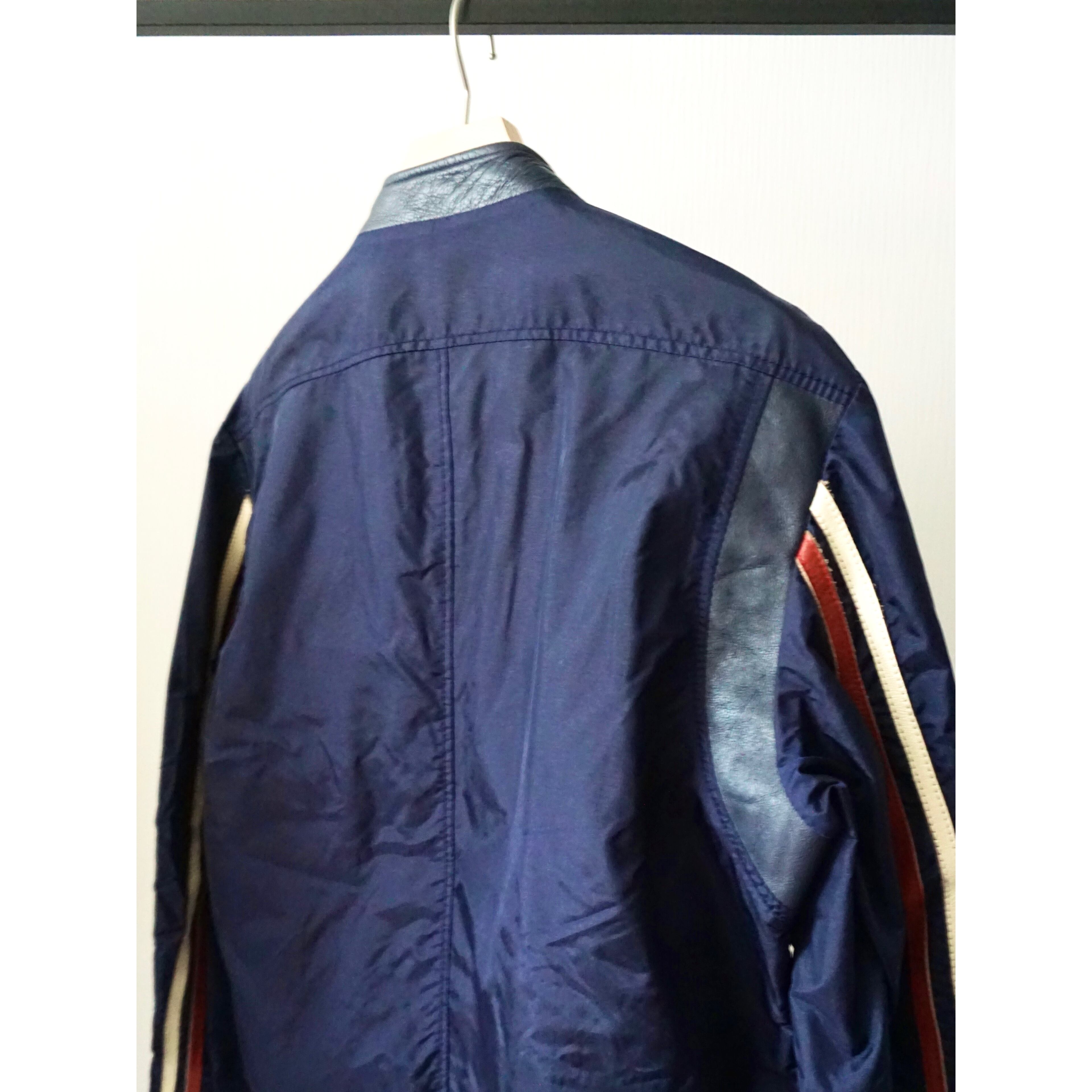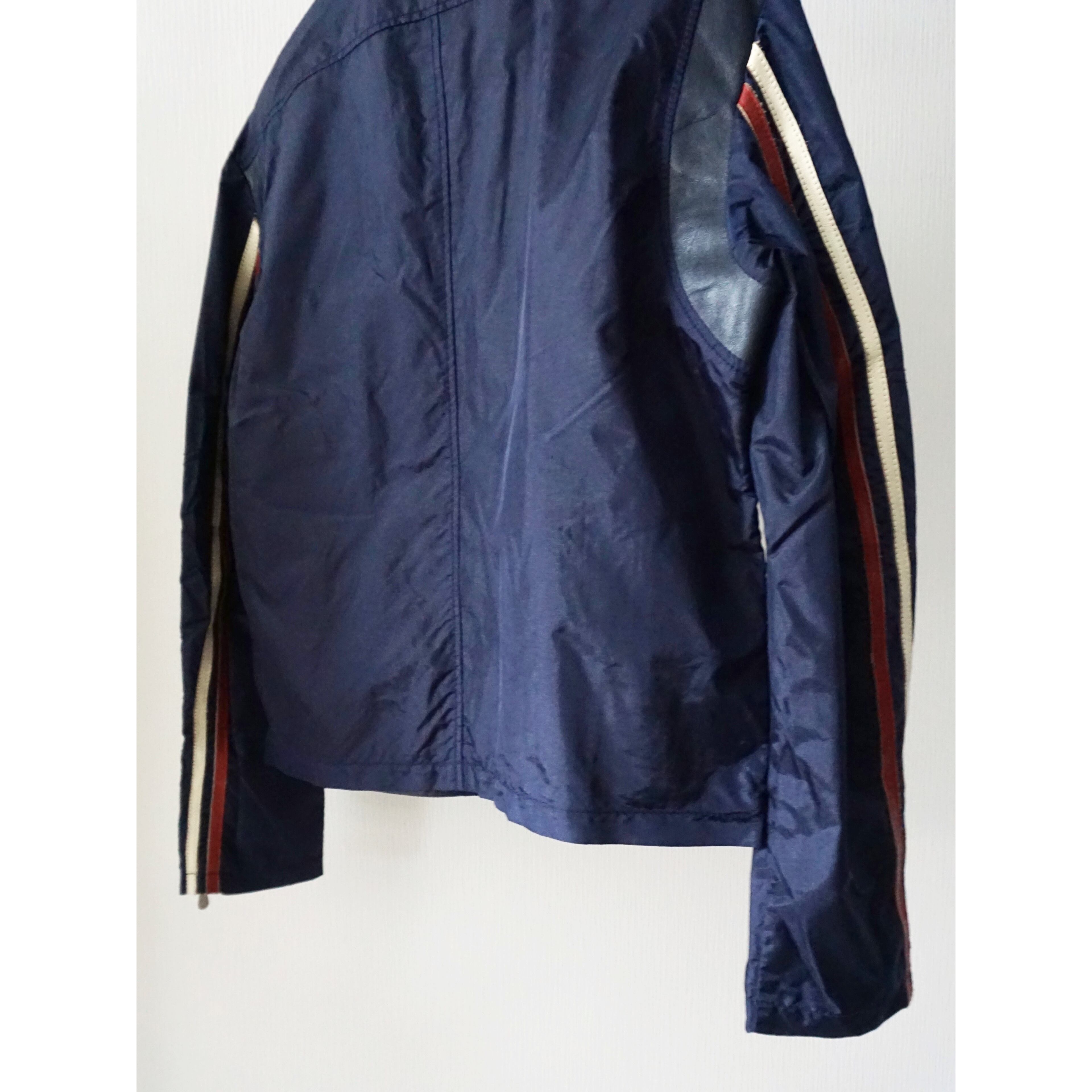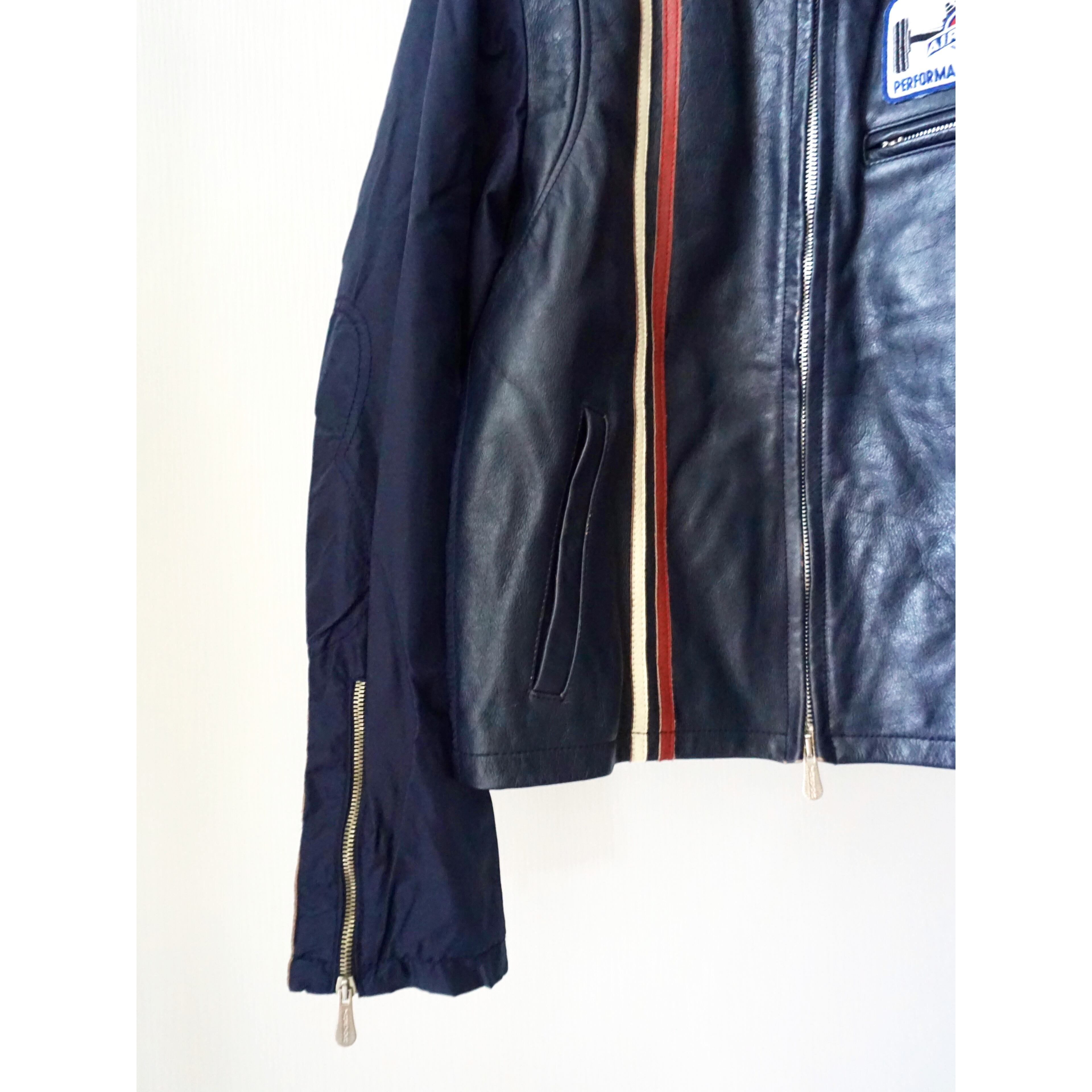 シングルライダース型でフロントはネイビーレザー、アーム、バック面はネイビーナイロンでスイッチングした、個人的にも大好きな同色異素材切替デザイン◎
