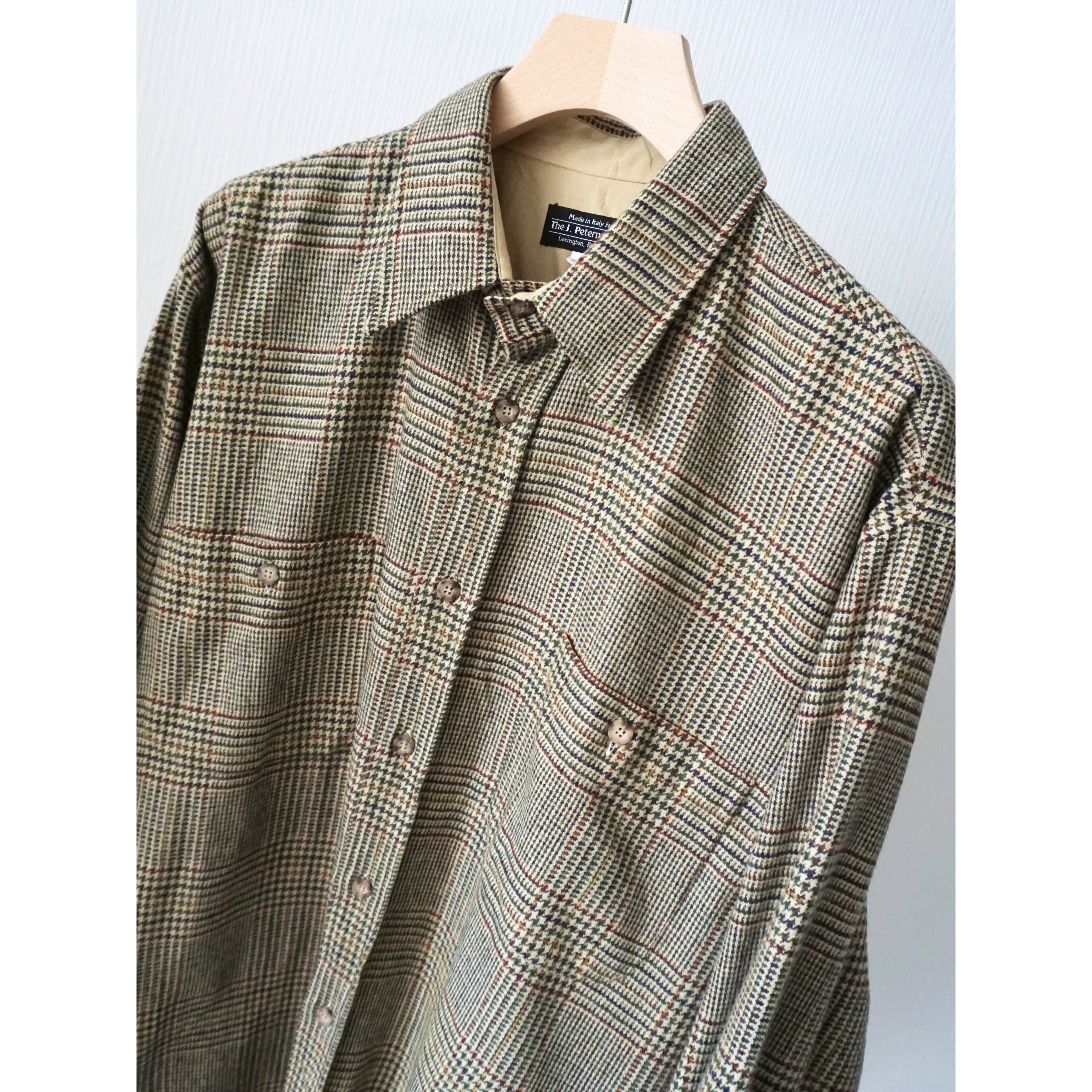 1990s vintage cashmere blend wool check pattern shirt made in ITALY