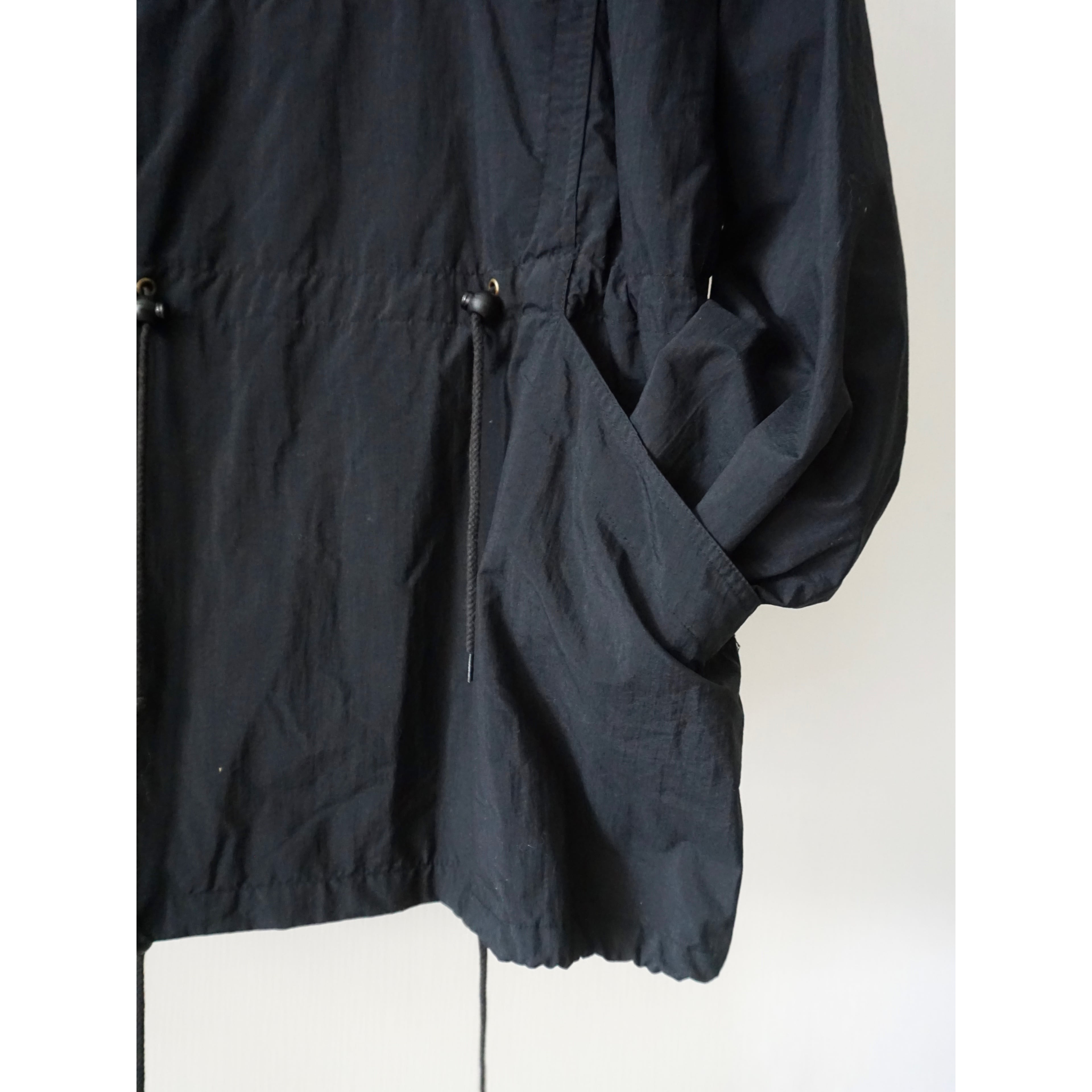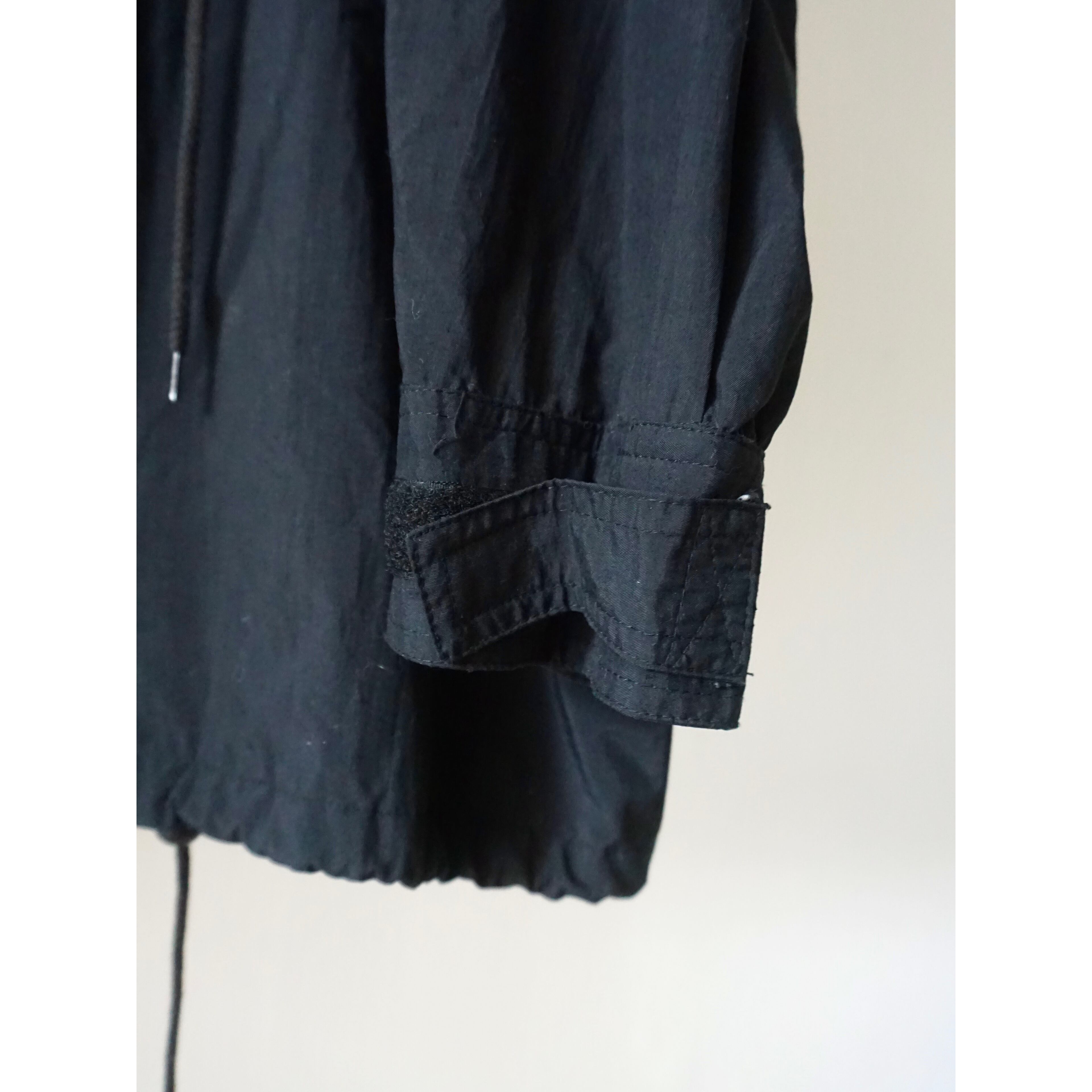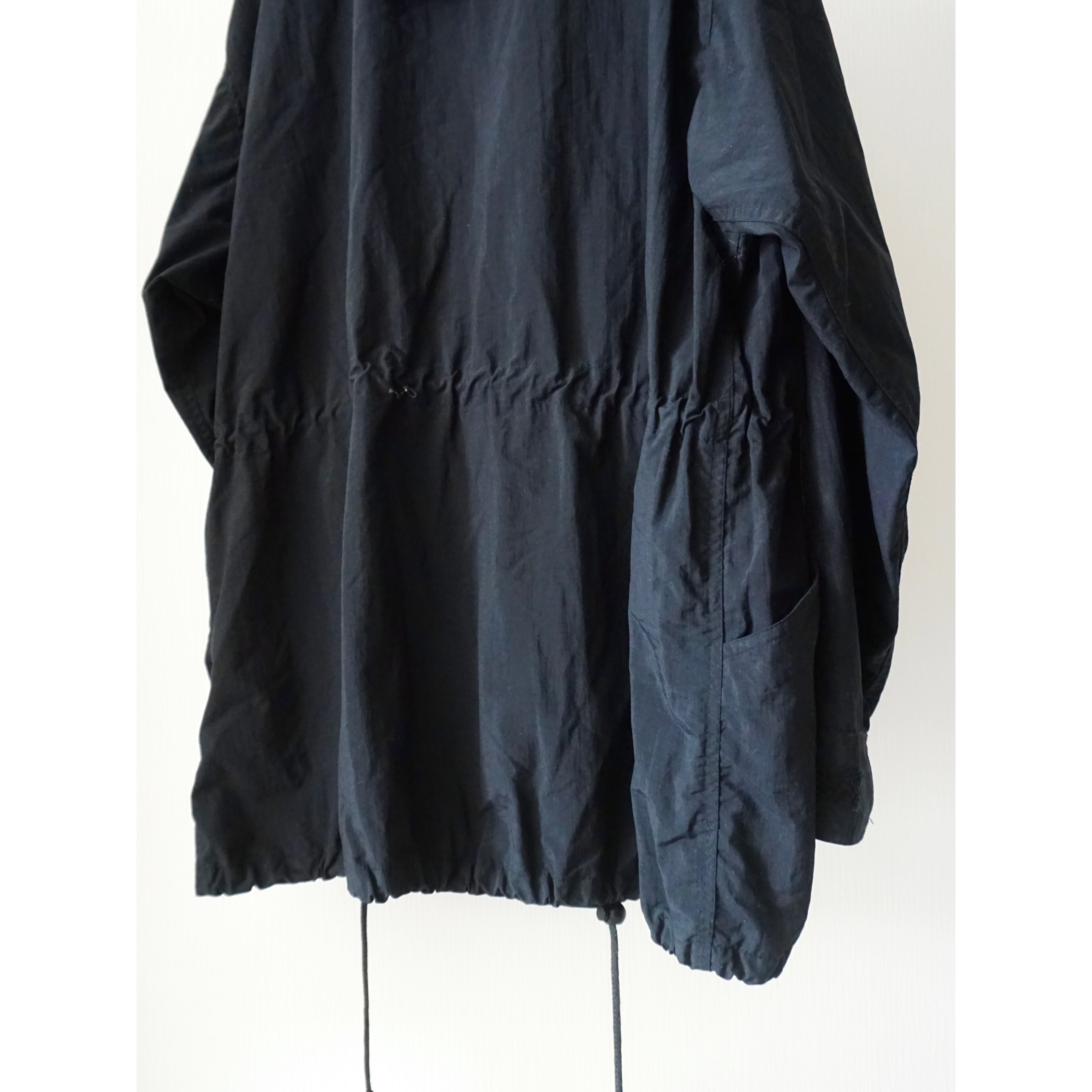 デイリーに着易いハーフジップ仕様でガバッと被れるアノラックタイプ。フード、身頃、裾に付くドローコード、フロントジップポケットとハンドポケット、袖口はマジックテープで調節可能なパーフェクトなディテール◎