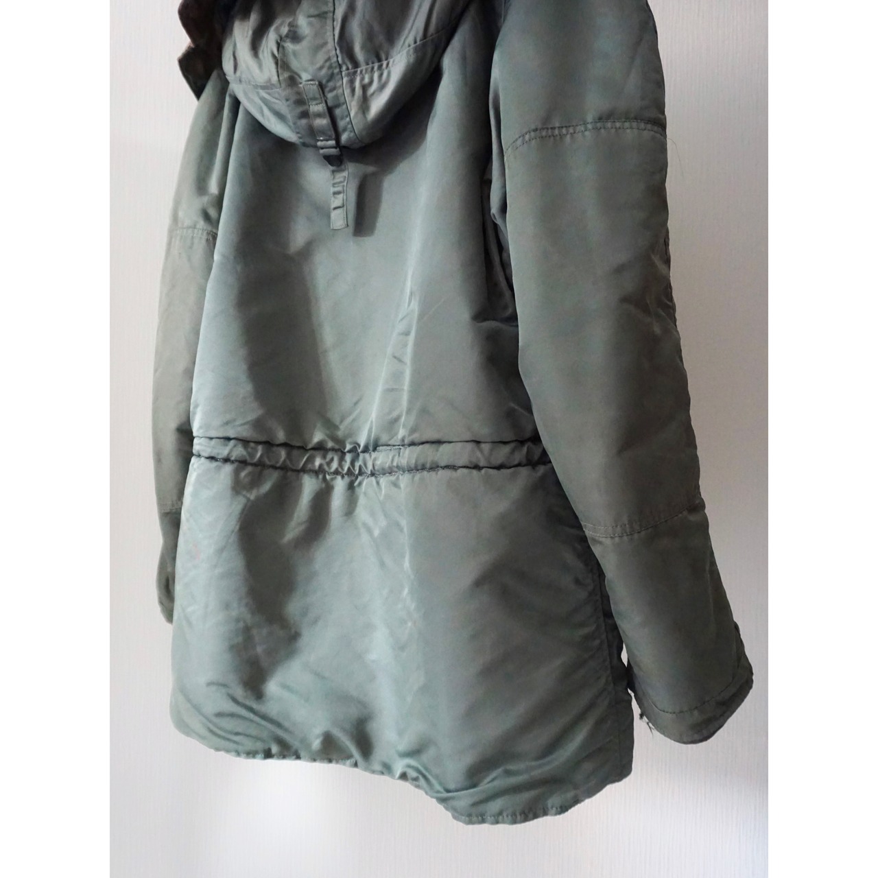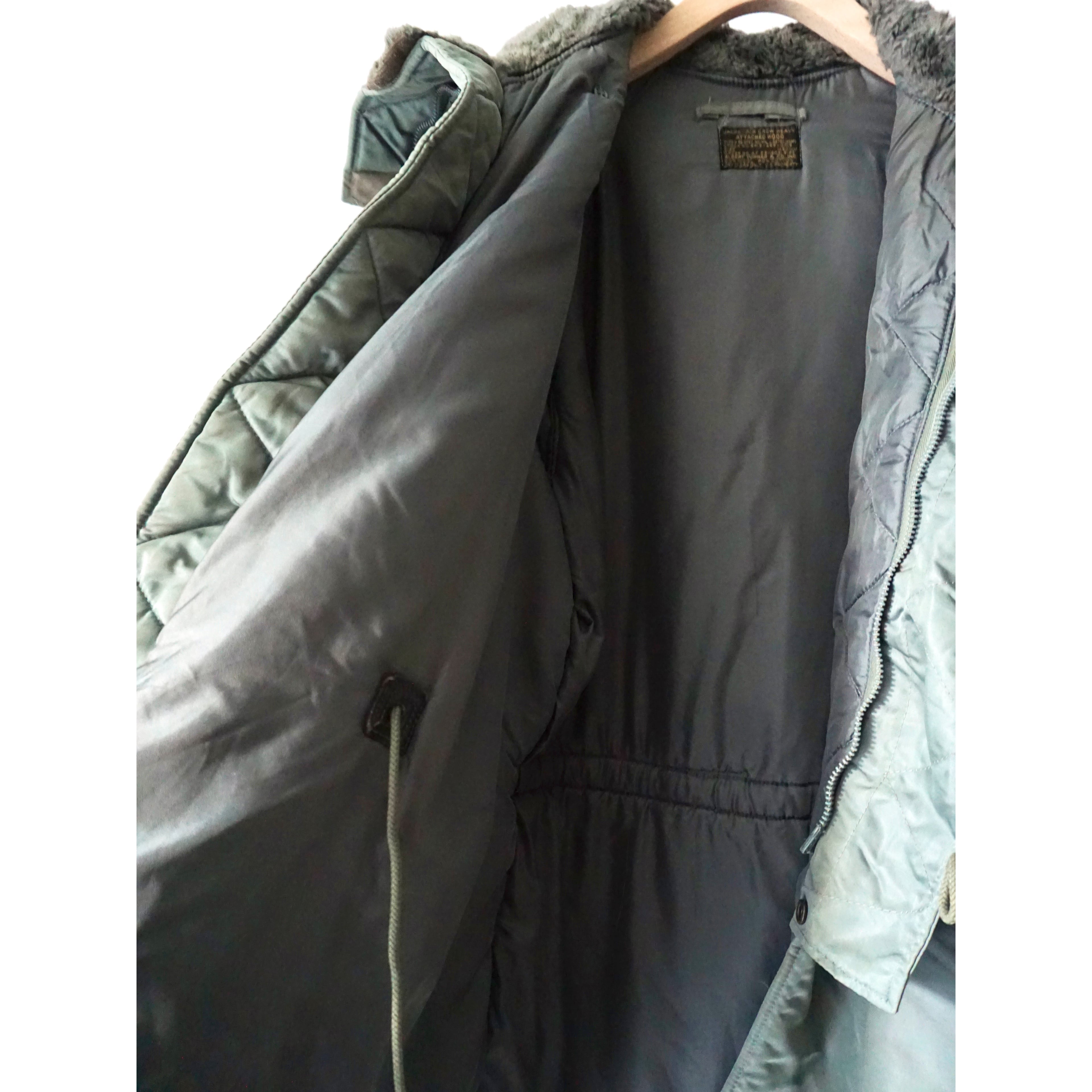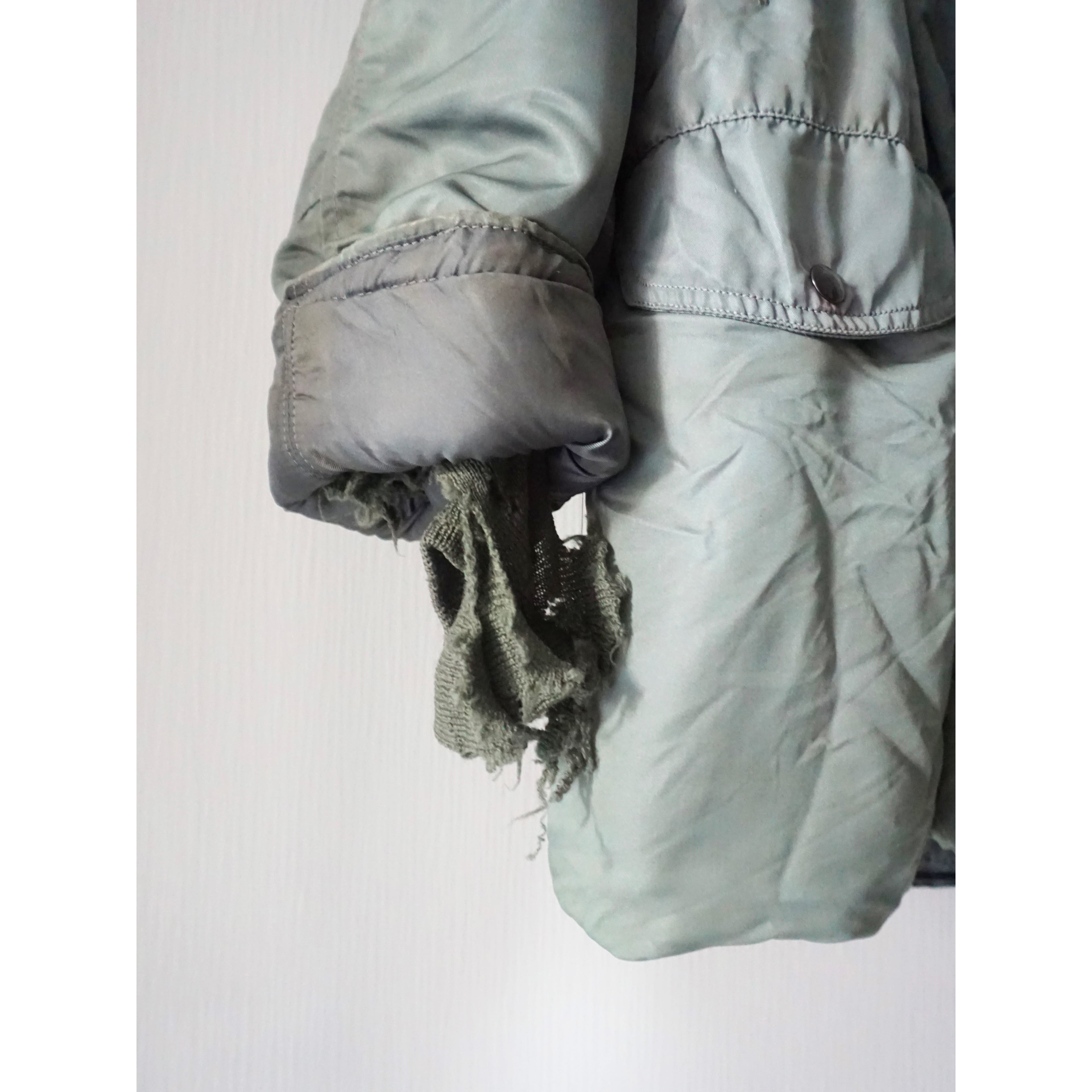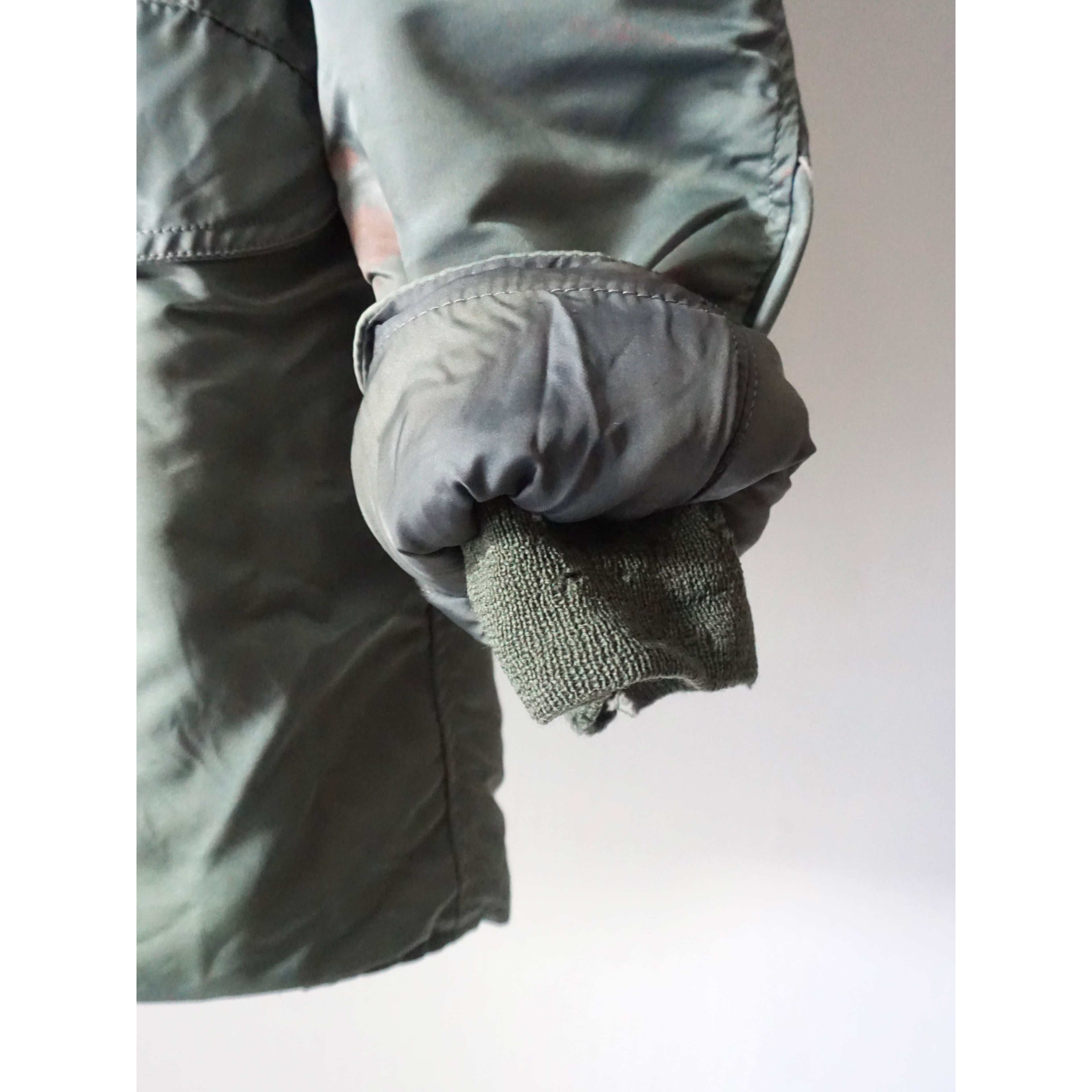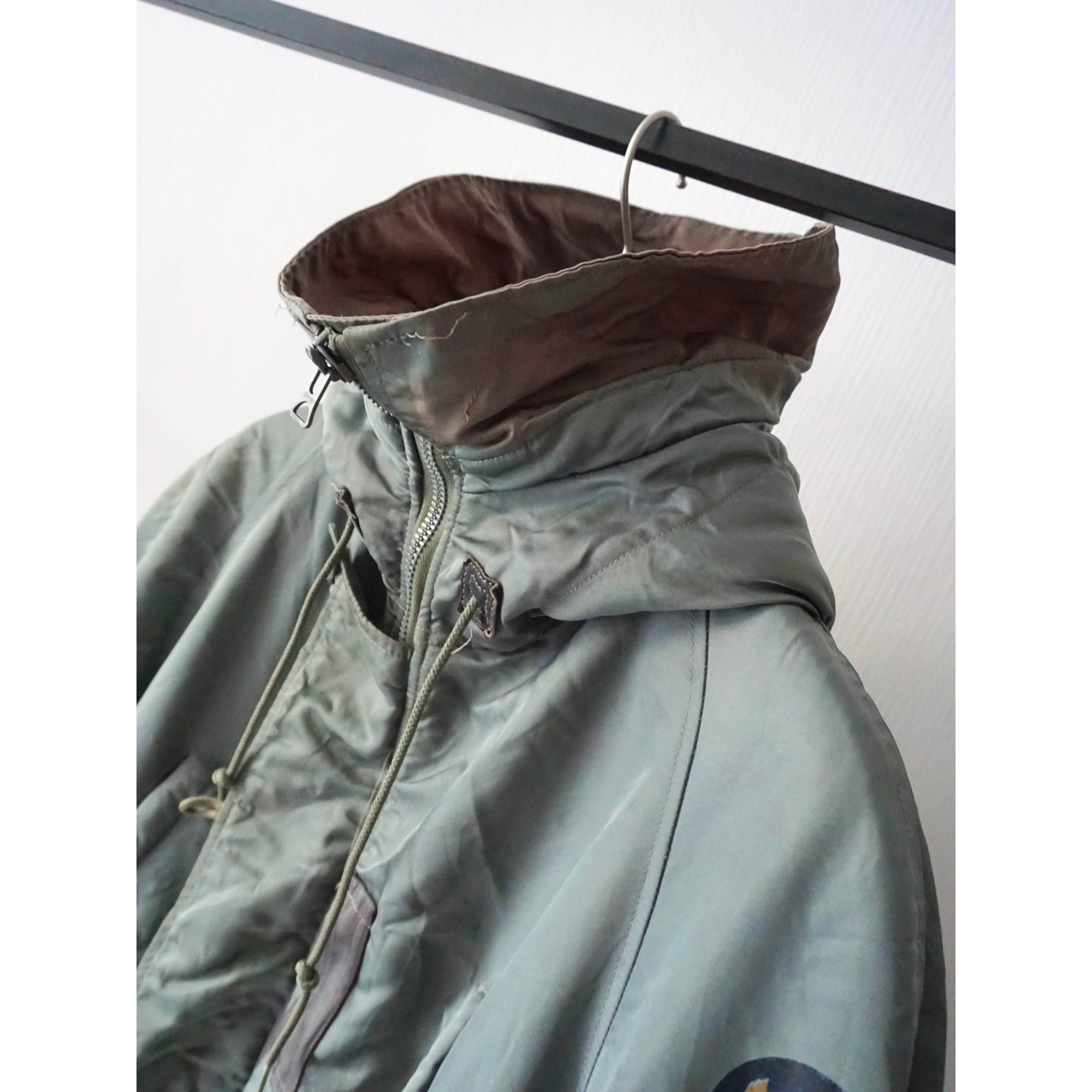 ヴィンテージミリタリー製品特有のコヨーテファー欠損、フロント第2ボタン〜第4ボタン欠損、袖リブのダメージ、フェードによる変色跡、所々に微々な薄汚れ、小傷、全体的に使用感がございます。(画像参照よろしくお願いします。)どれも製品特有の風合いとしてご理解ある方のみご注文お願いいたします。