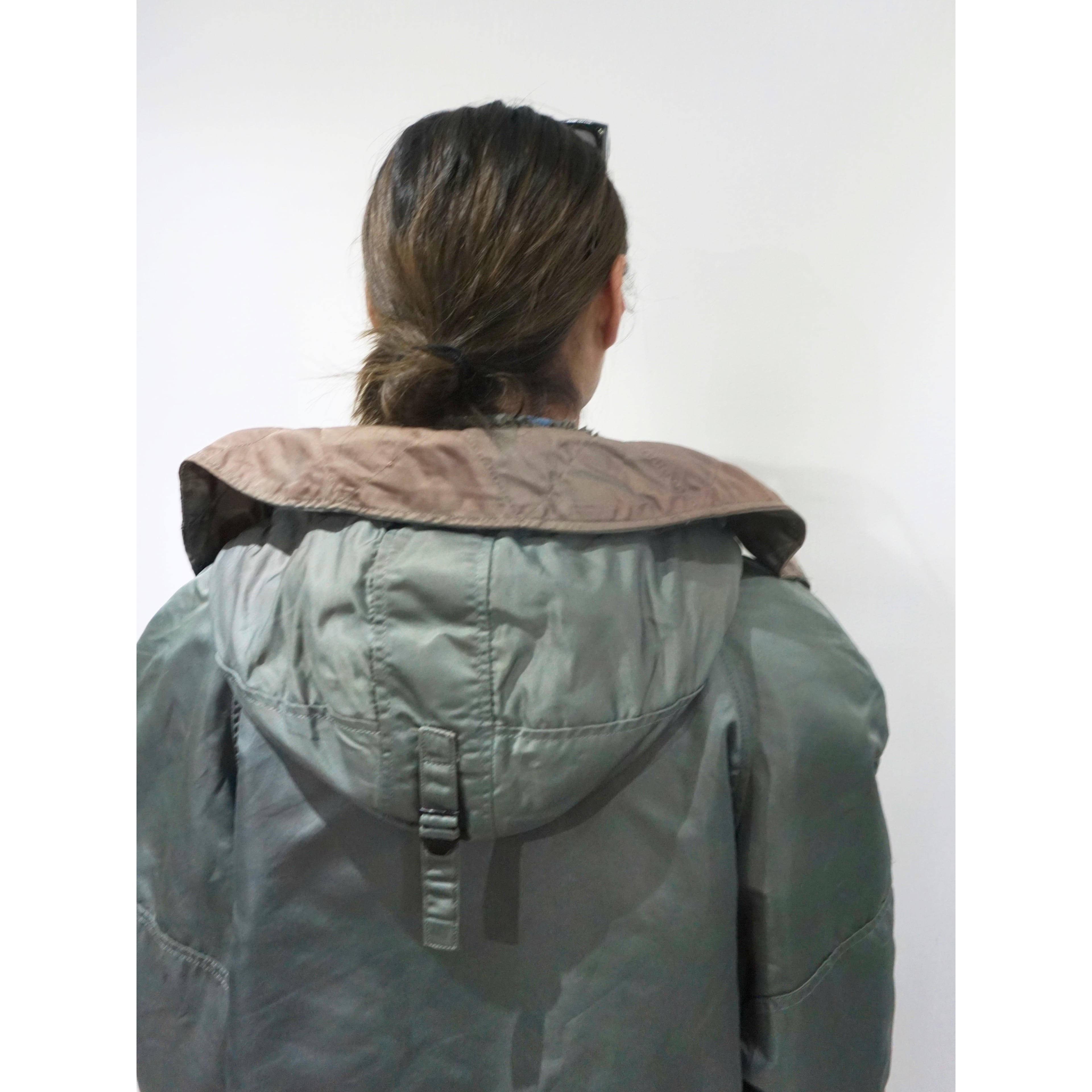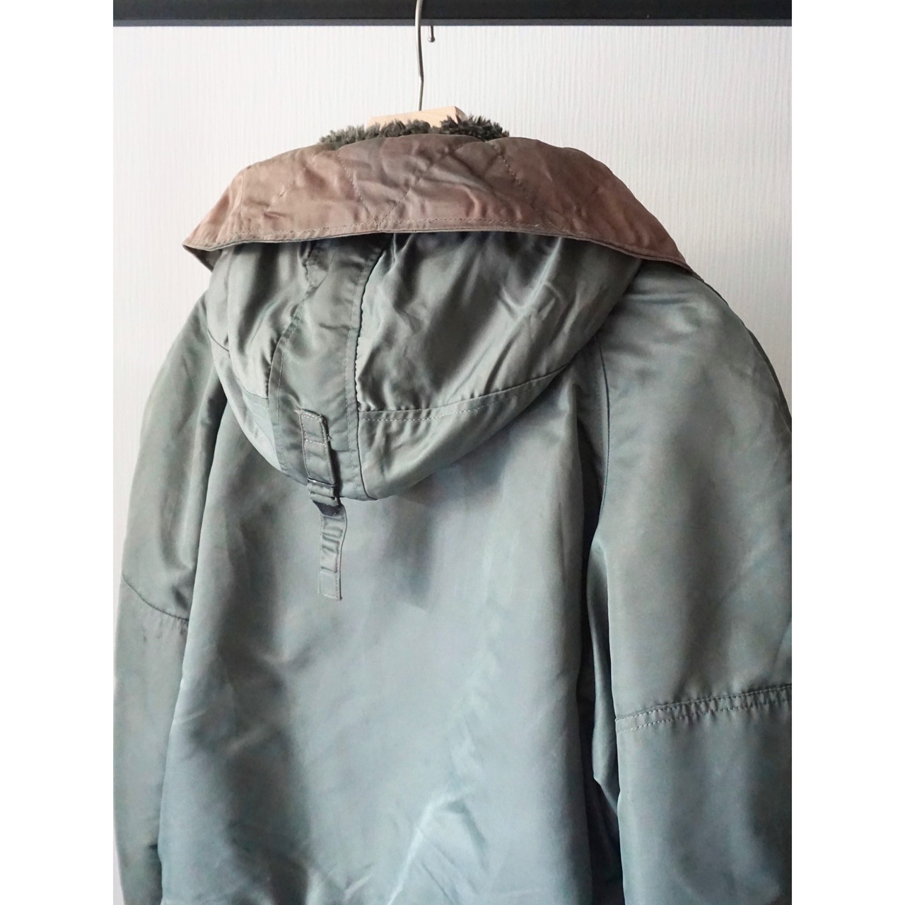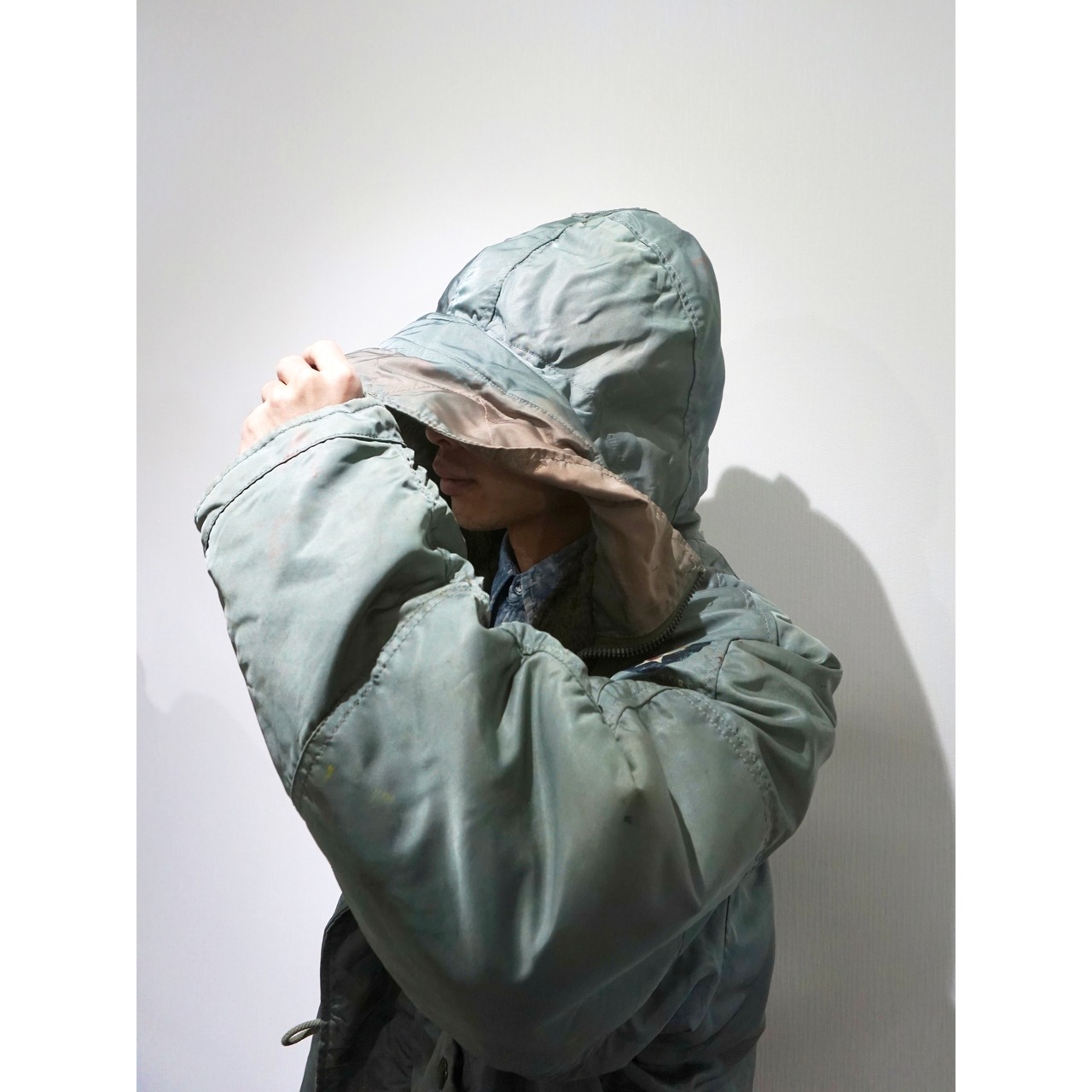 フード部分のセージグリーンが褪色した感じ等も含め雰囲気重視な一着となります。
