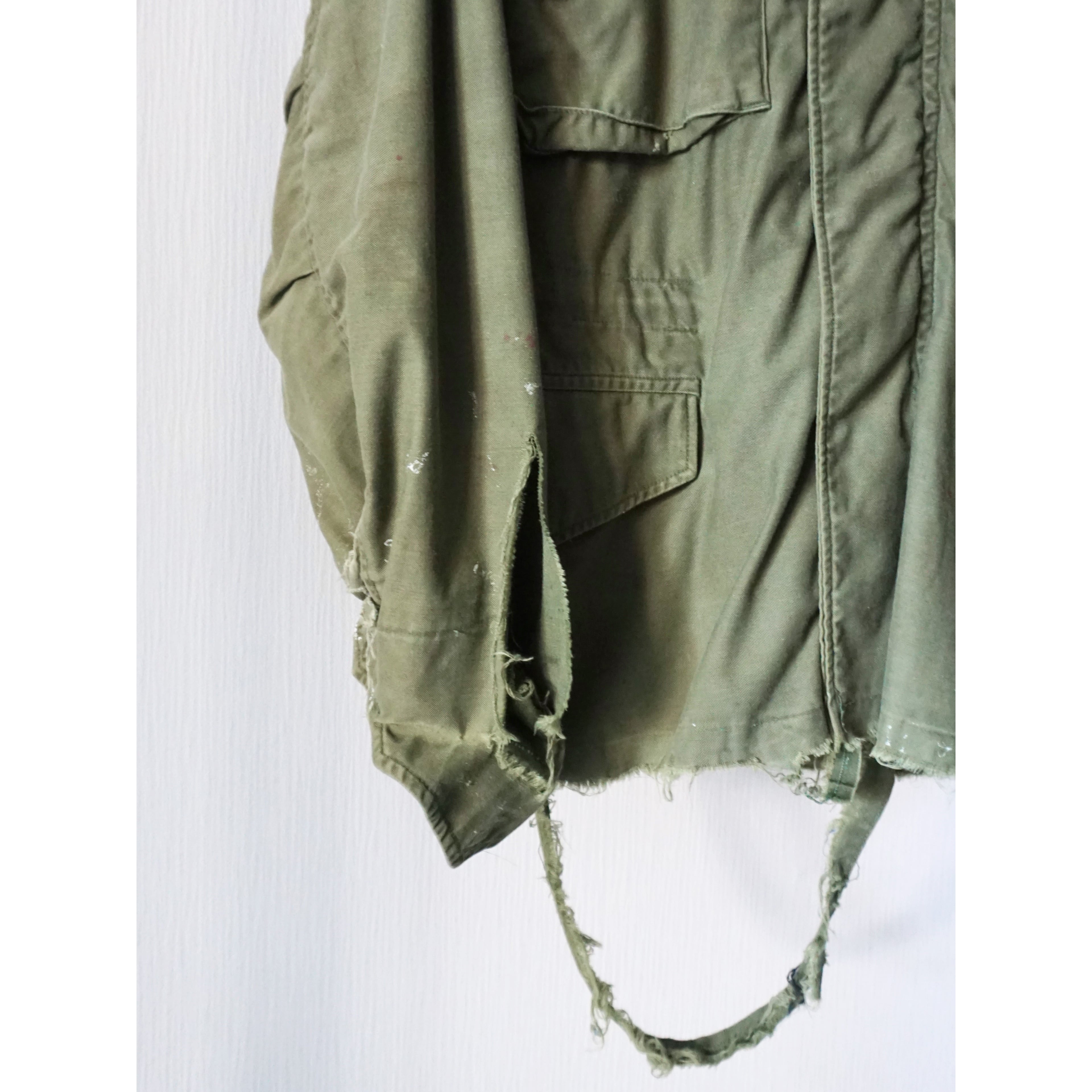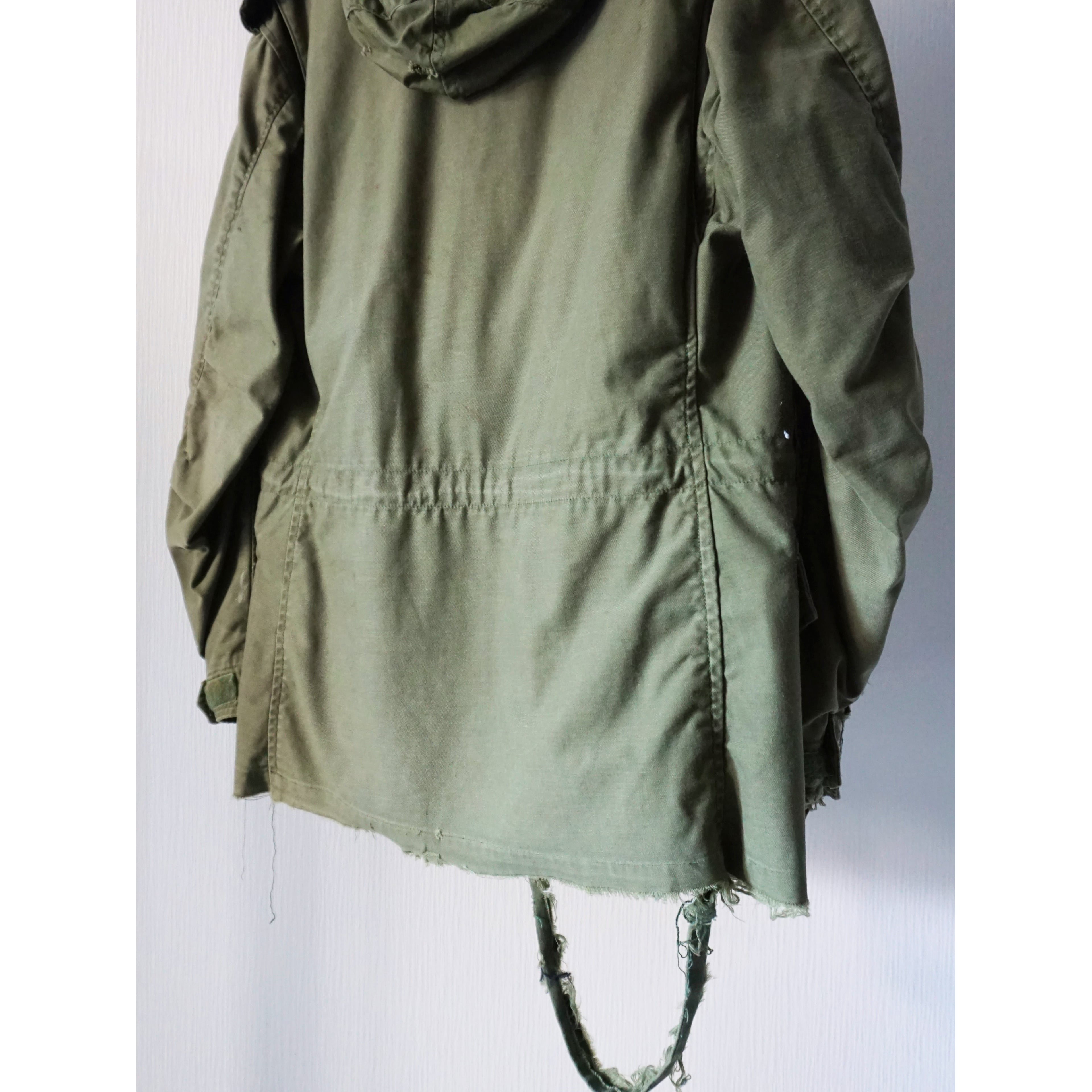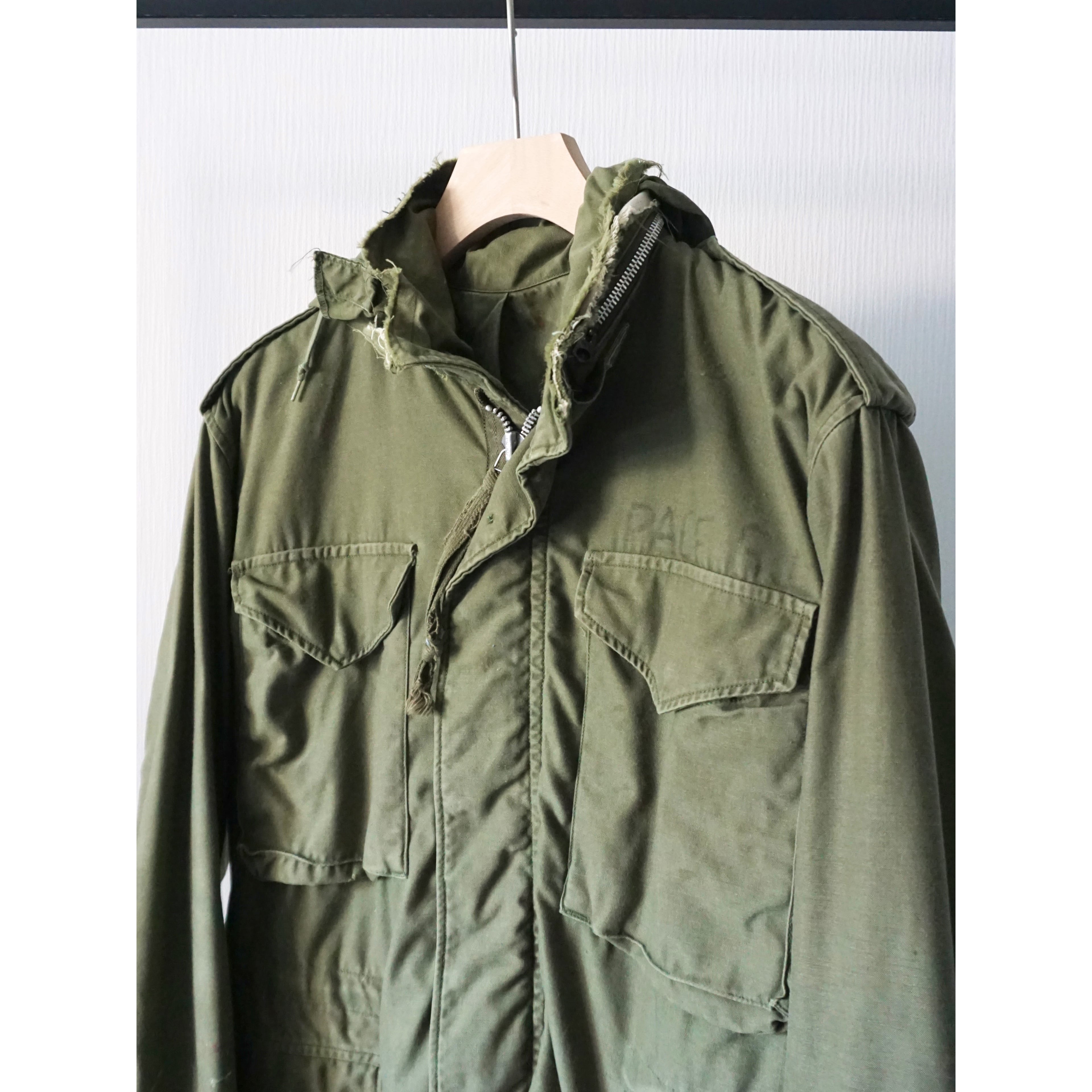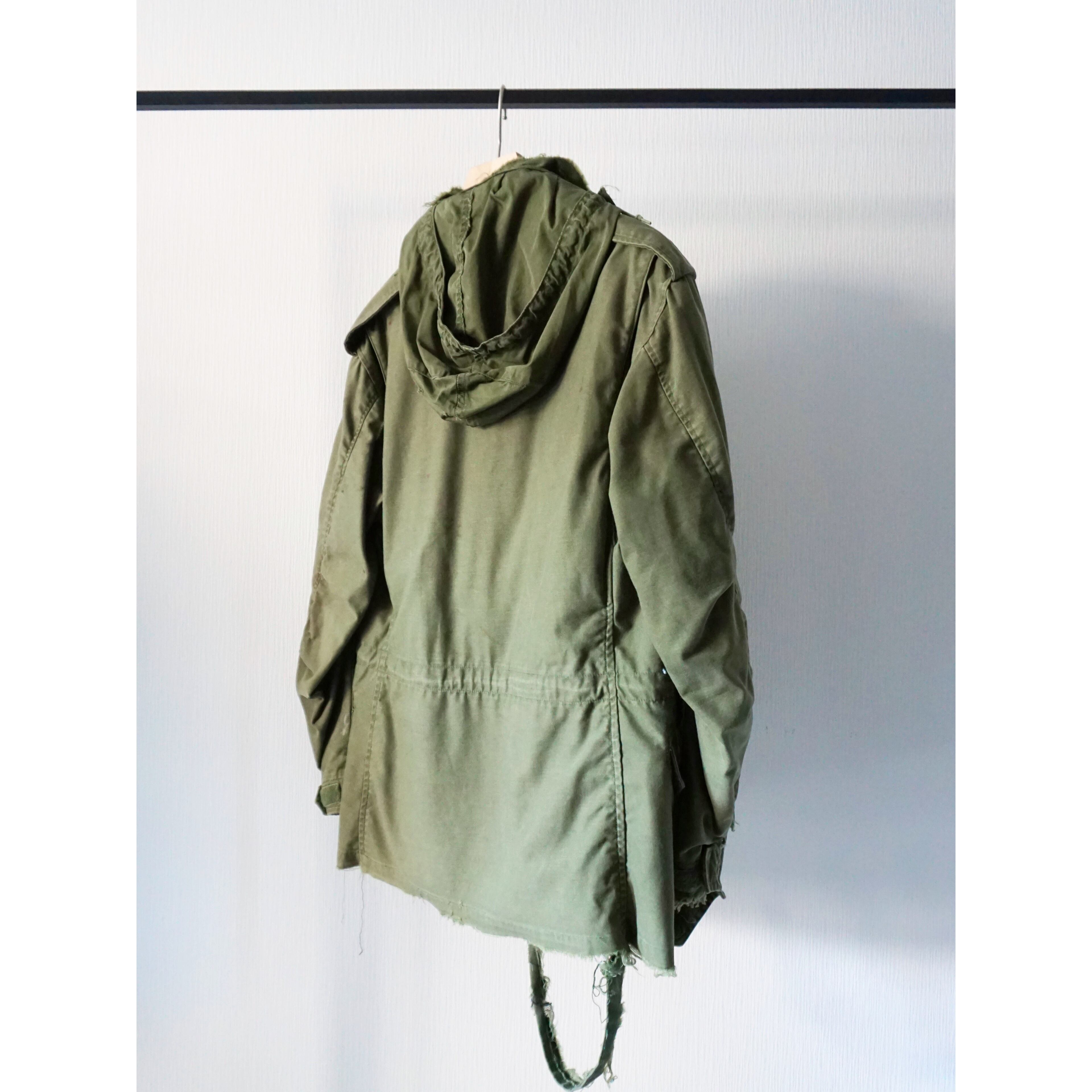 フードは収納不可能となります。ヴィンテージミリタリー製品特有の激しいダメージ、破れ、所々にペンキ汚れ、全体的に使用感がございます。どれも製品特有の風合いとしてご理解ある方のみご注文お願いいたします。