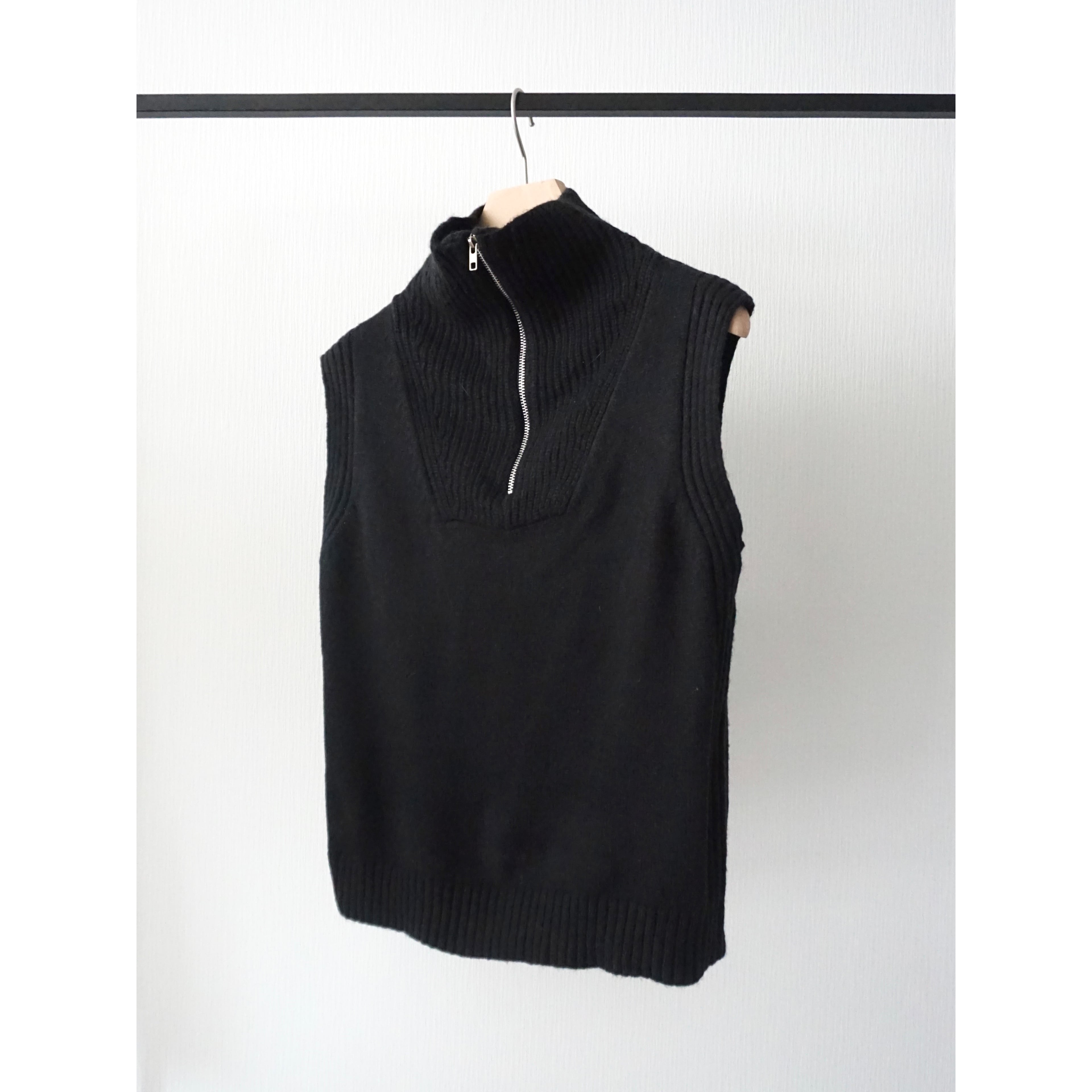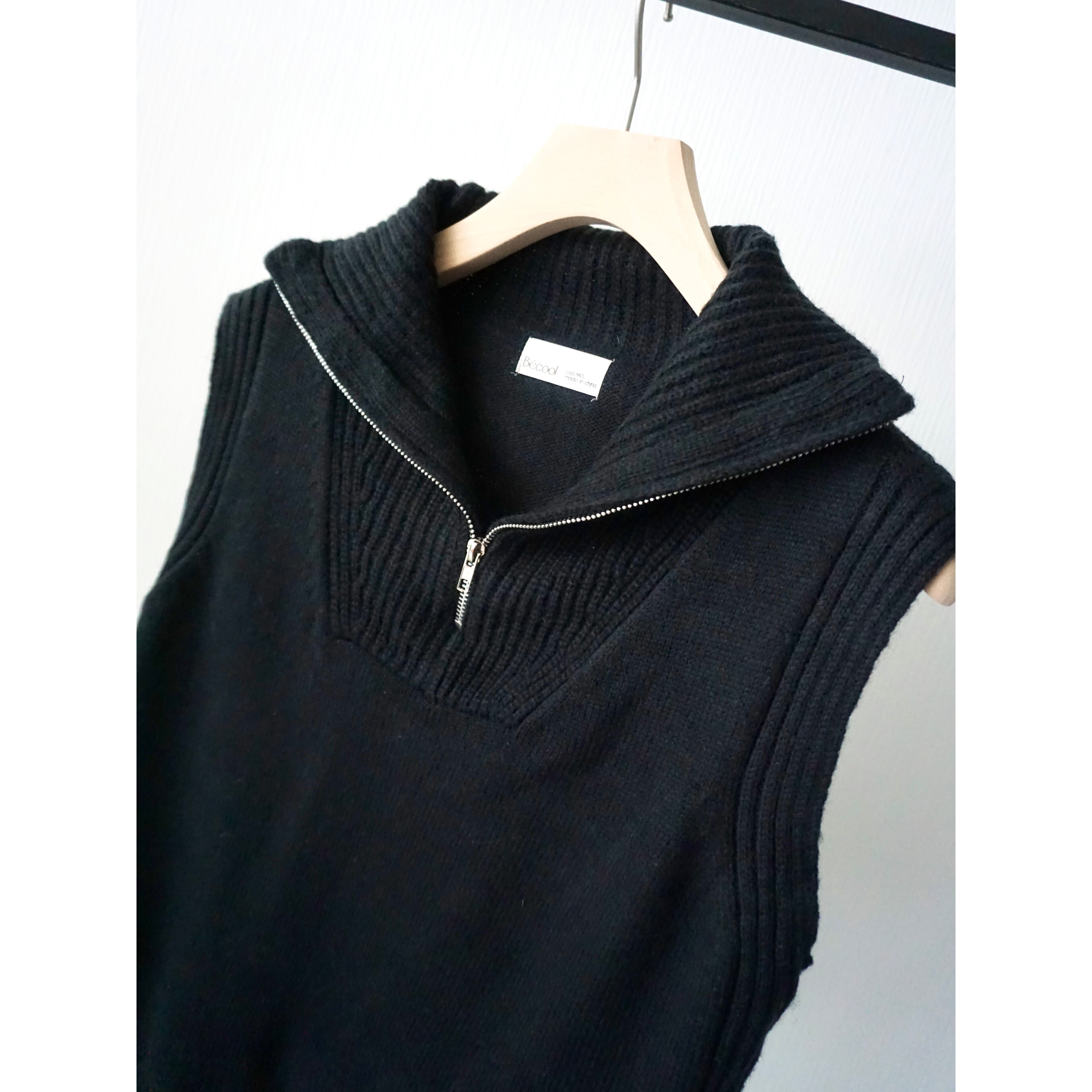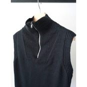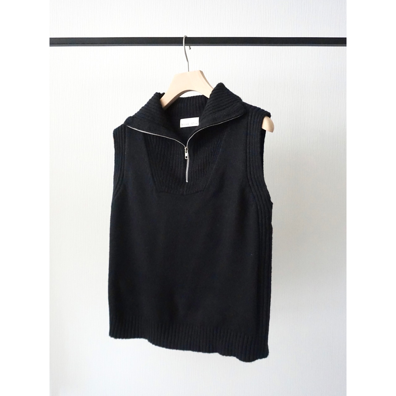 ふんわり柔らかい快適なニットファブリックにフロントは程良くネックも高めなハーフジップ仕様。