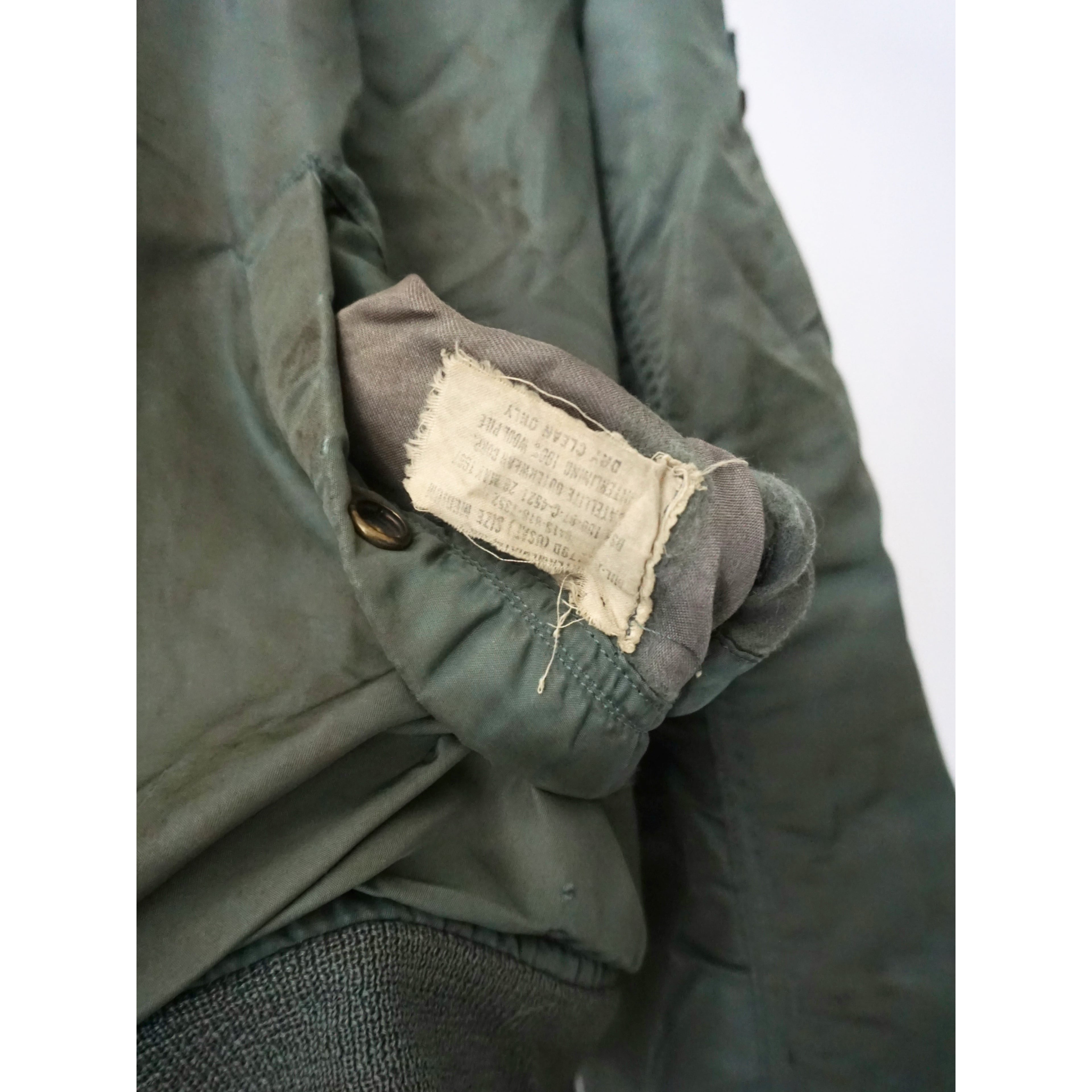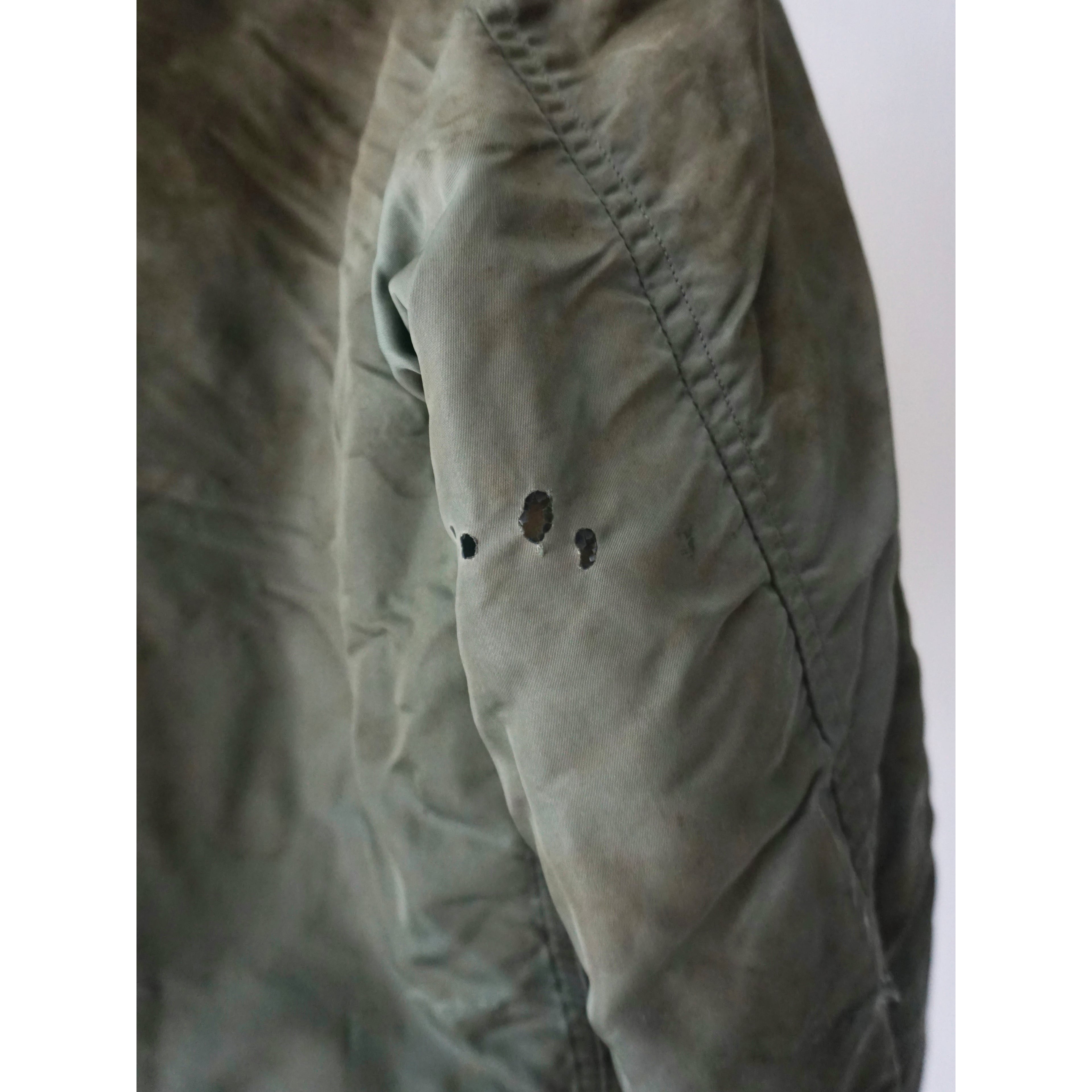 ヴィンテージミリタリー製品特有のダメージ、汚れ、焼け跡、全体的に使用感等ございます。どれも製品特有の風合いとしてご理解ある方のみご注文お願いいたします。