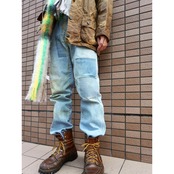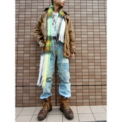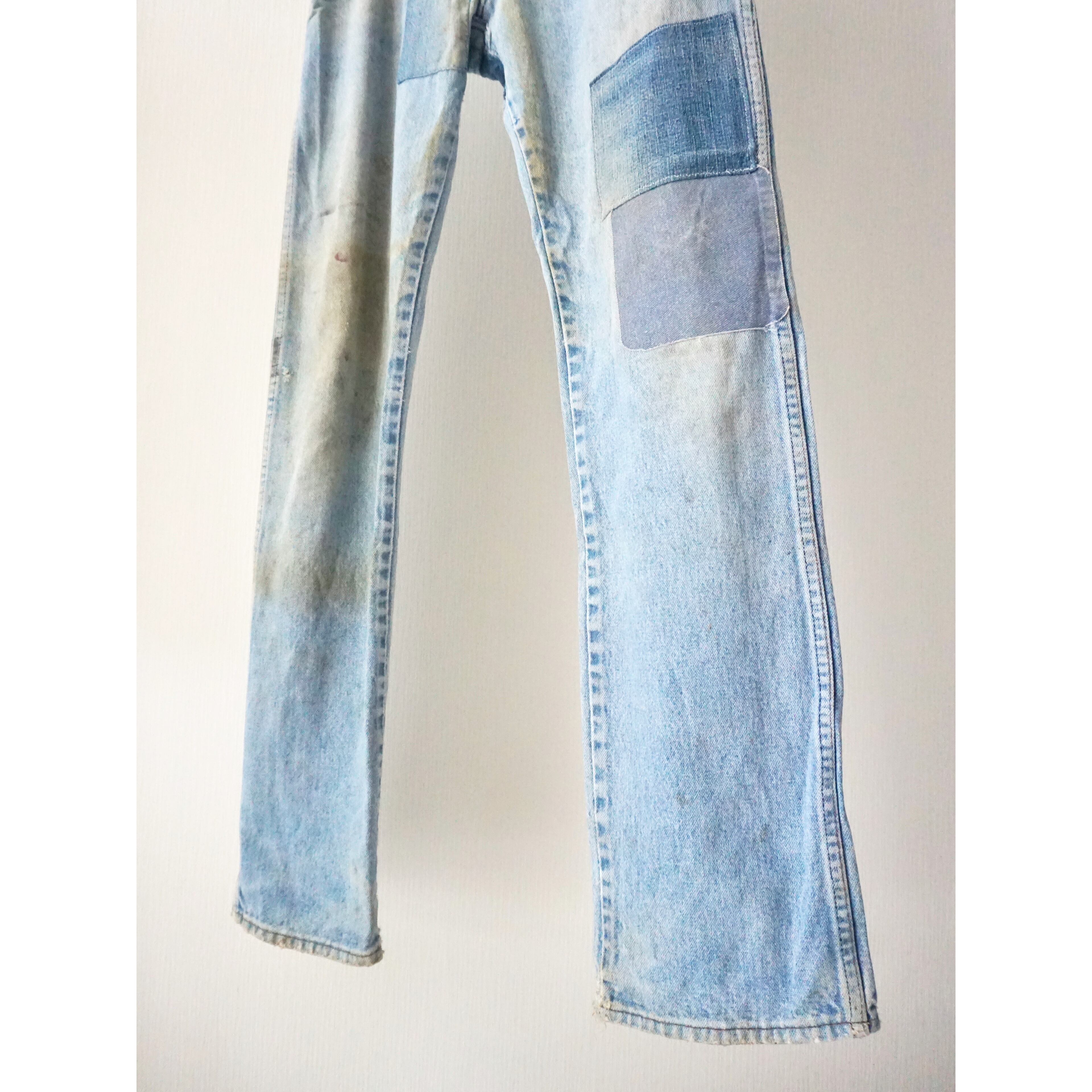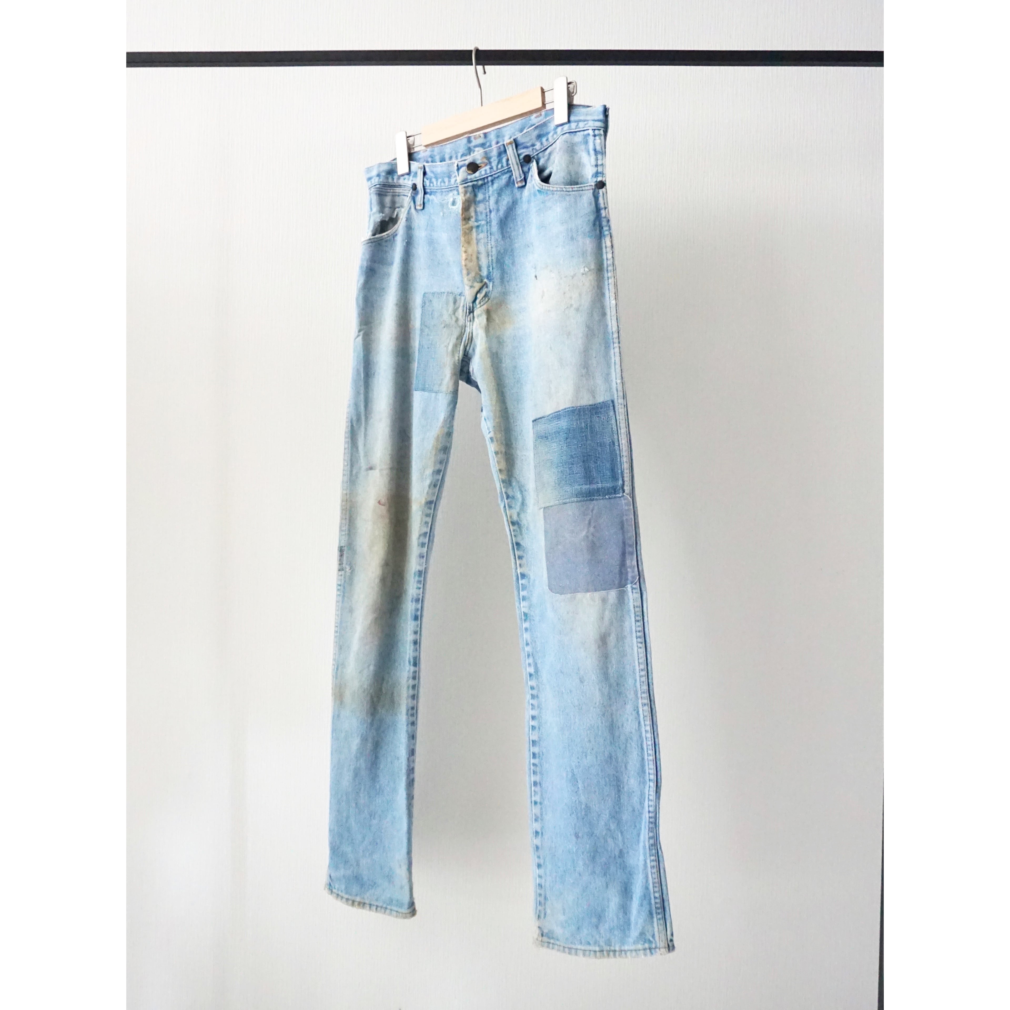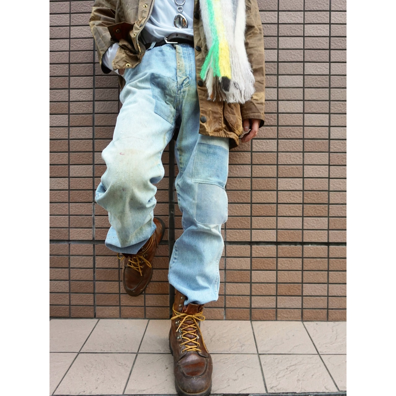 此方はヴィンテージならではな雰囲気の良い色落ち、ダメージや汚れ等の程良いBoro感、前所有者による各所の雑な愛くるしいリペア跡、リアルなアメリカの風景感じる個体。