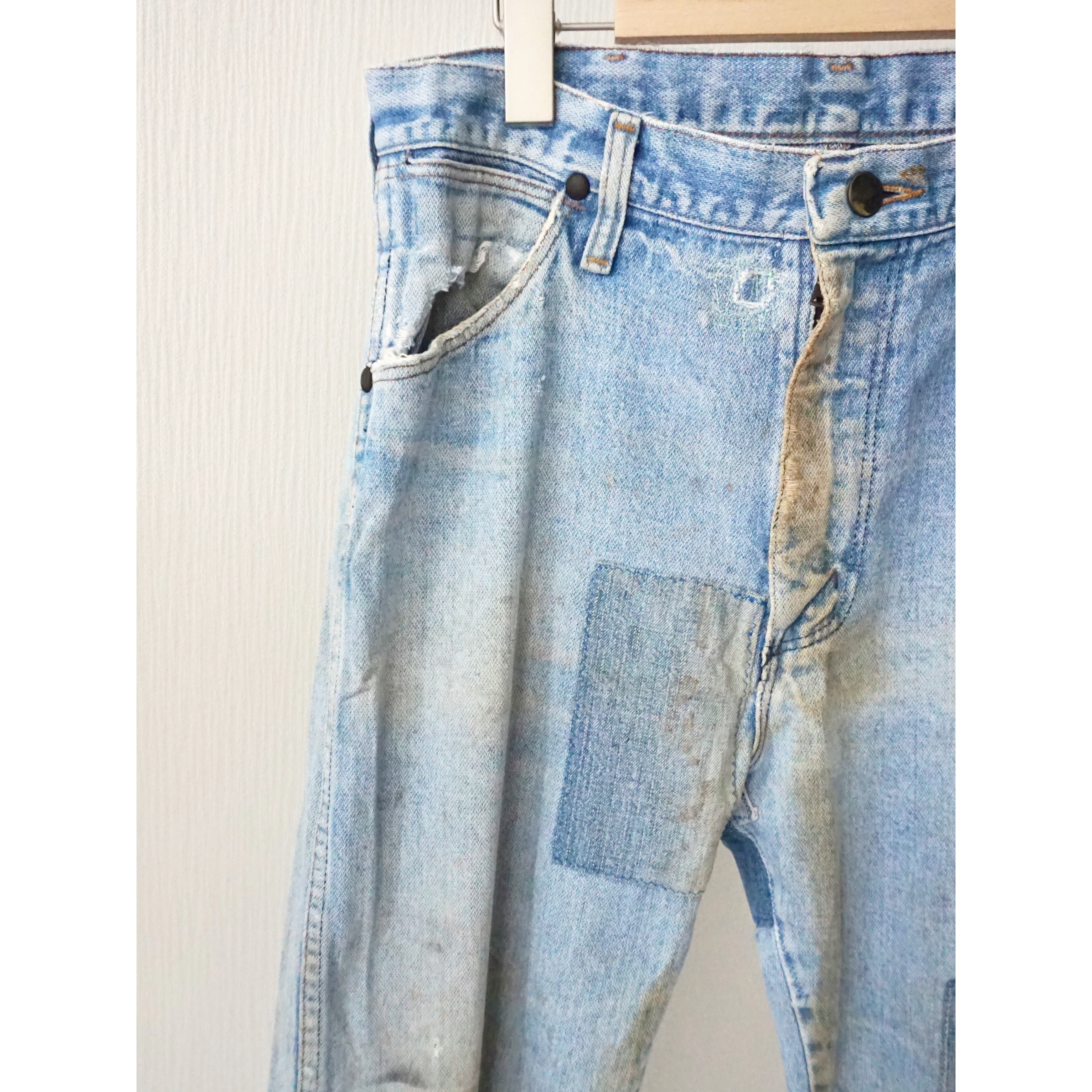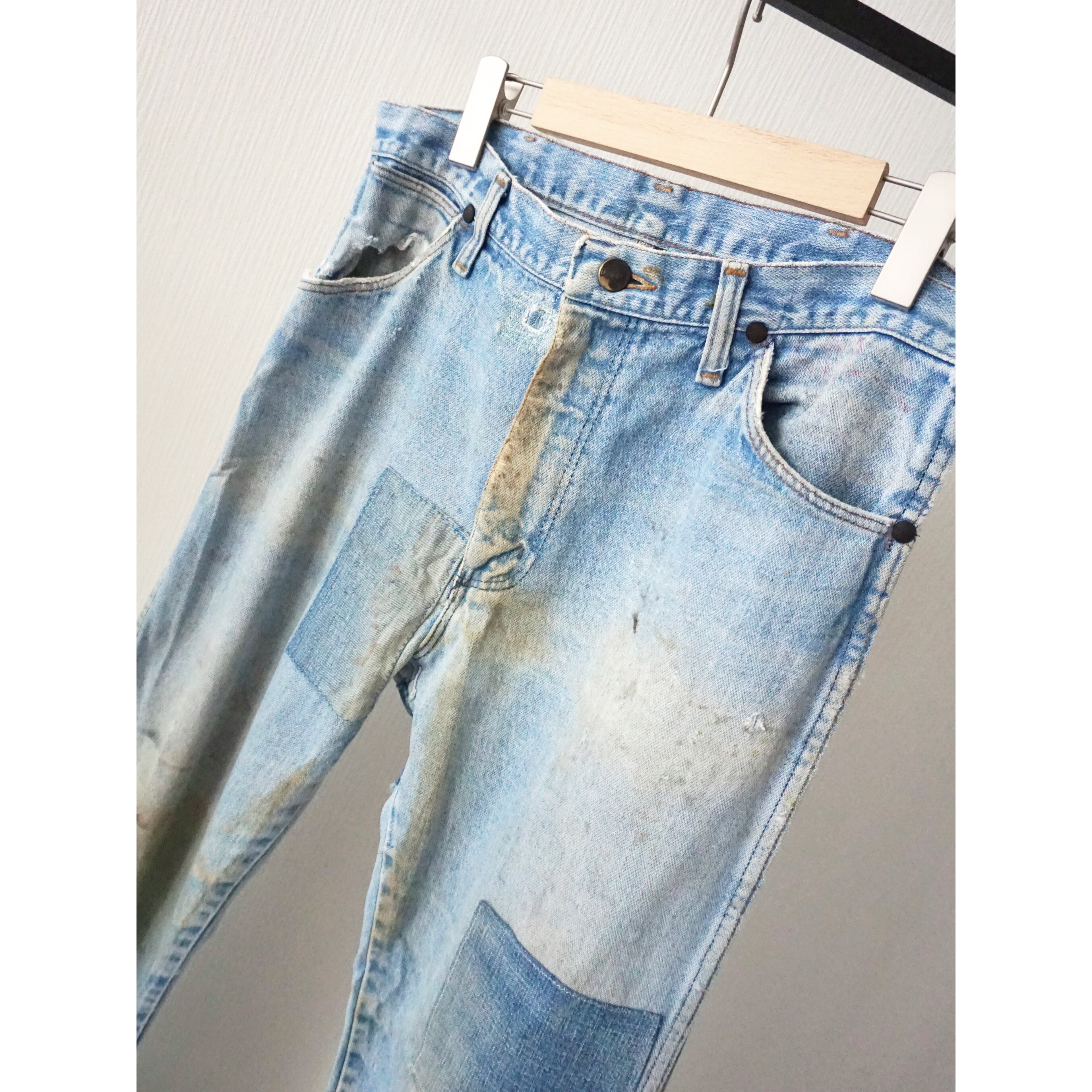 1980s vintage "Wrangler" 13MWZ good repaired denim pants made in USA