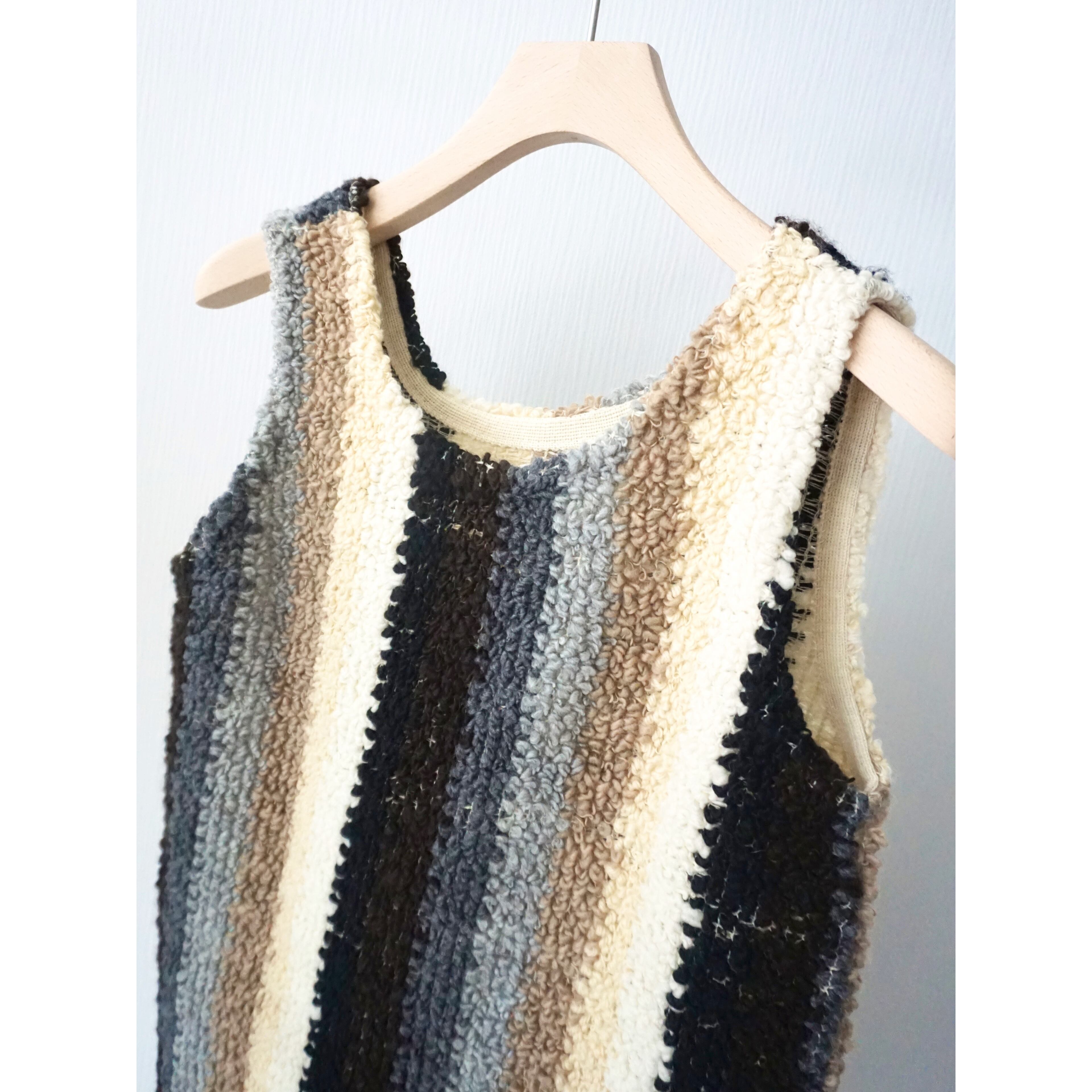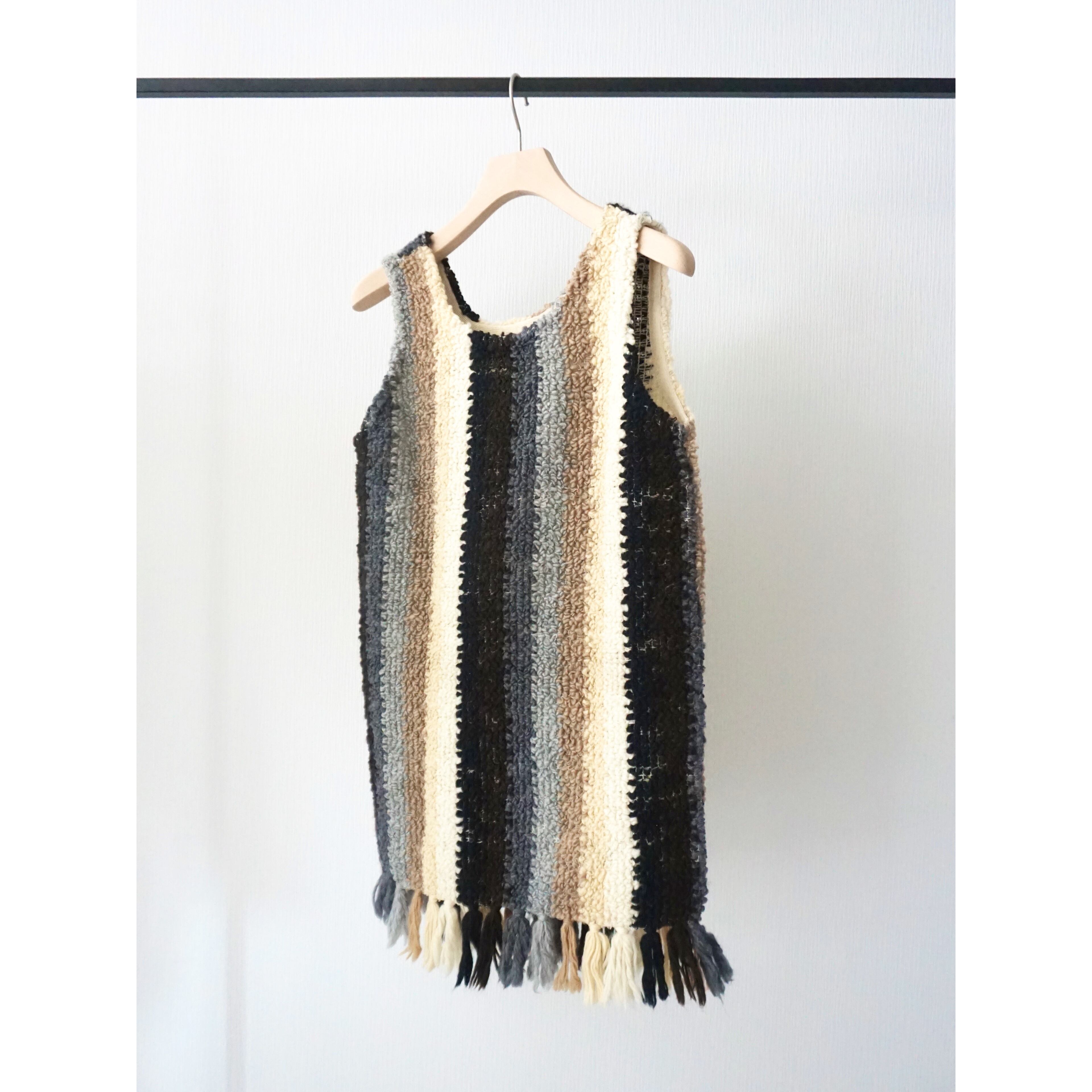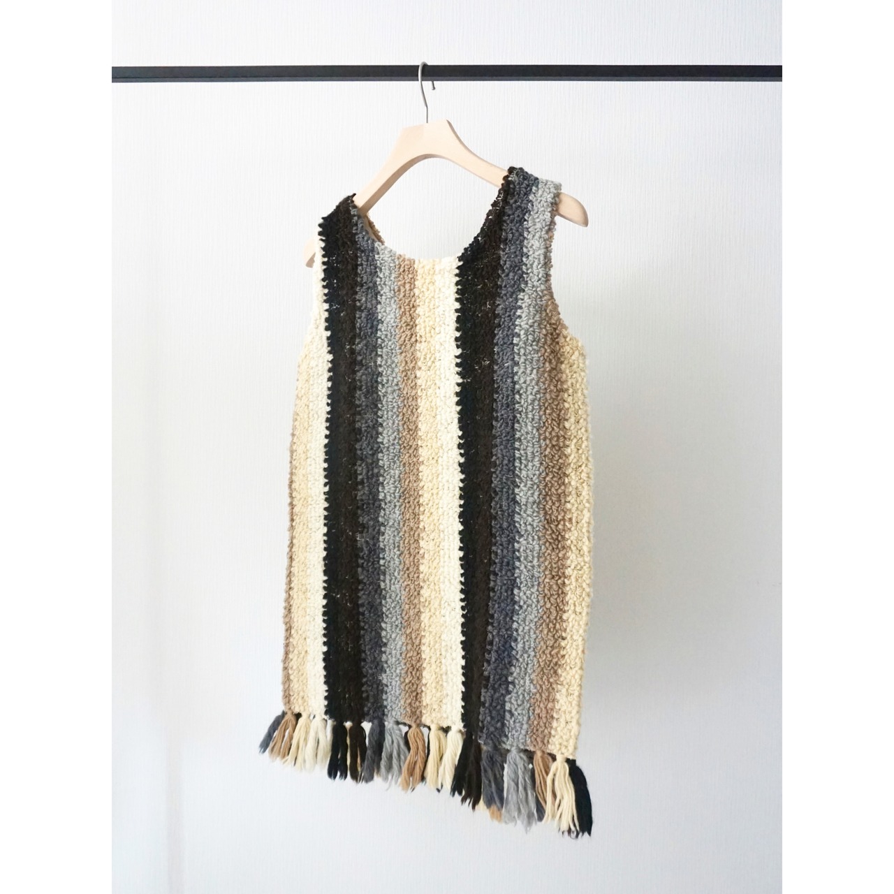 裾にフリンジがデザインされたノースリーブのニットトップスとなります☺︎