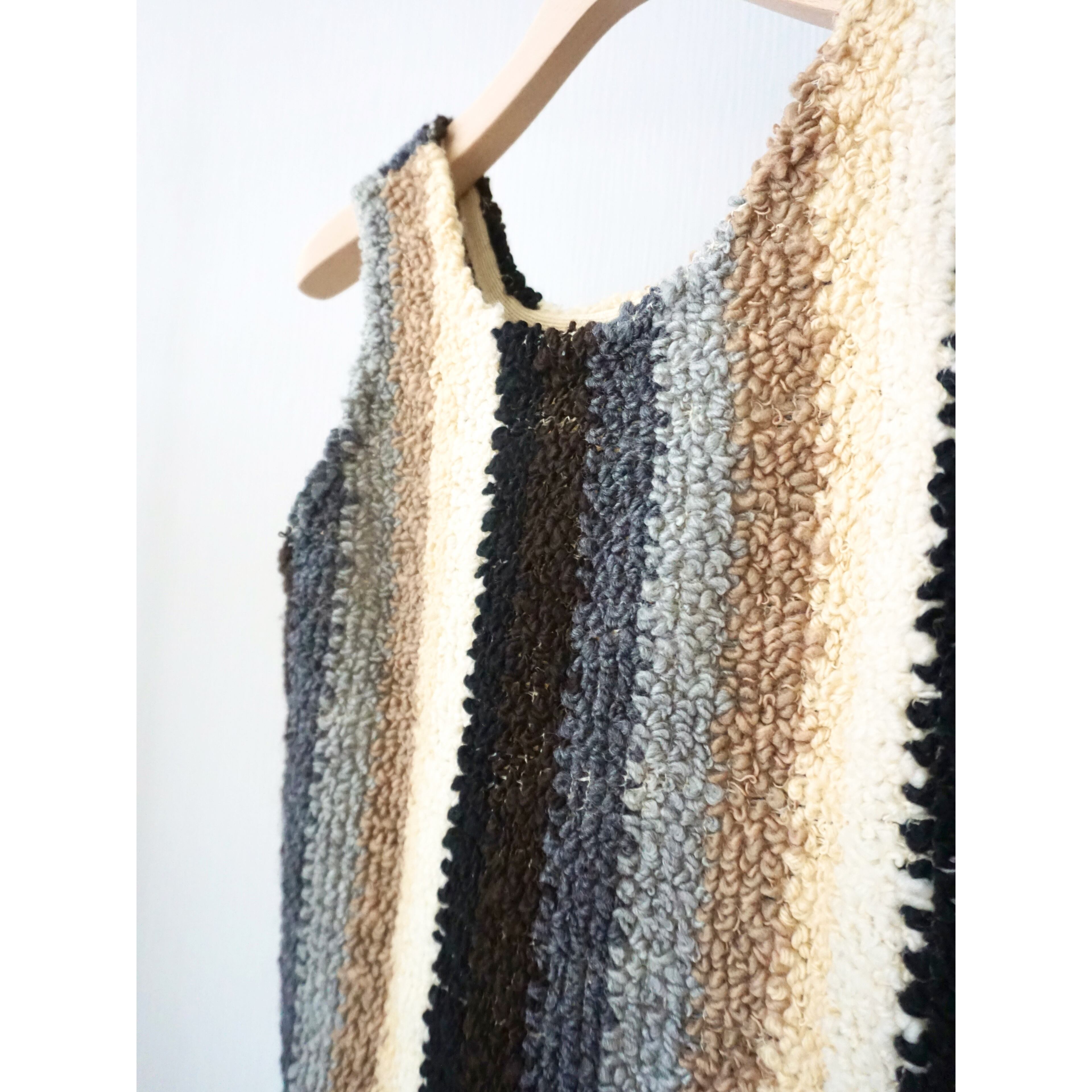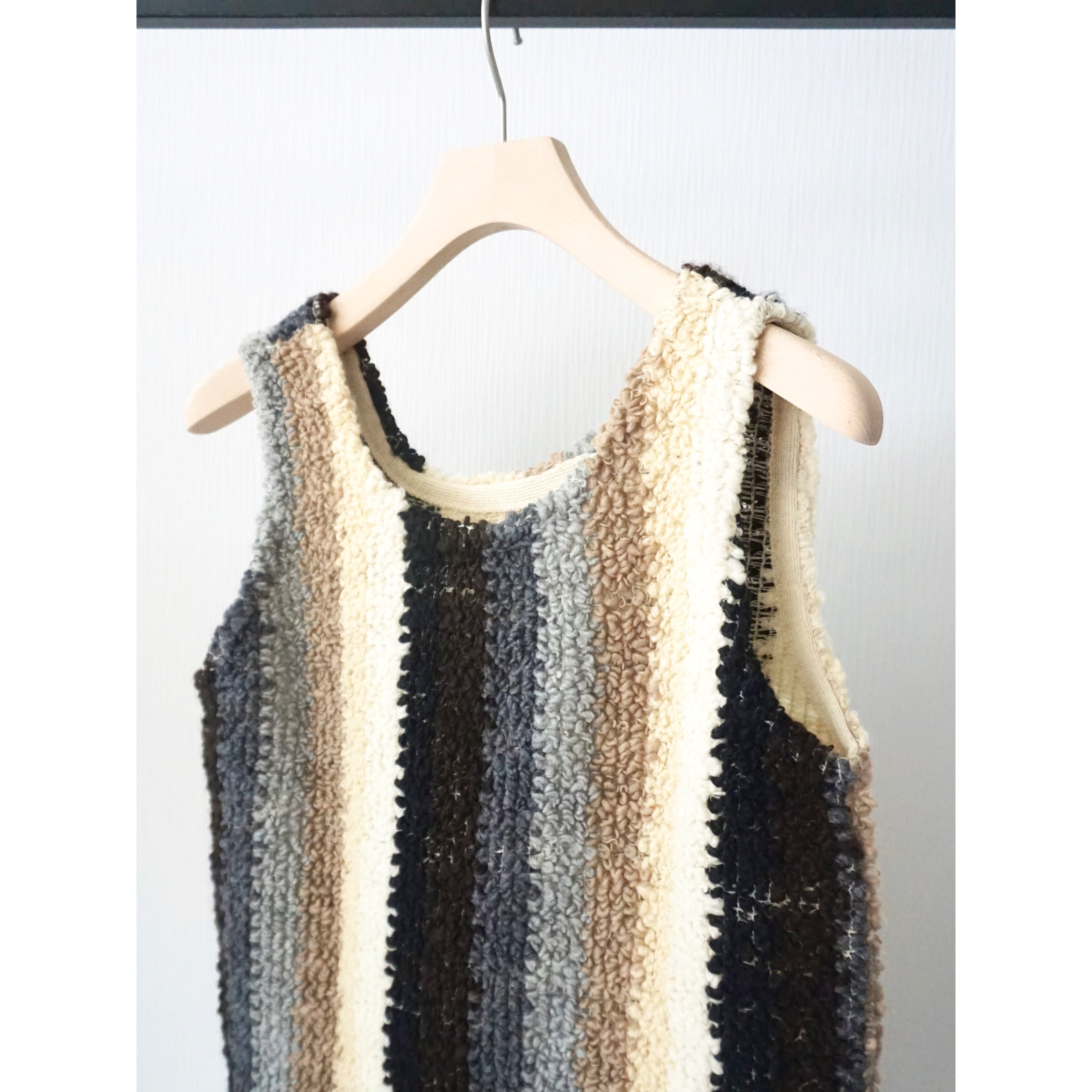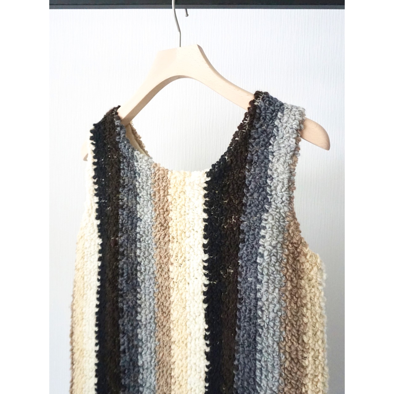 裾にフリンジがデザインされたノースリーブのニットトップスとなります☺︎