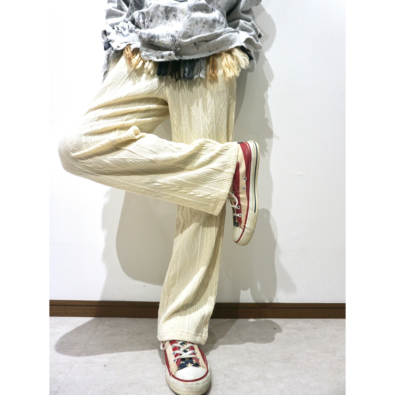 ウエスト最大 90cm (ウエスト紐付きほぼフリーサイズ) / 股下 73cm / 総丈 102cm / 裾幅 25cm