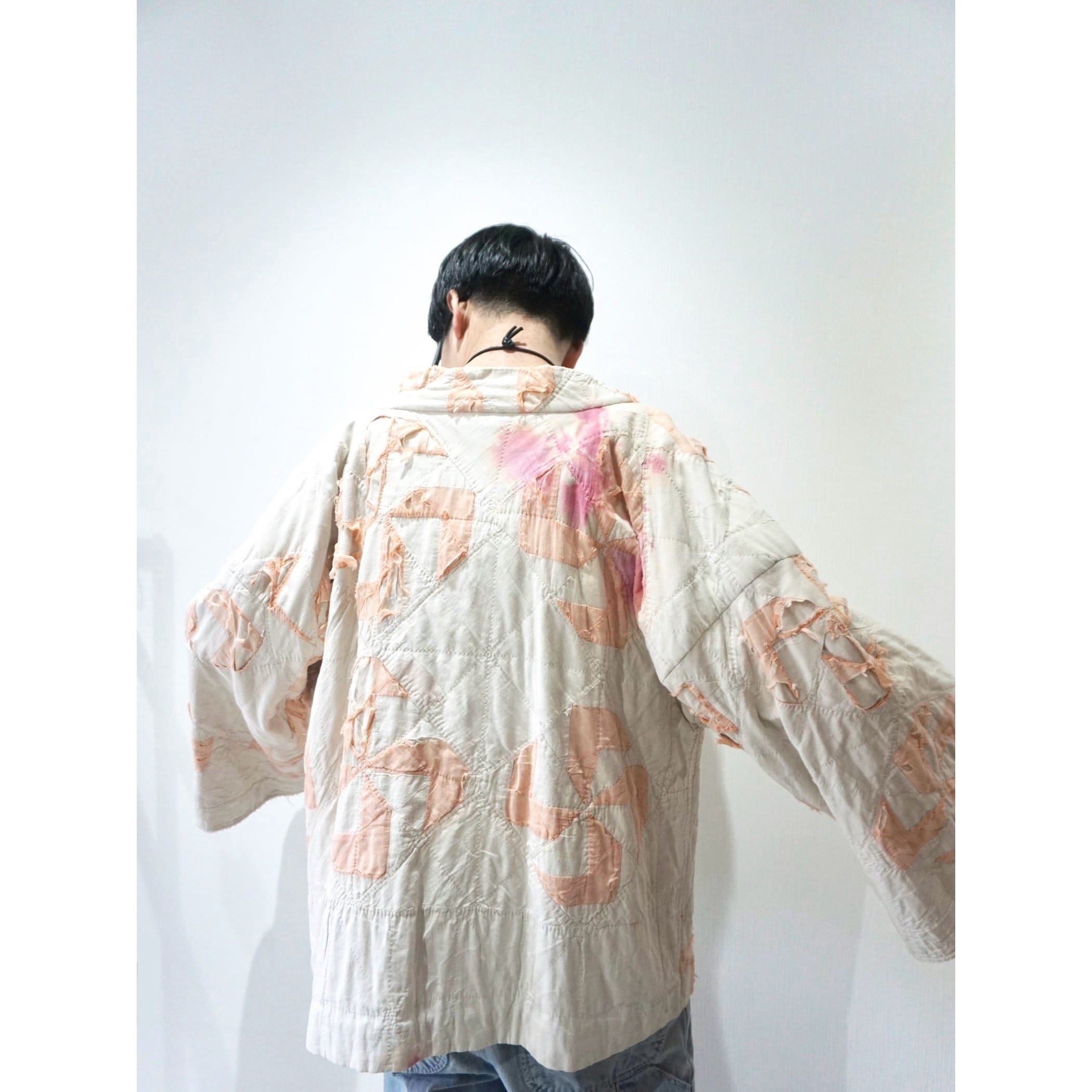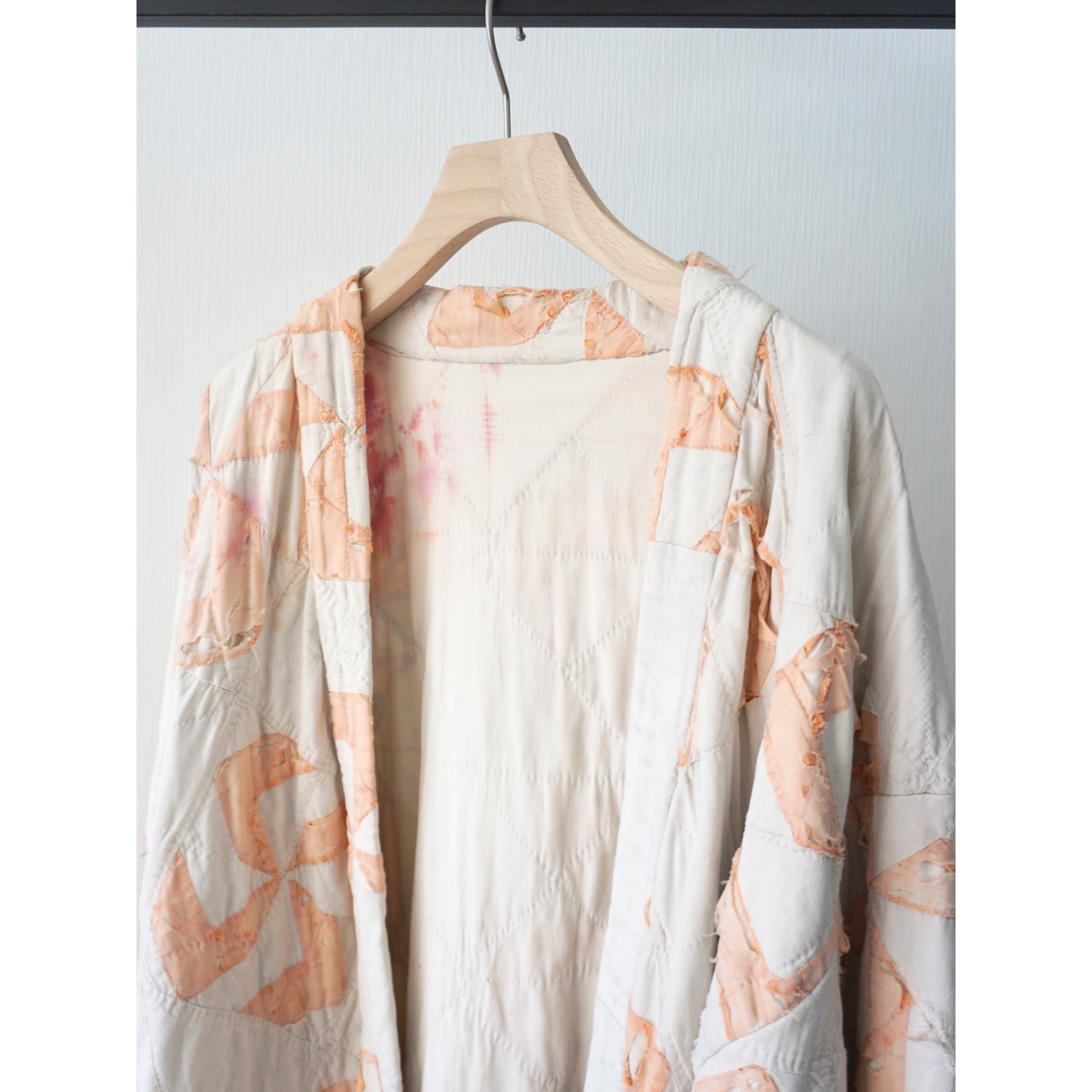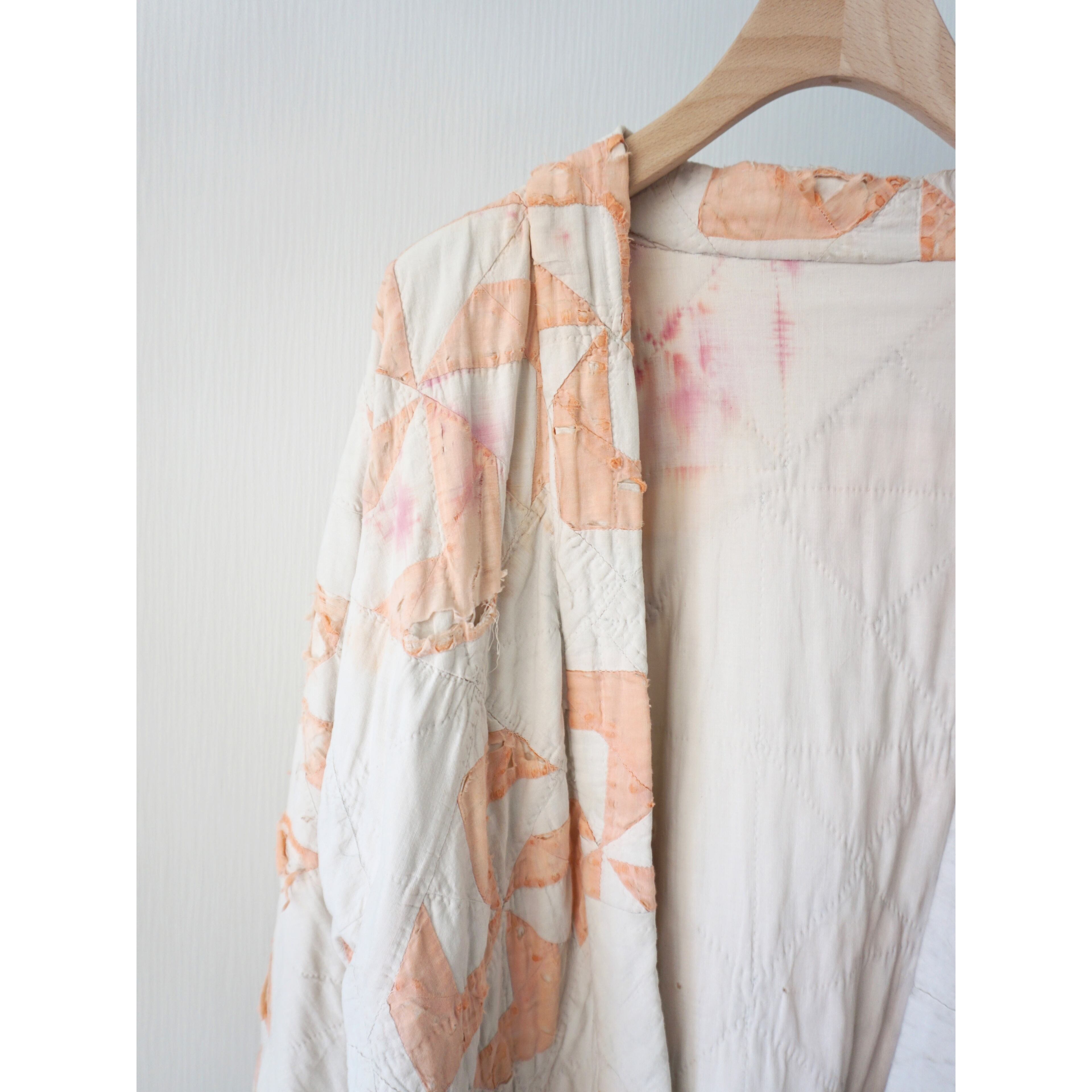 1930年代〜1940年代のアメリカのアンティークコットンキルトも用いてハンドメイドで作られた半纏となります。