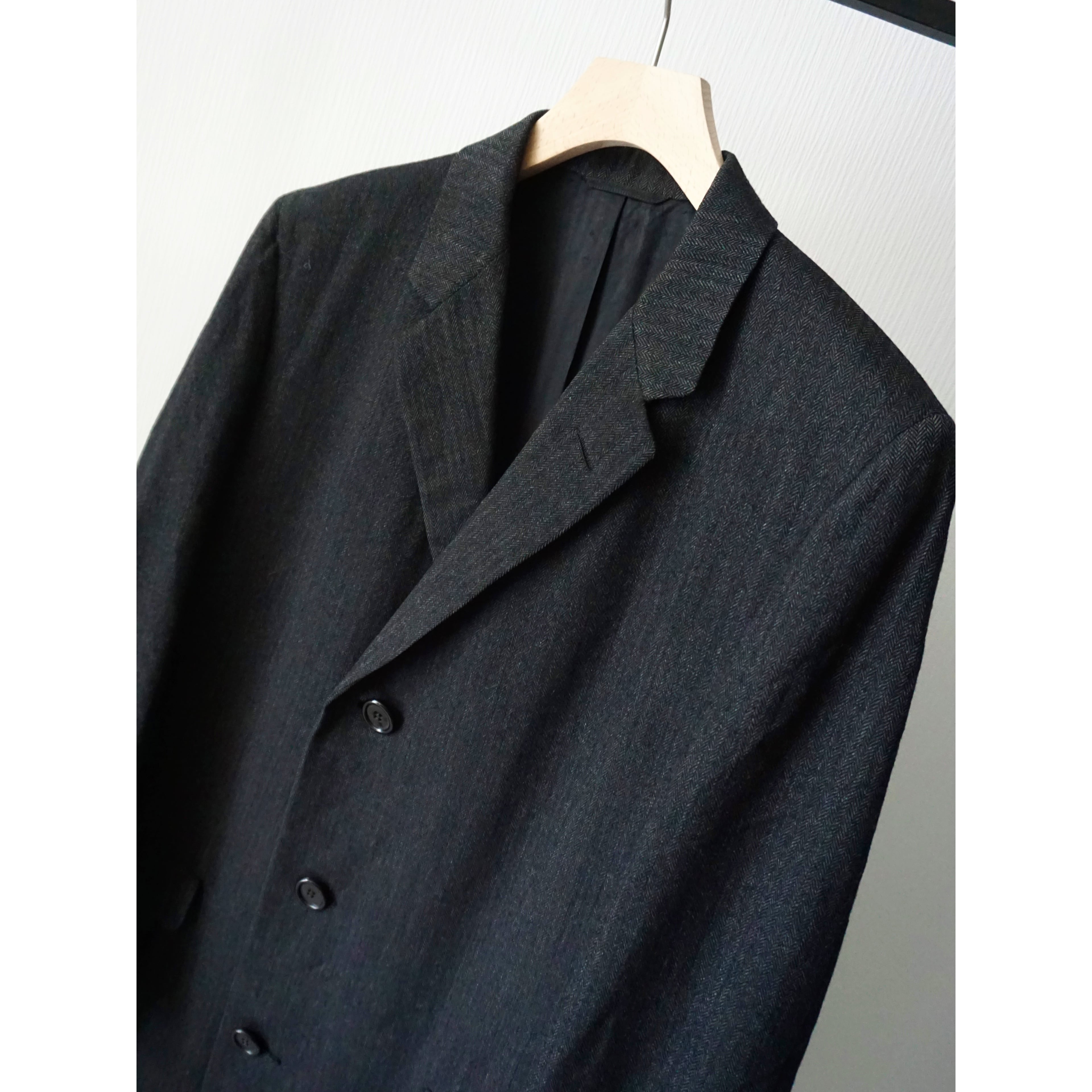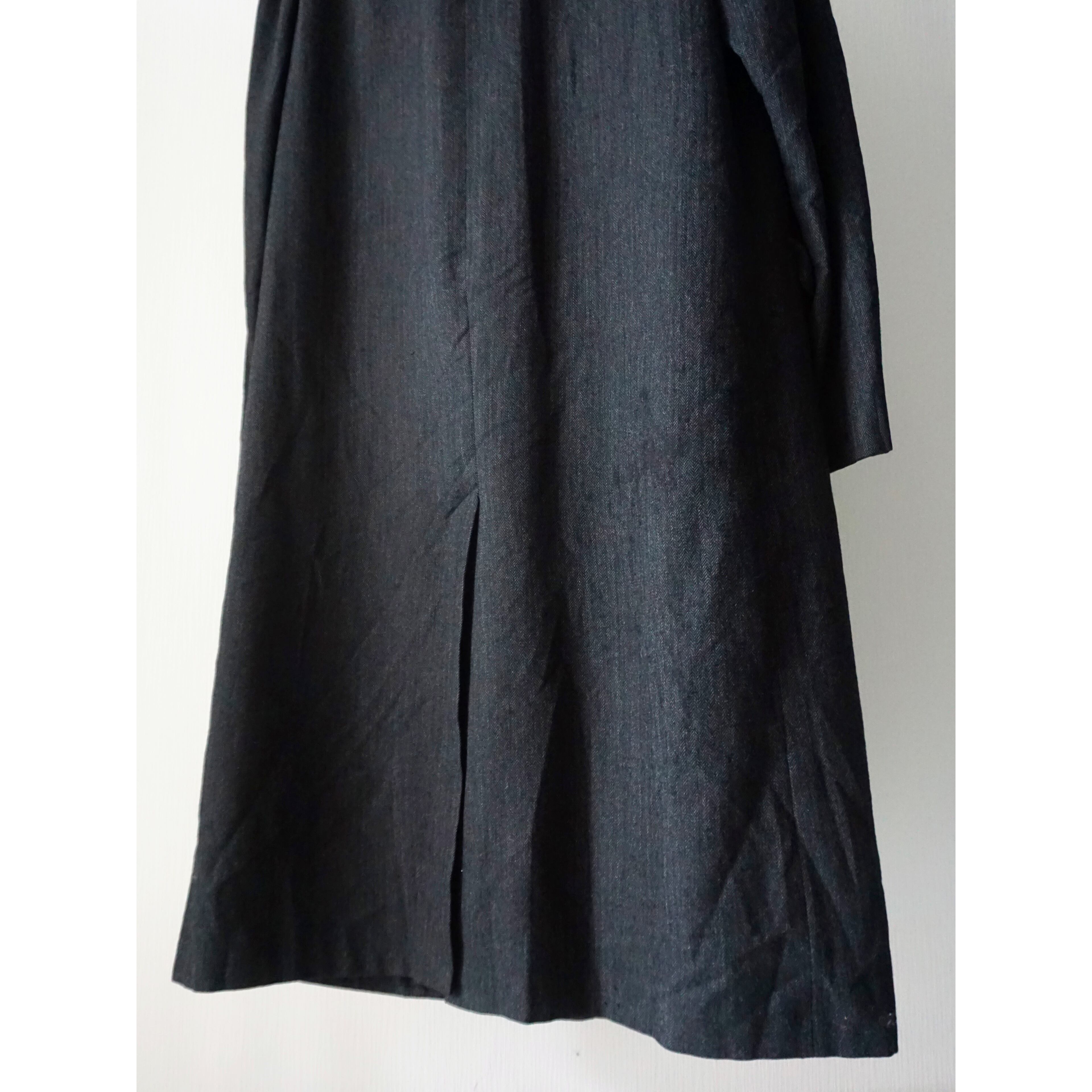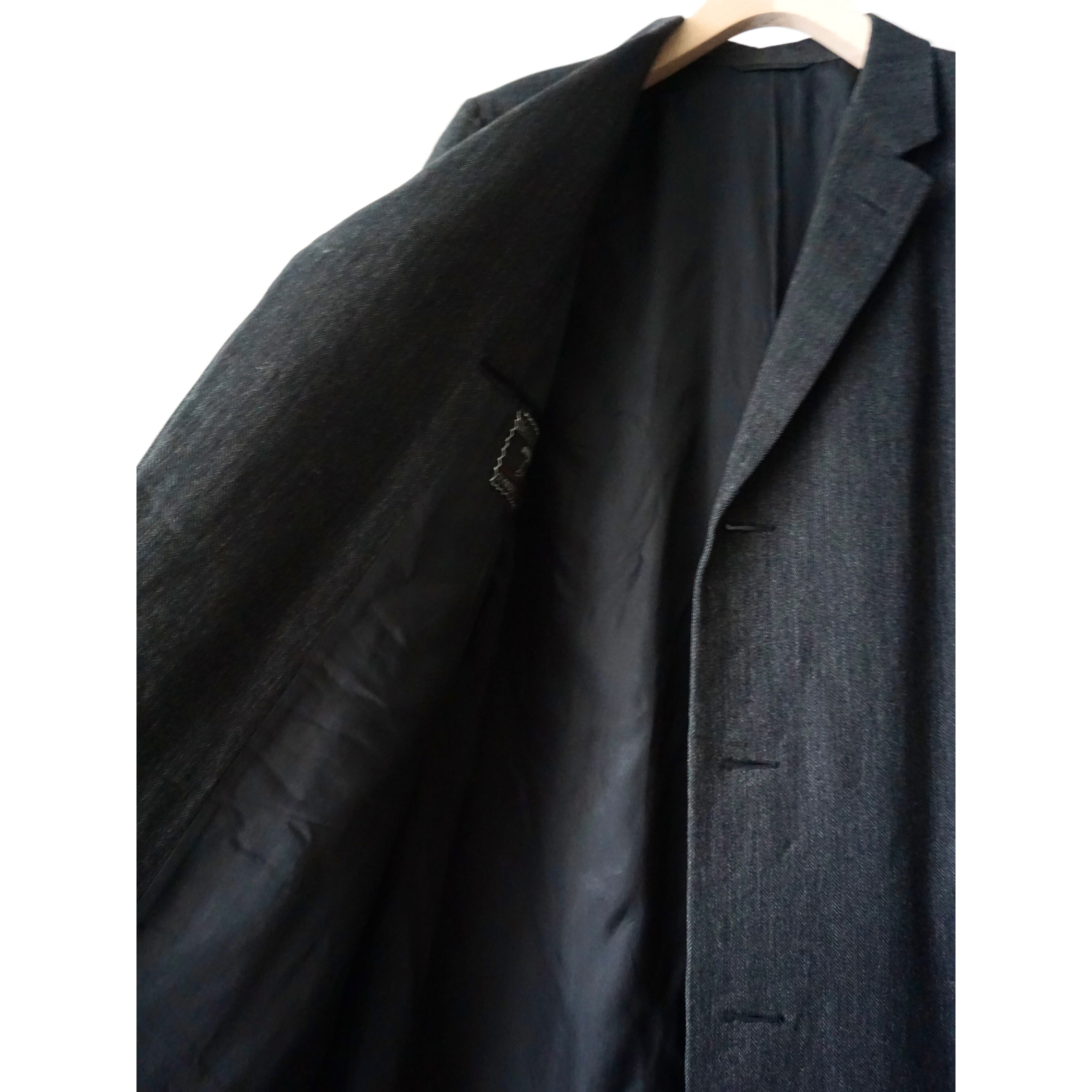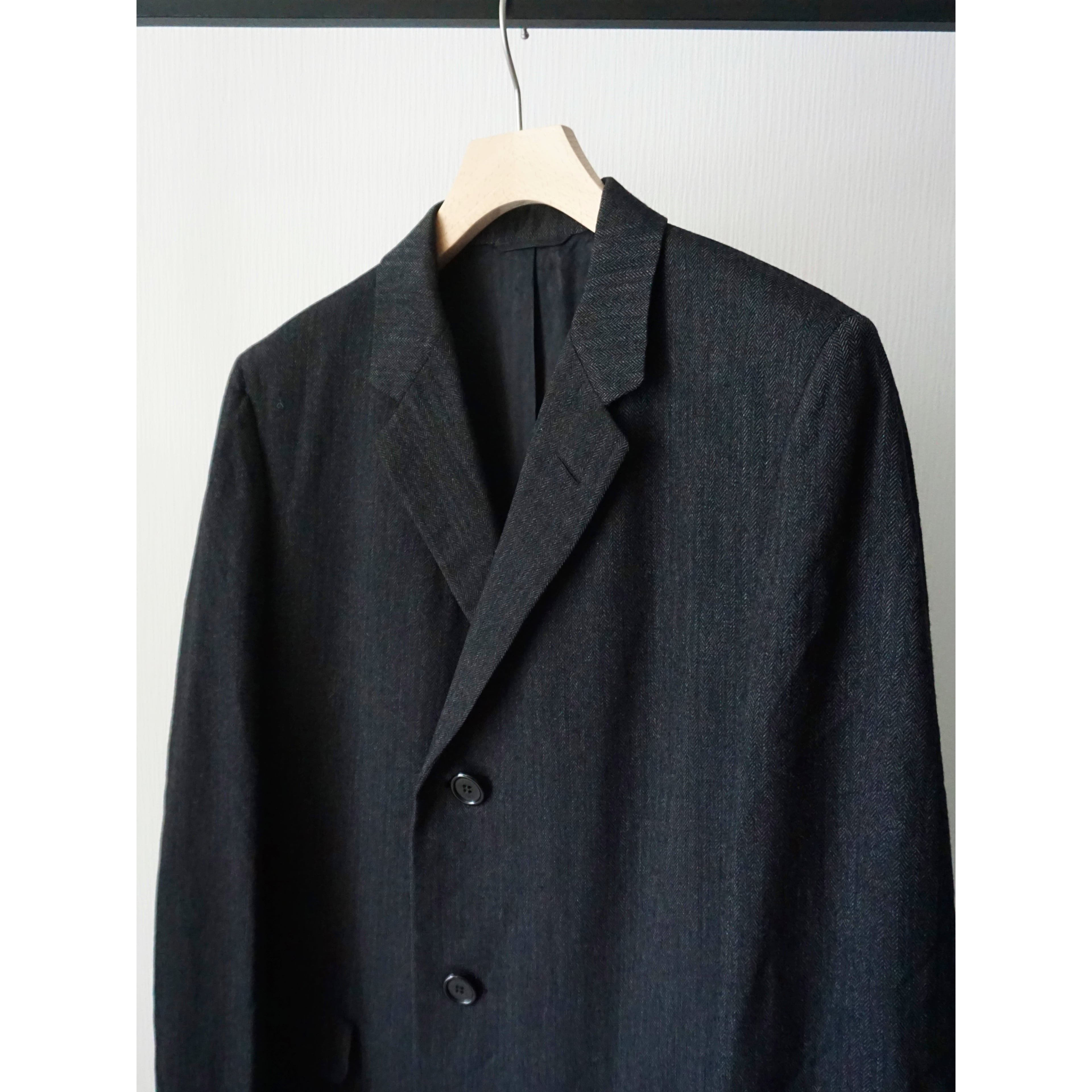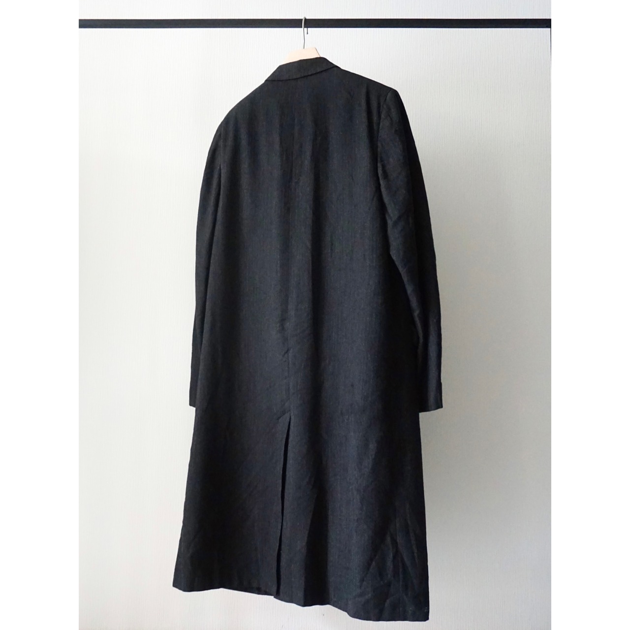 ヴィンテージ感漂うクラシカルなブラックヘリンボーン生地で、流行り廃り無いシングル仕様のチェスターコートスタイルな一着。