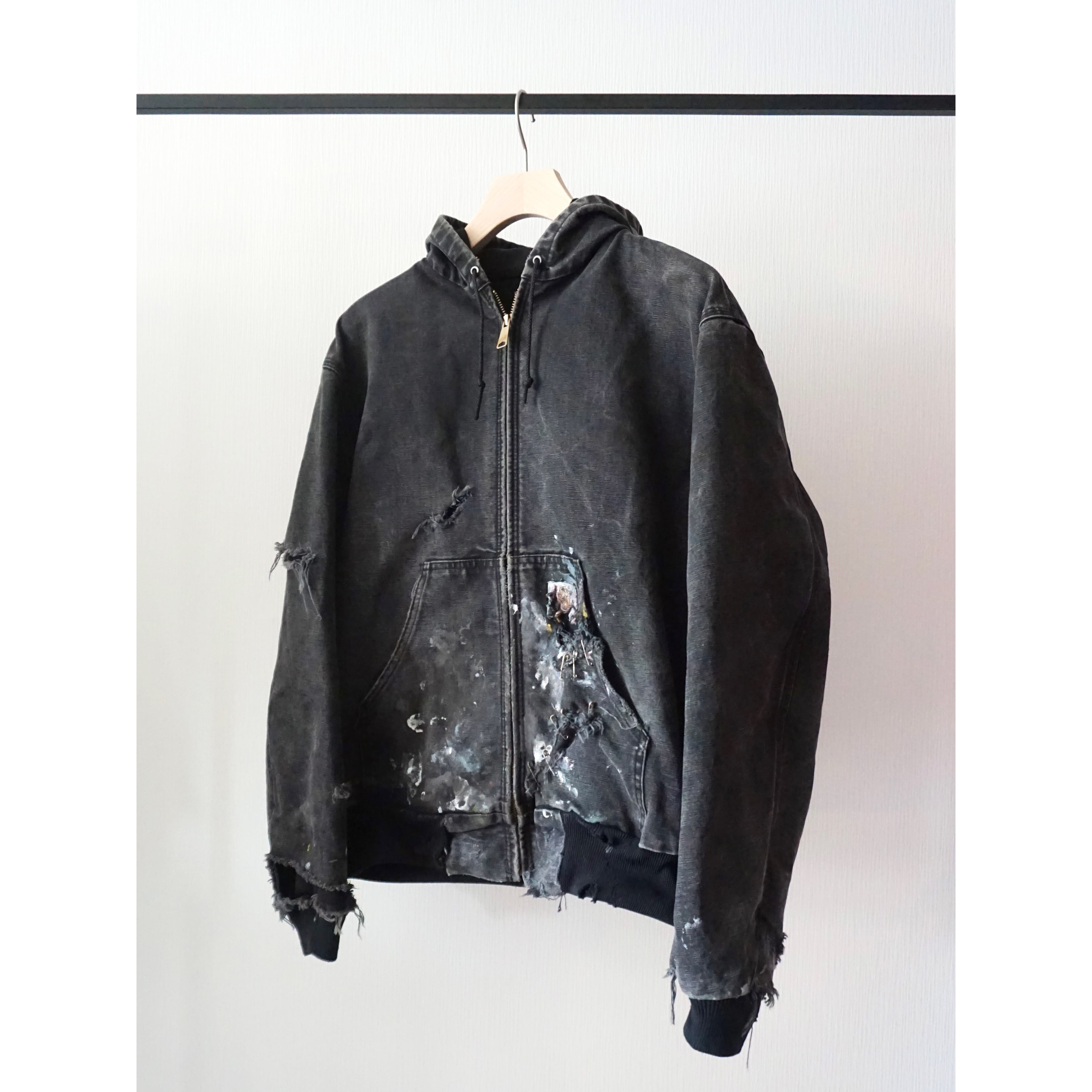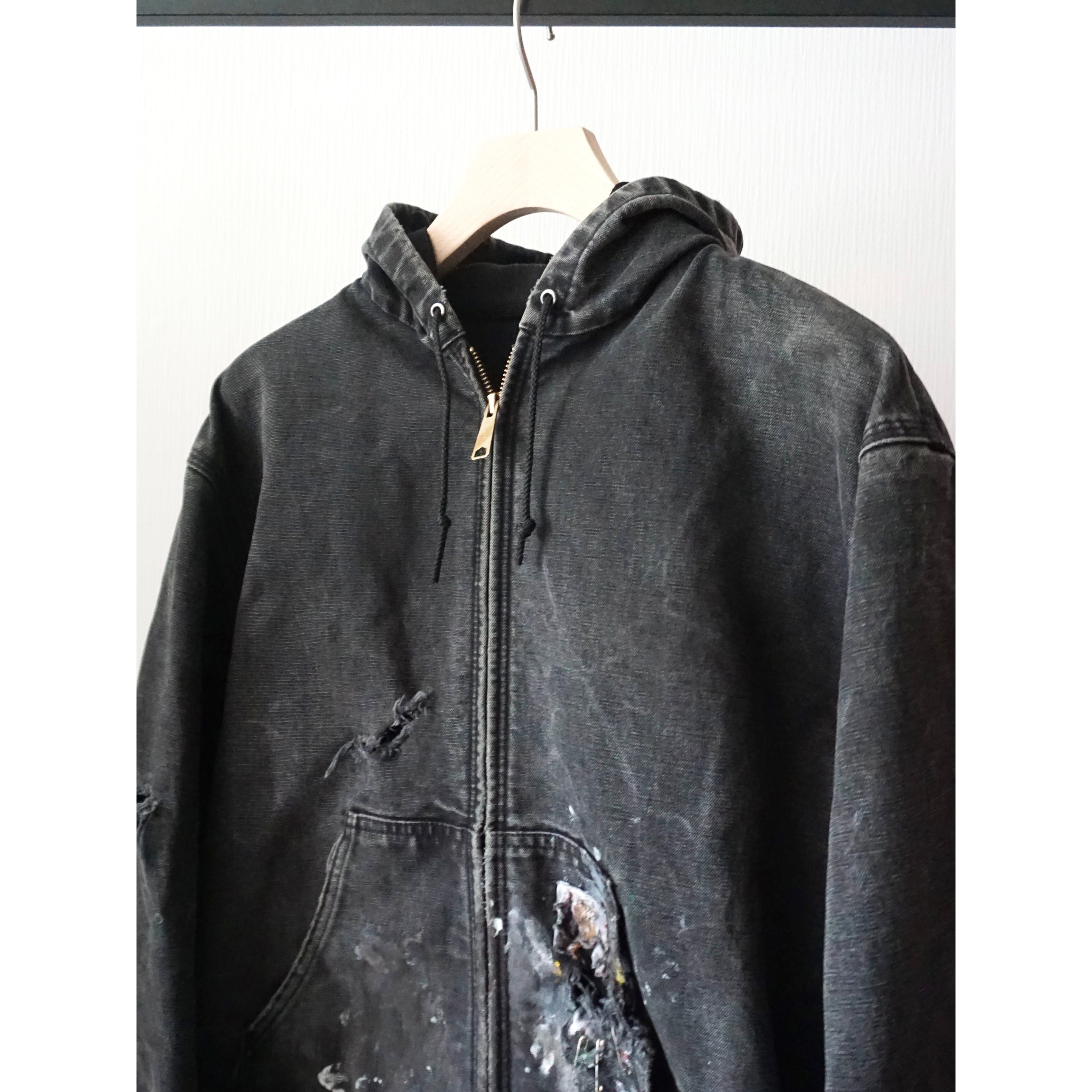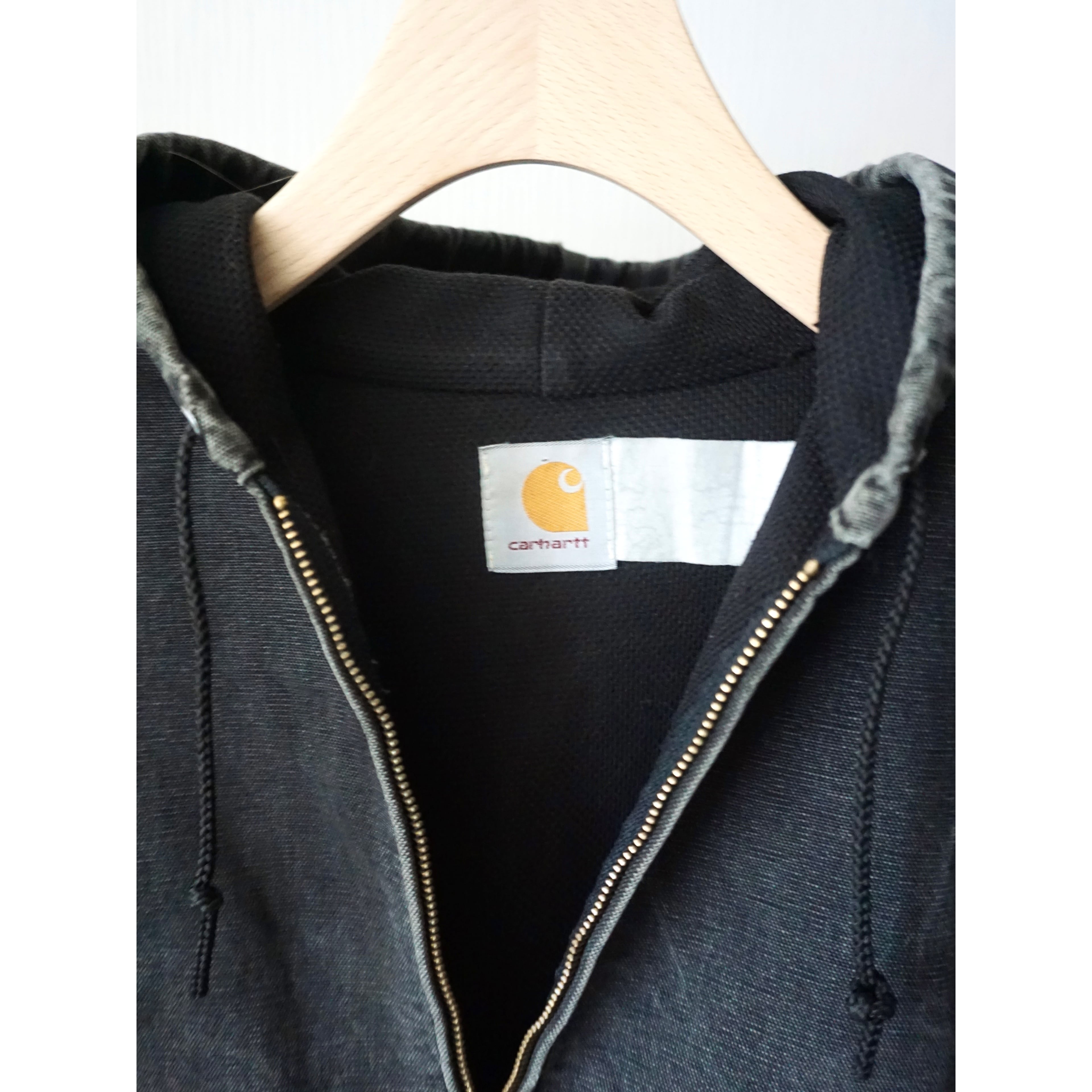 お探しの方の多いカーハートブラックアクティブジャケット、中でもアメリカンリアルワークによる一点物ピース。