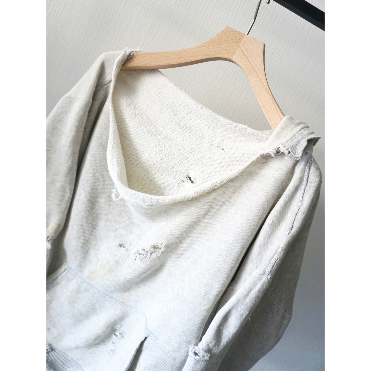 ネックの裂け、各所のリアルなクラッシュ、着込まれ生地もクタッとなった古いスウェットならではな雰囲気、色気のある生地。。