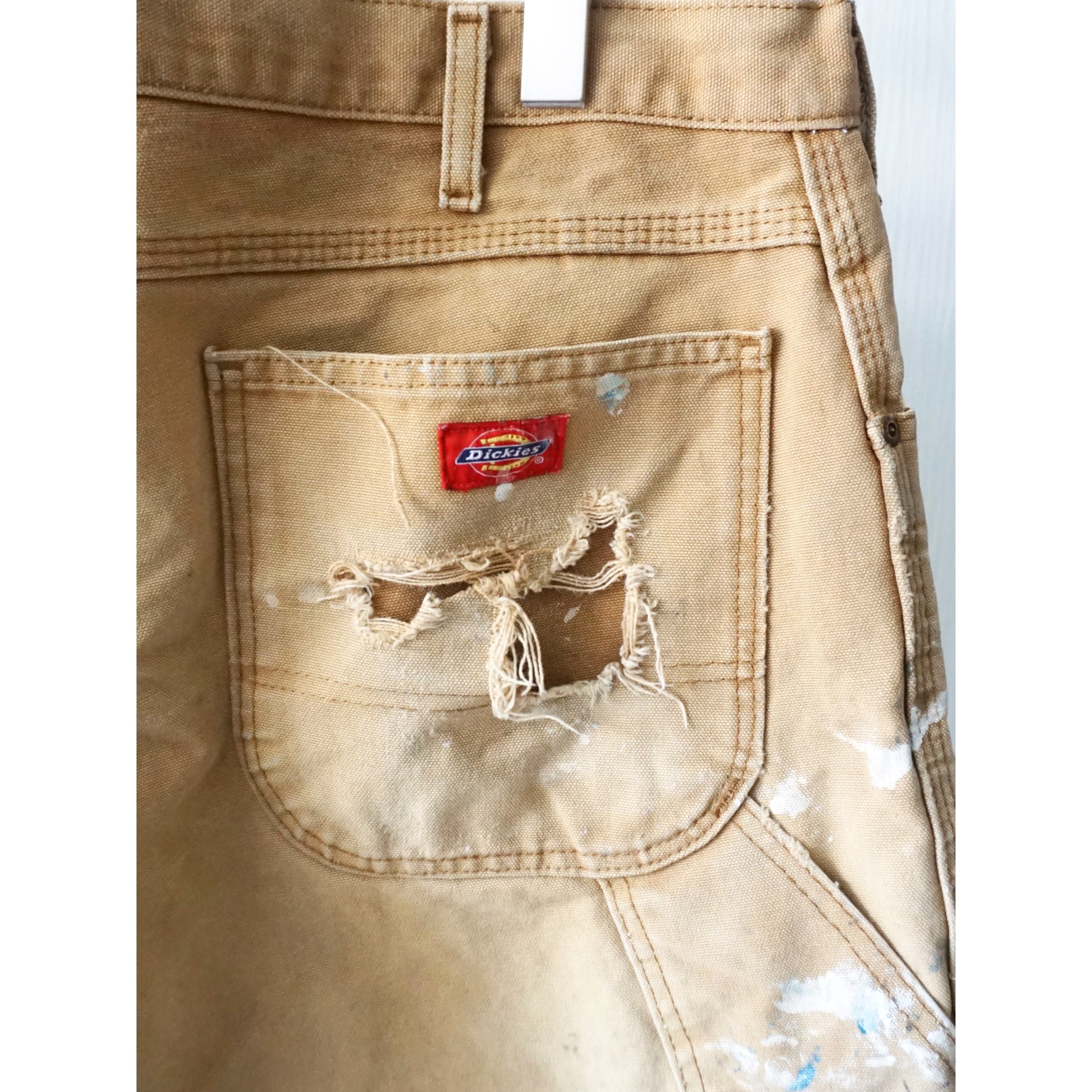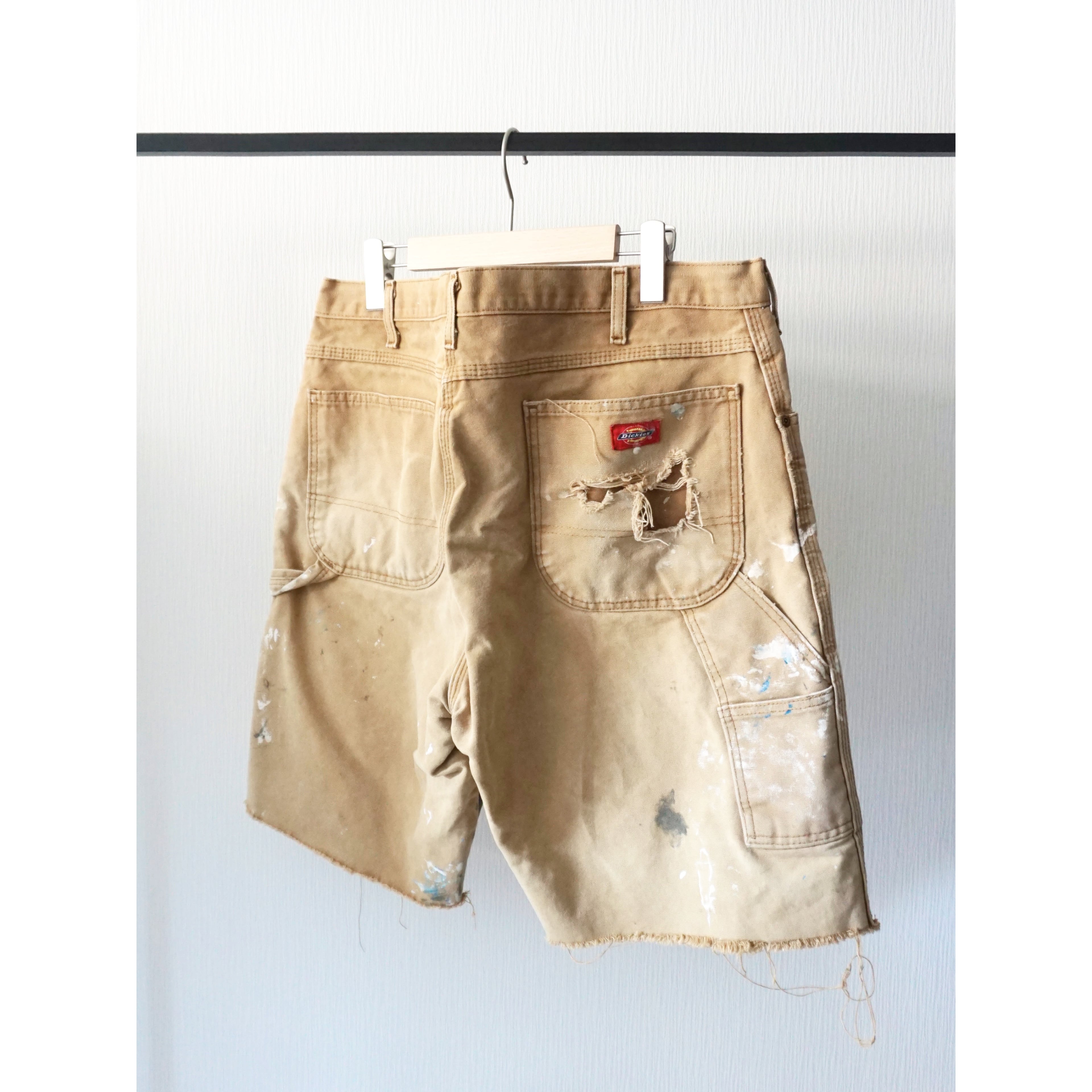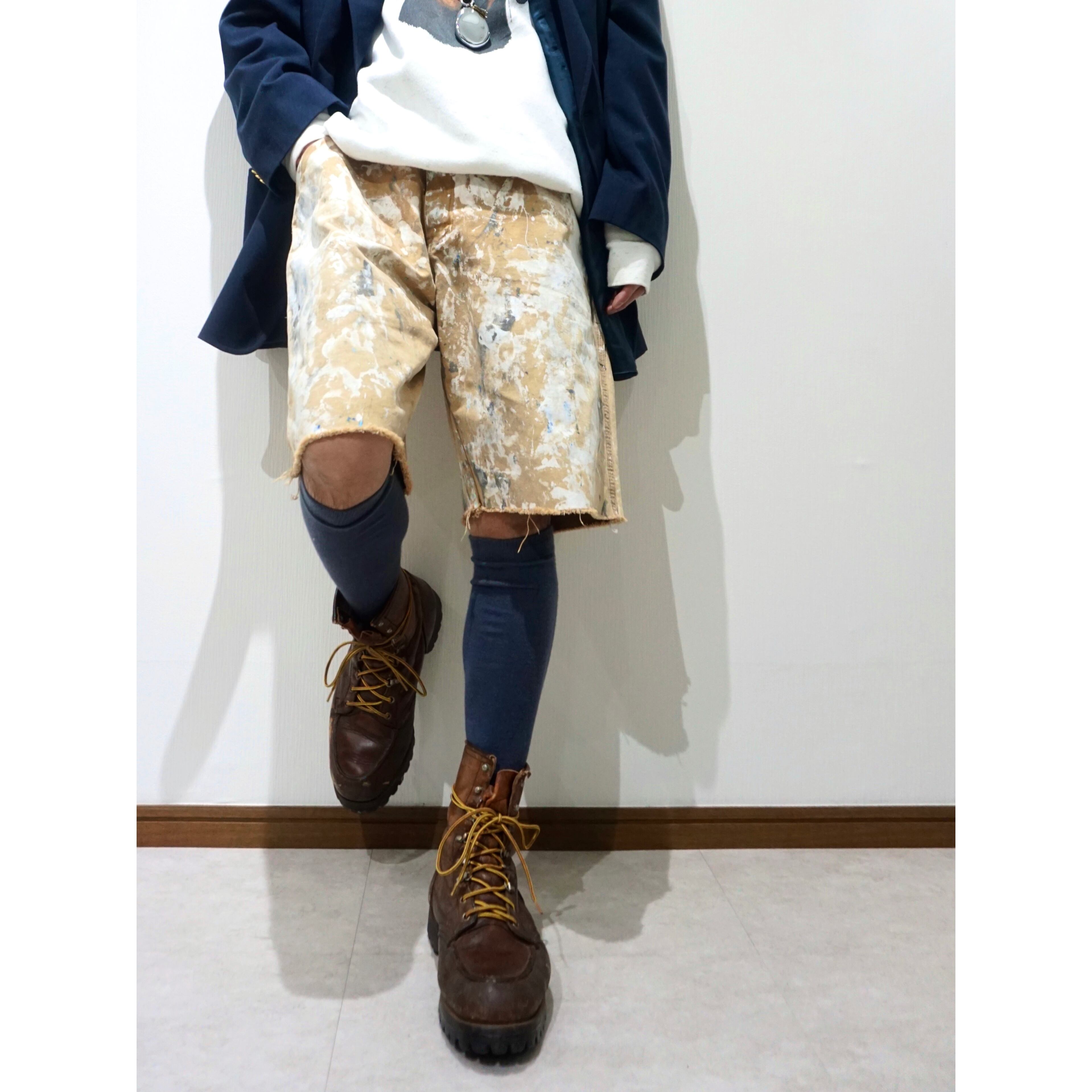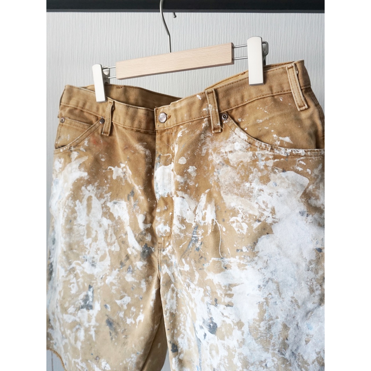 フェードしたブラウンダックの色味、此方もリアルに作業着として着られてたであろう裾は雑にカットオフされショーツに、更には激しくペンキが飛び散っためちゃくちゃクールなルックス。