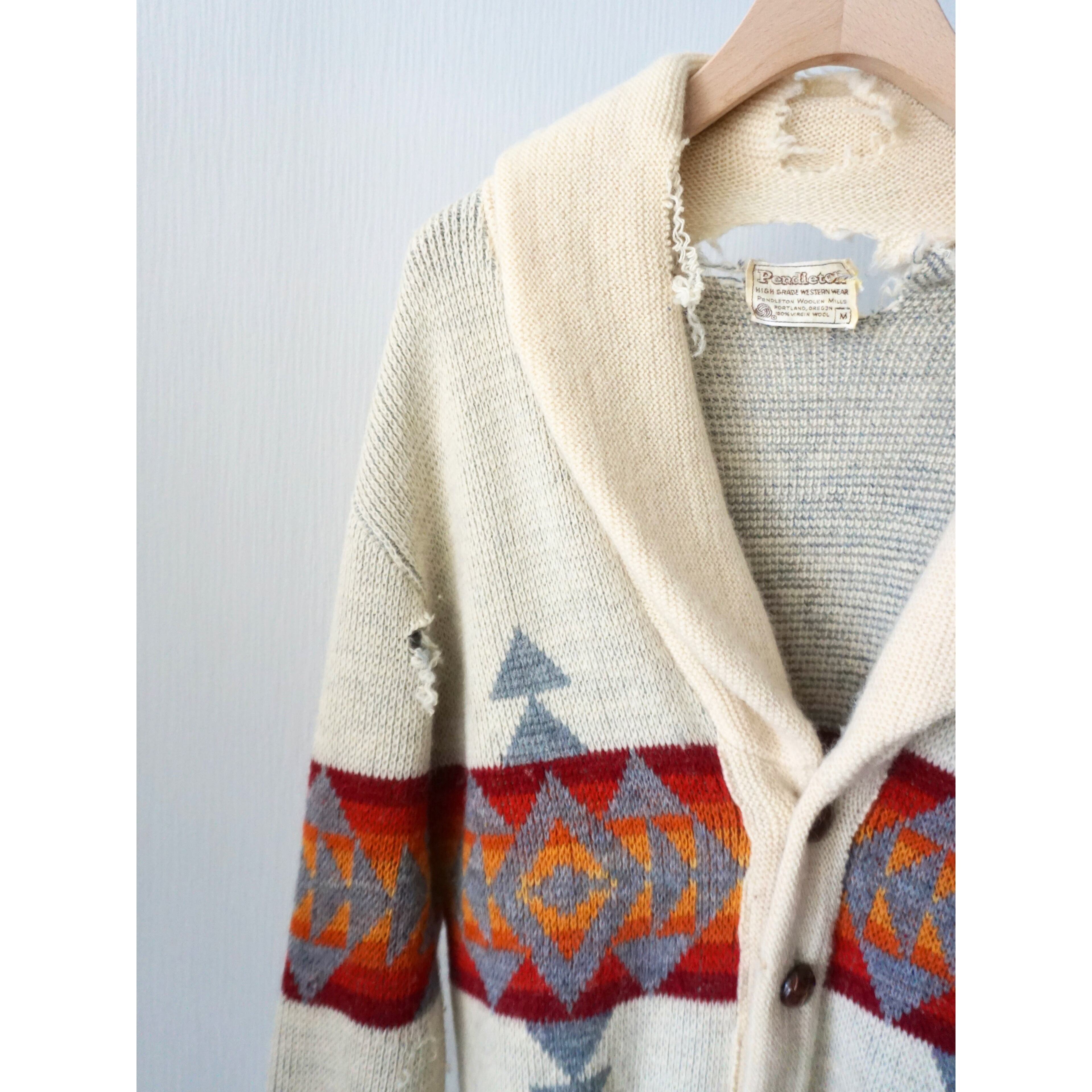 1970s vintage "PENDLETON" Boro shawl collar knit cardigan