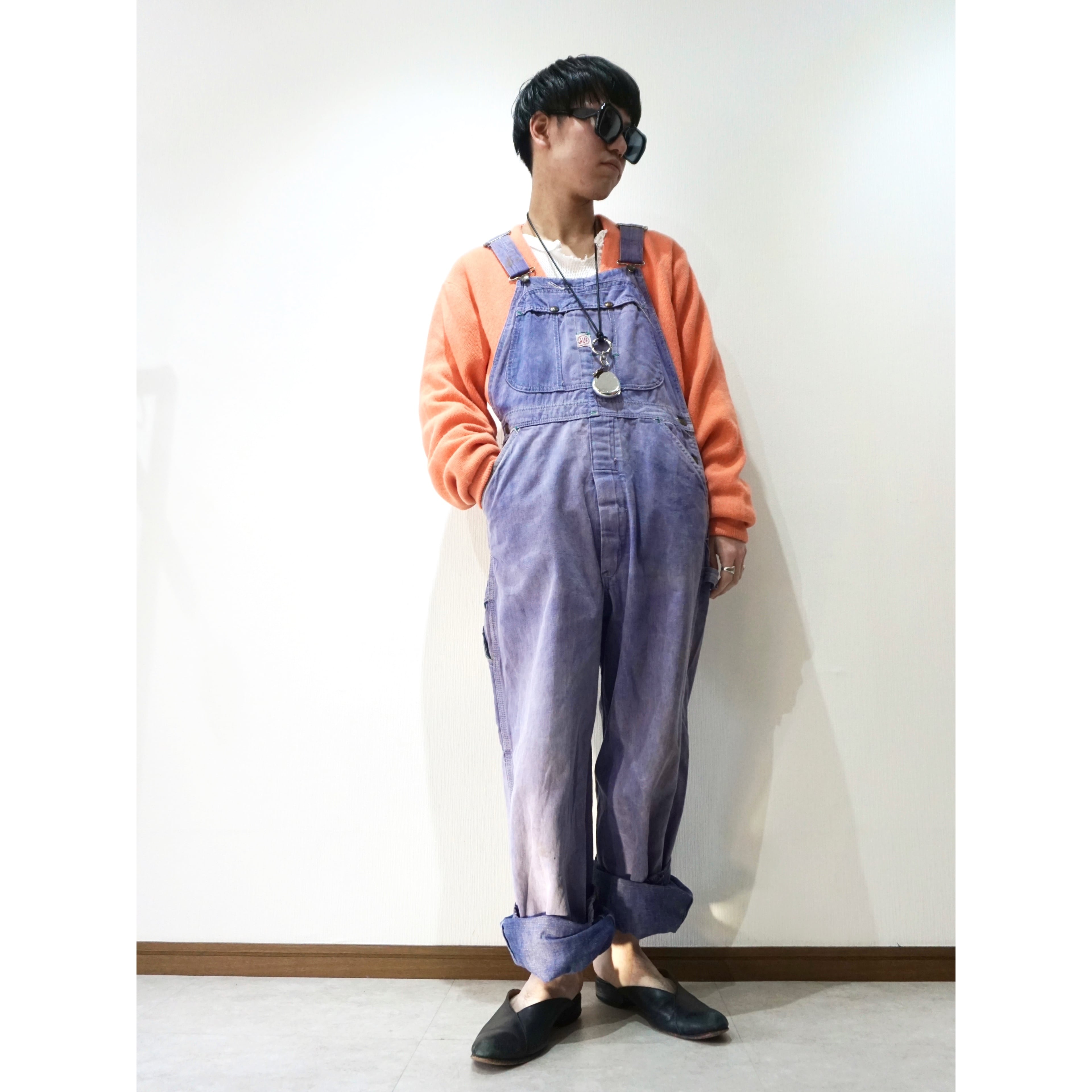 1960s~ vintage "TUFNUT" navy super faded overall