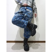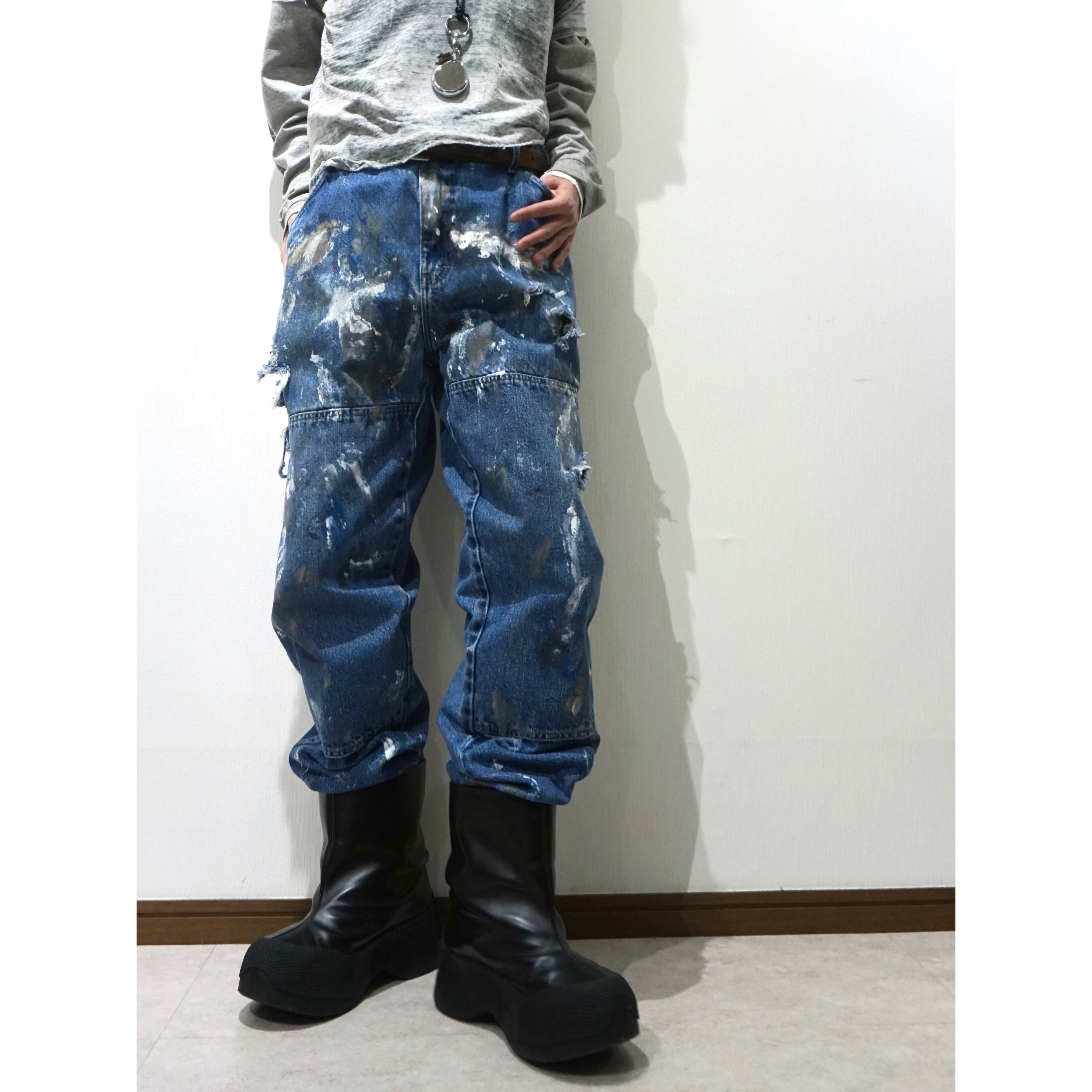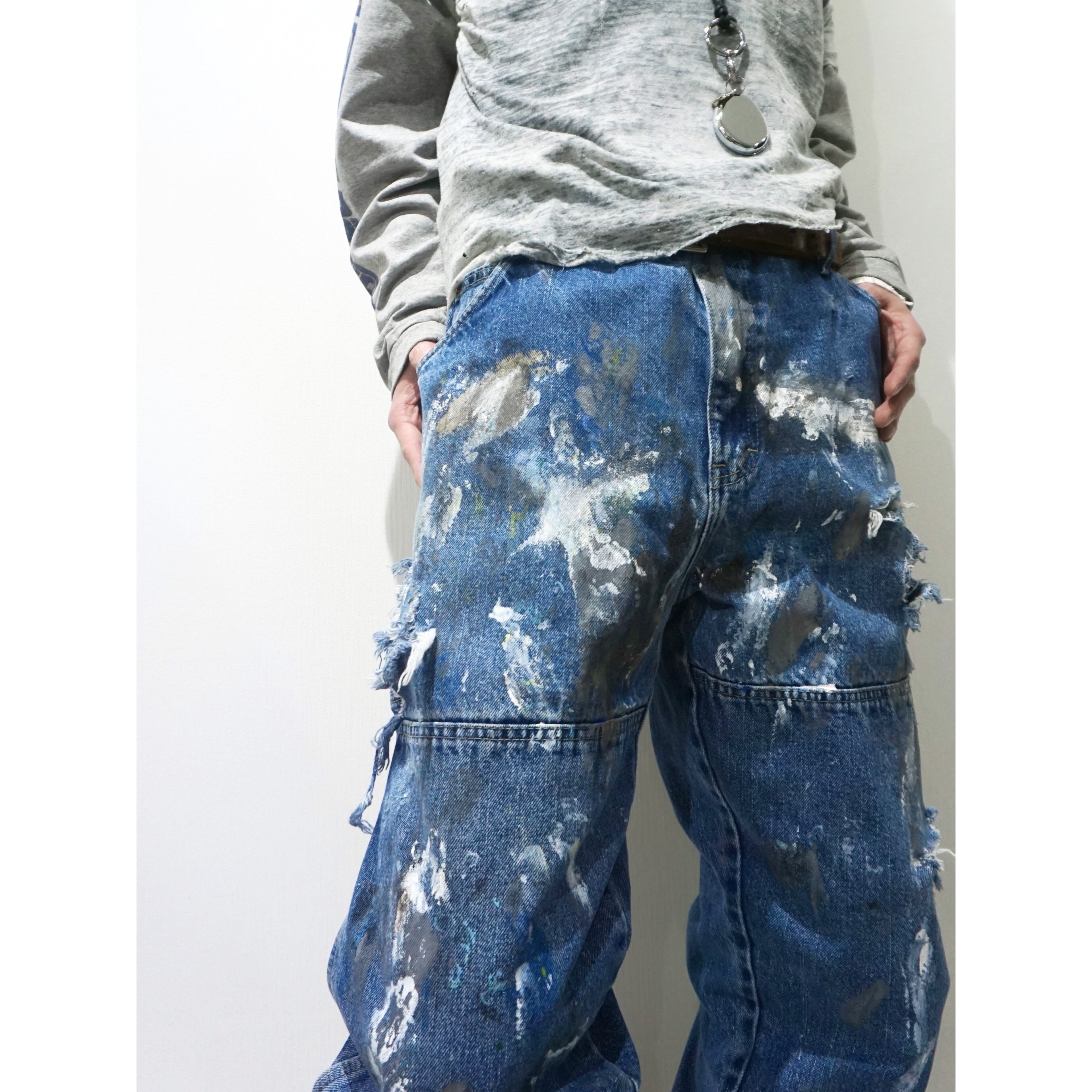 通年重宝するナチュラルな程良い色落ちのブルーデニムにクラッシュ、更にはハードにペンキが飛び散った一本。