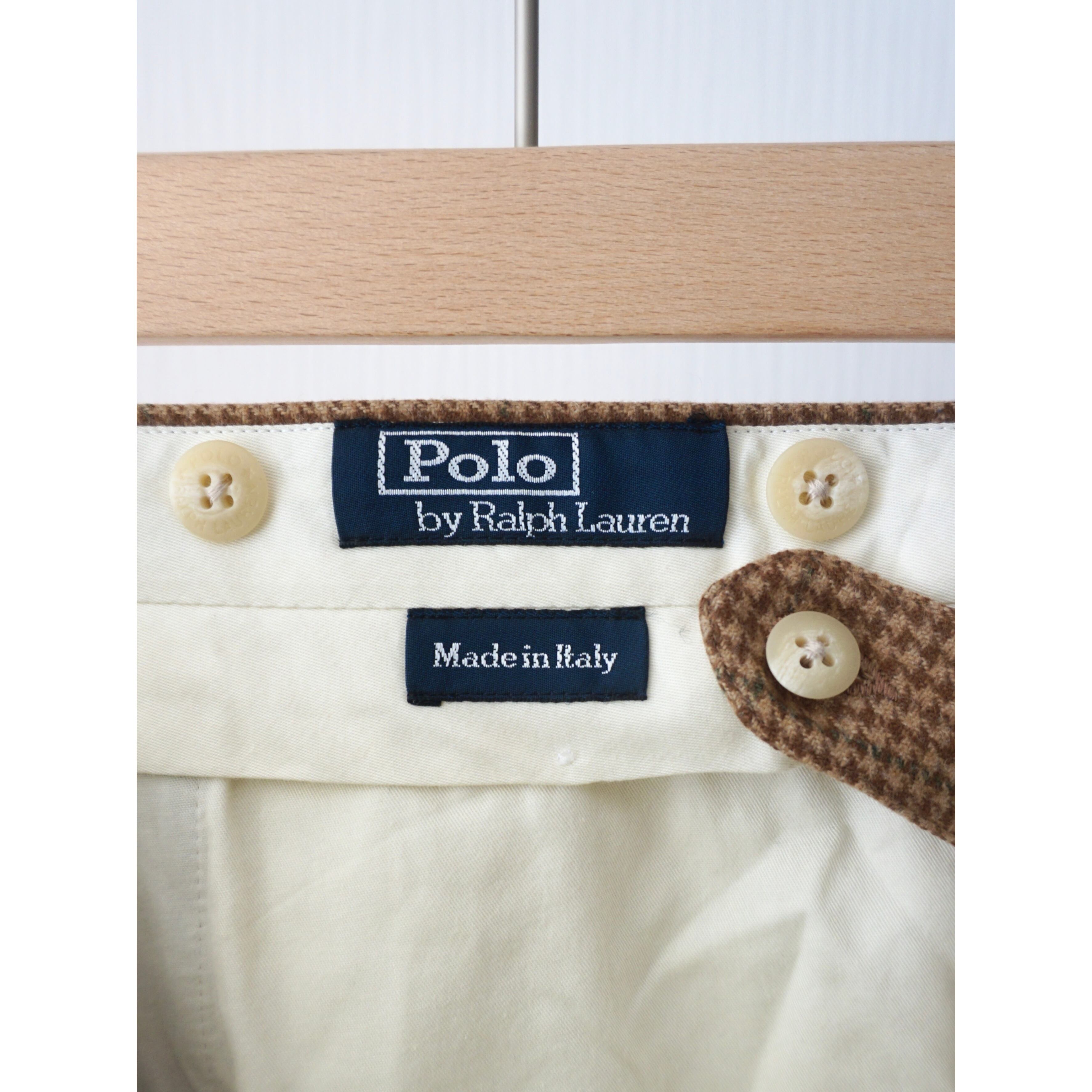 1990s vintage "Polo by Ralph Lauren" houndstooth pattern no-tuck wool slacks made in ITALY