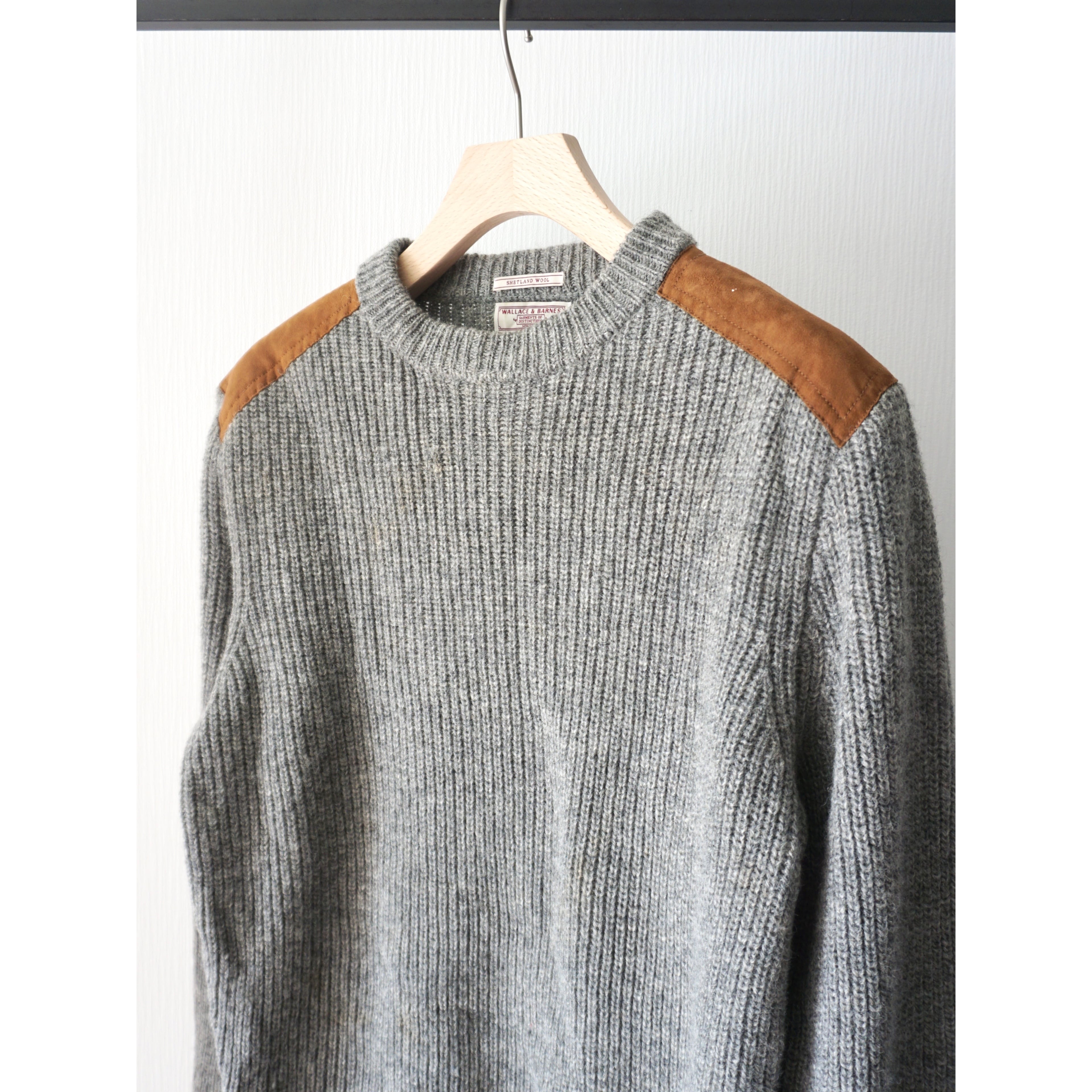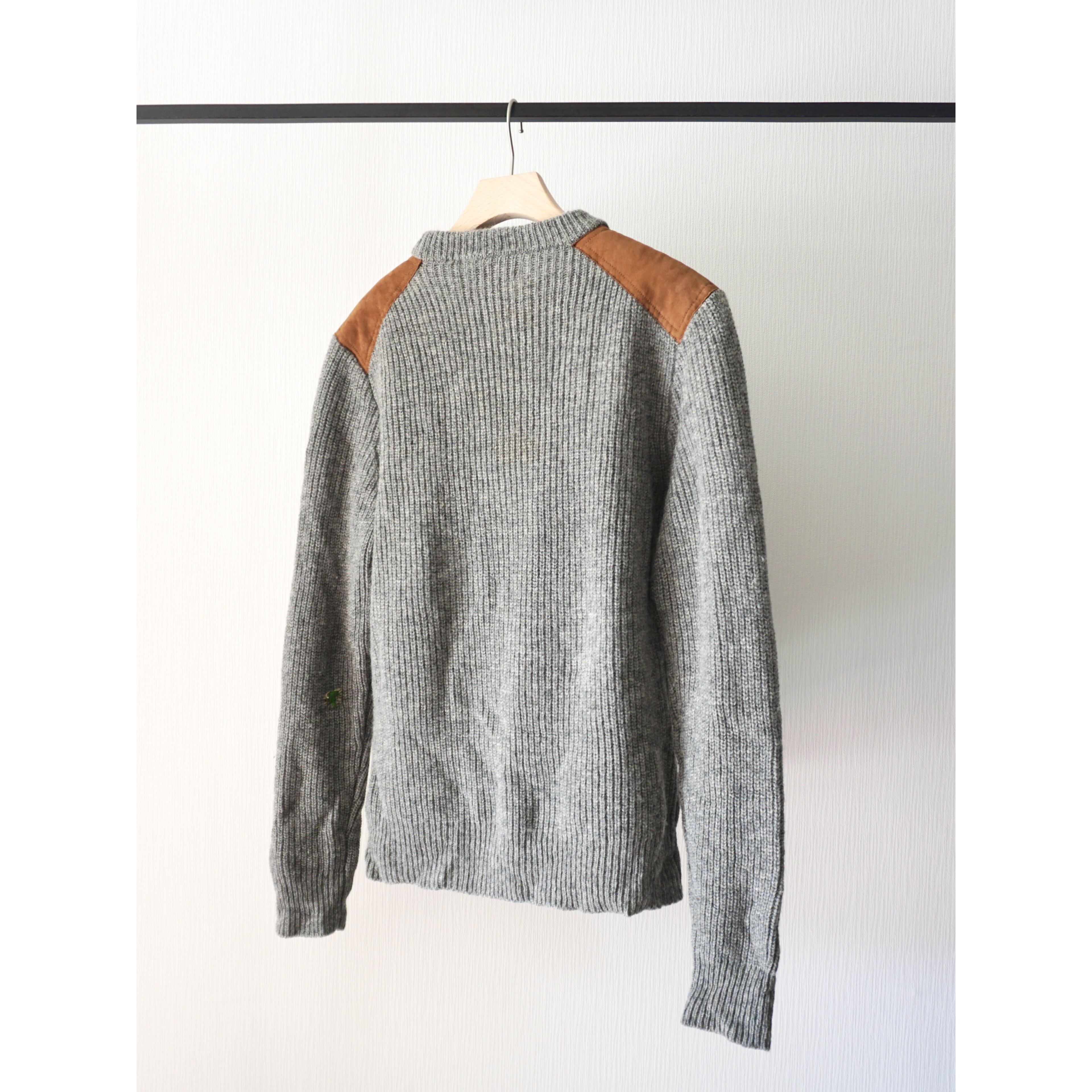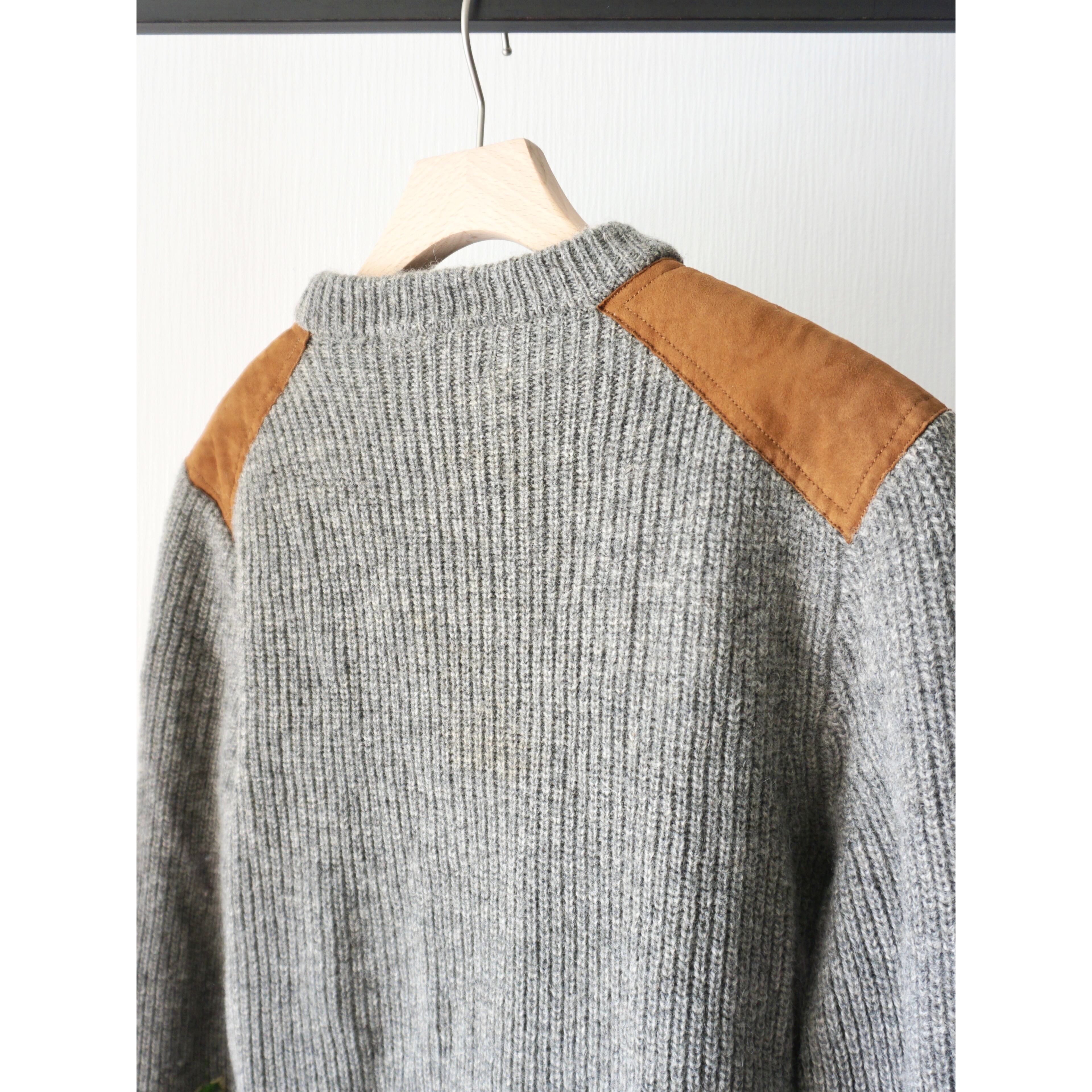 suède leather switching design shettland wool knit sweater