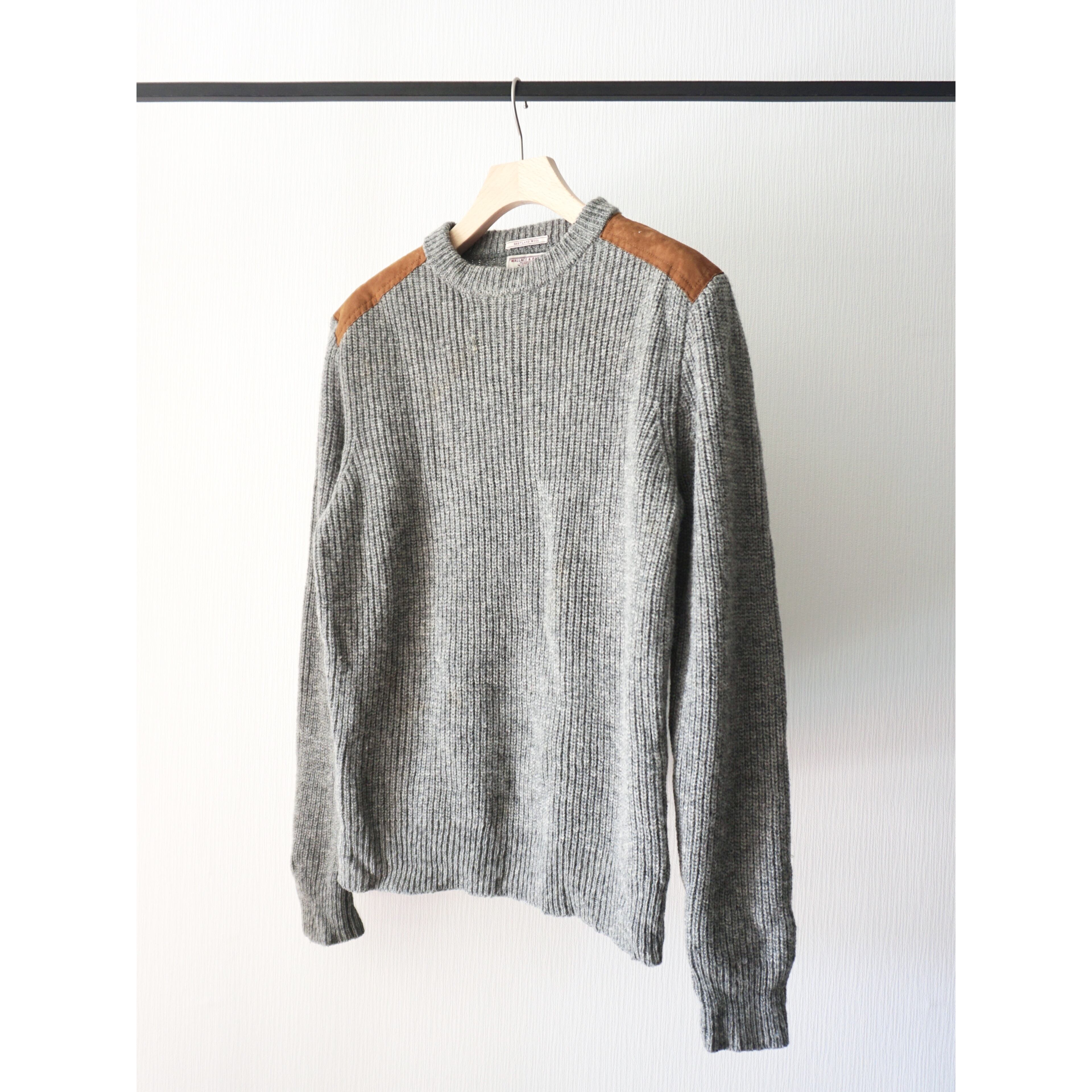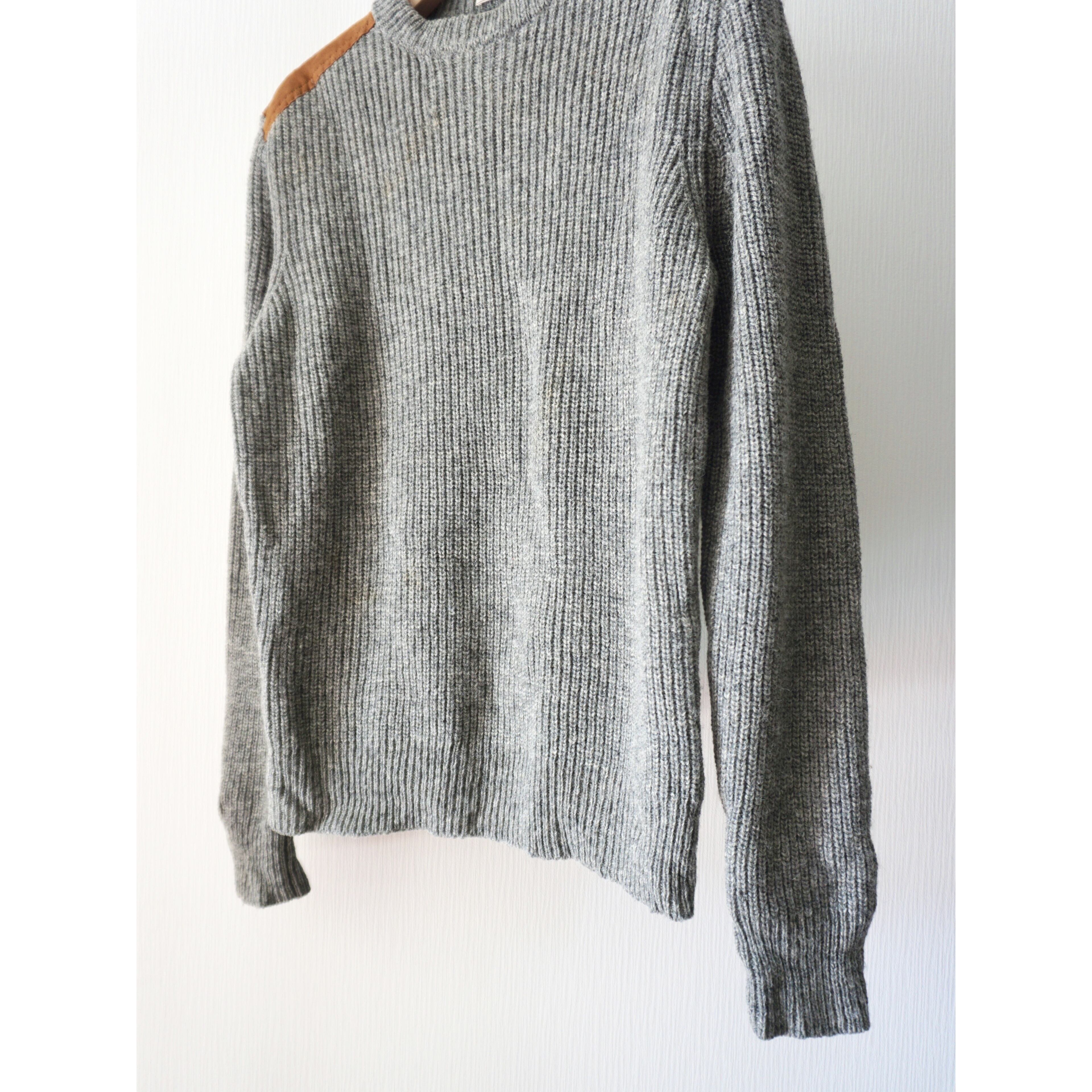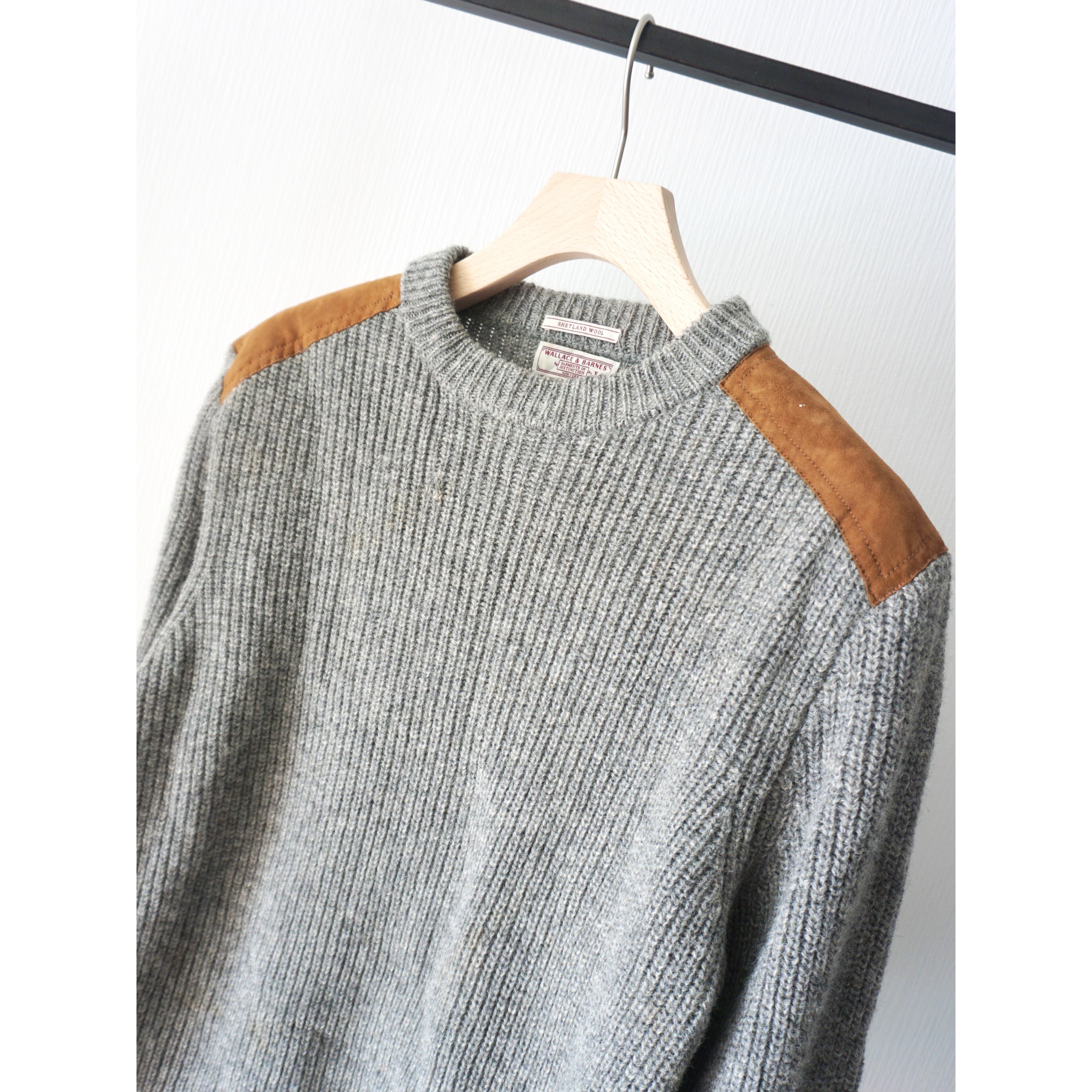 suède leather switching design shettland wool knit sweater