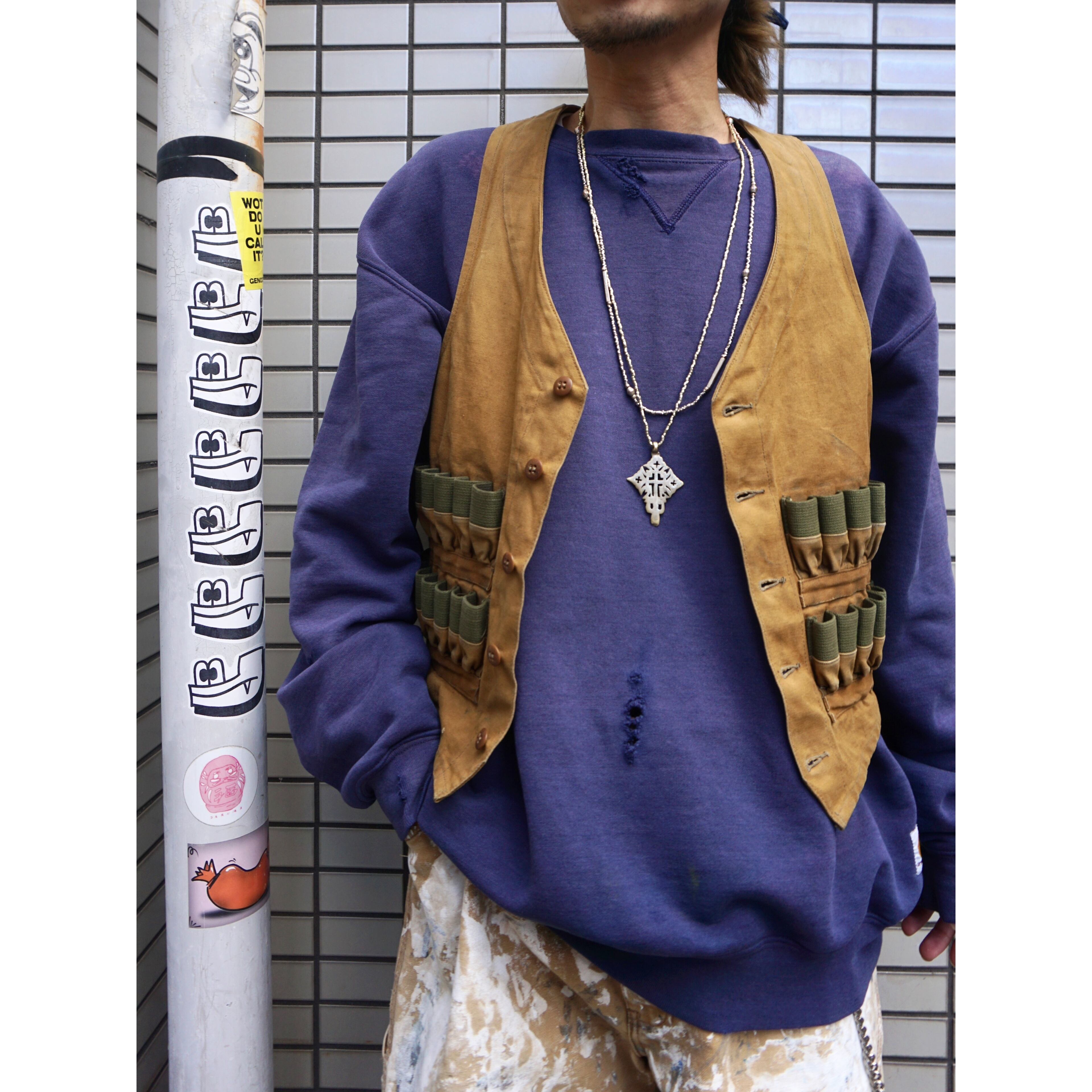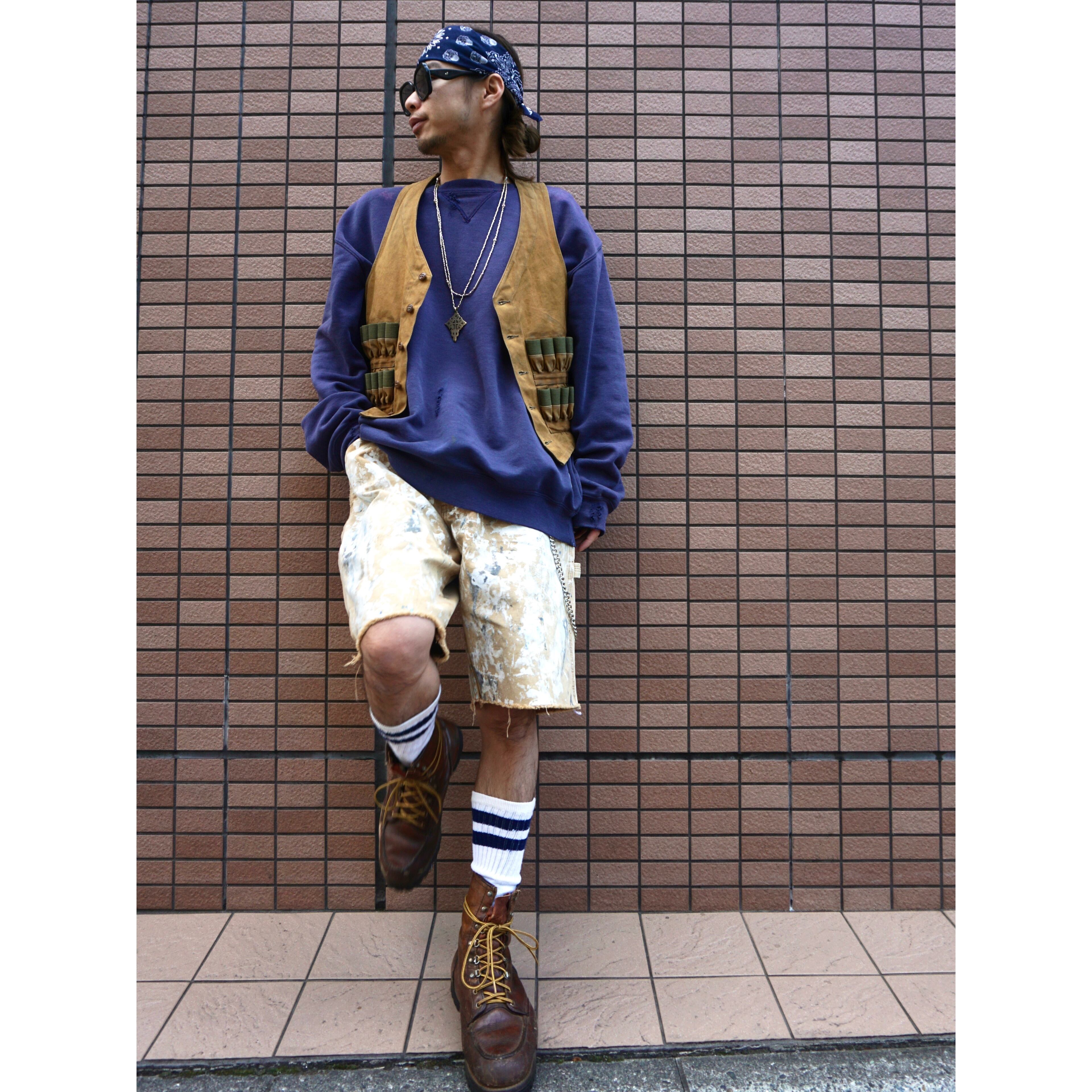 古着のワーク製品特有のサンフェード跡、細かなダメージ、全体的に使用感がございます。どれも製品特有の風合いとしてご理解ある方のみご注文お願いいたします