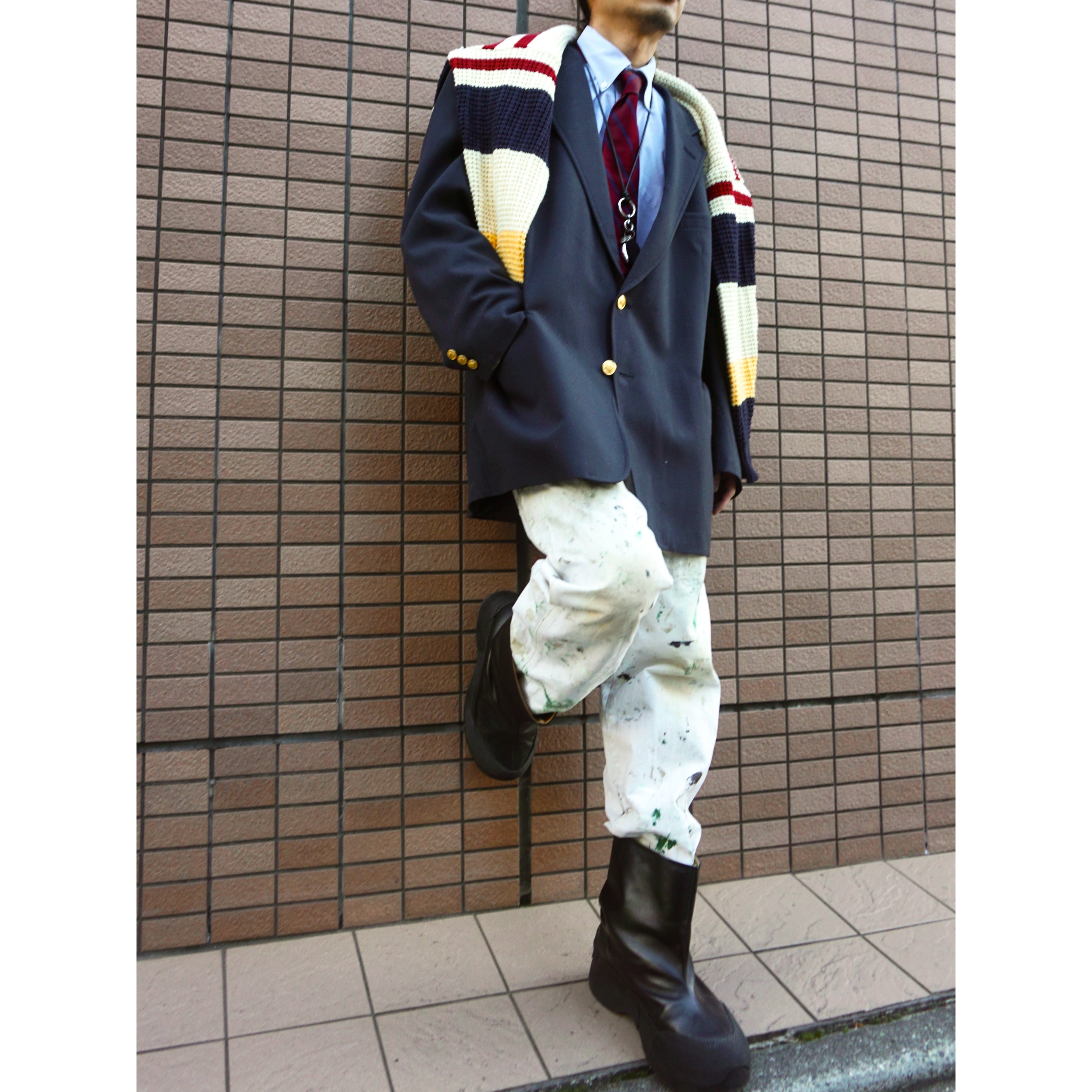 ネイビー×ワインレッド×イエローといったトラッディーな配色が目を惹く一着☺︎