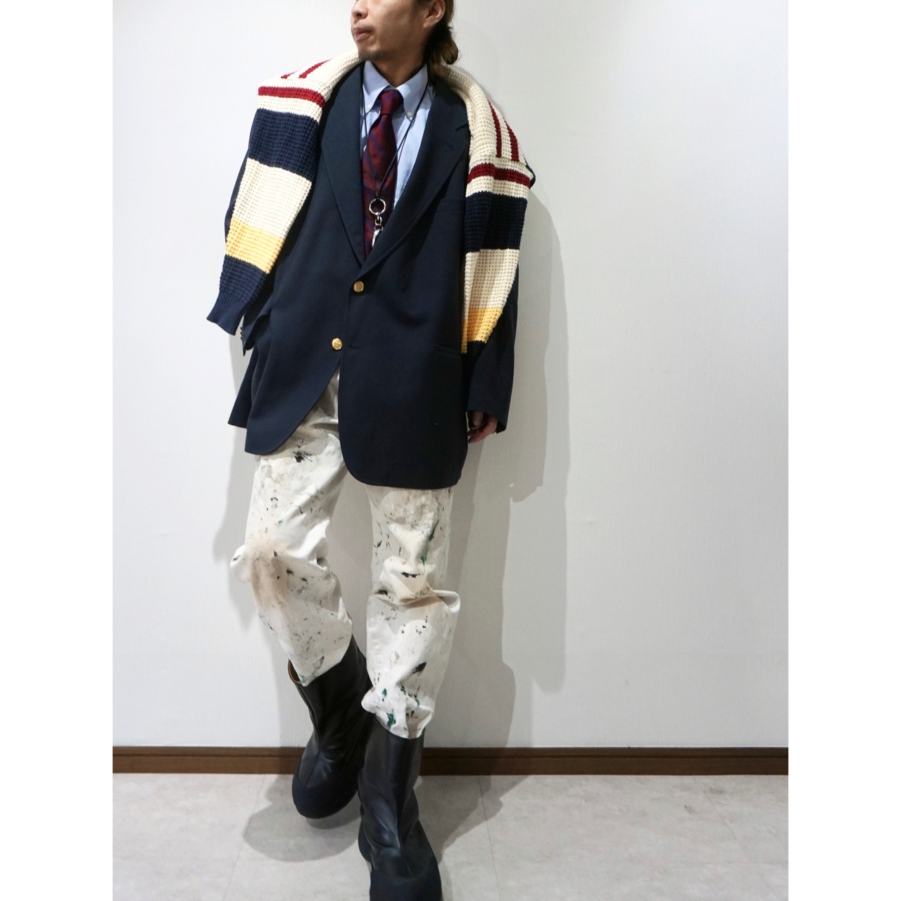 ホワイトコットンにハードに飛んだリアルなペンキ飛び、ダメージ、ヨゴレ。